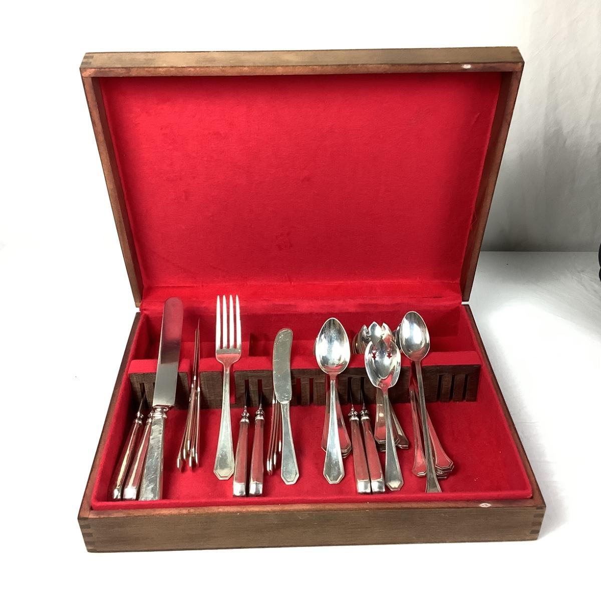 38 pieces marked Sterling Pat-D.10. Total weight of 26 Troy oz. (NOT Including the 7 knives)