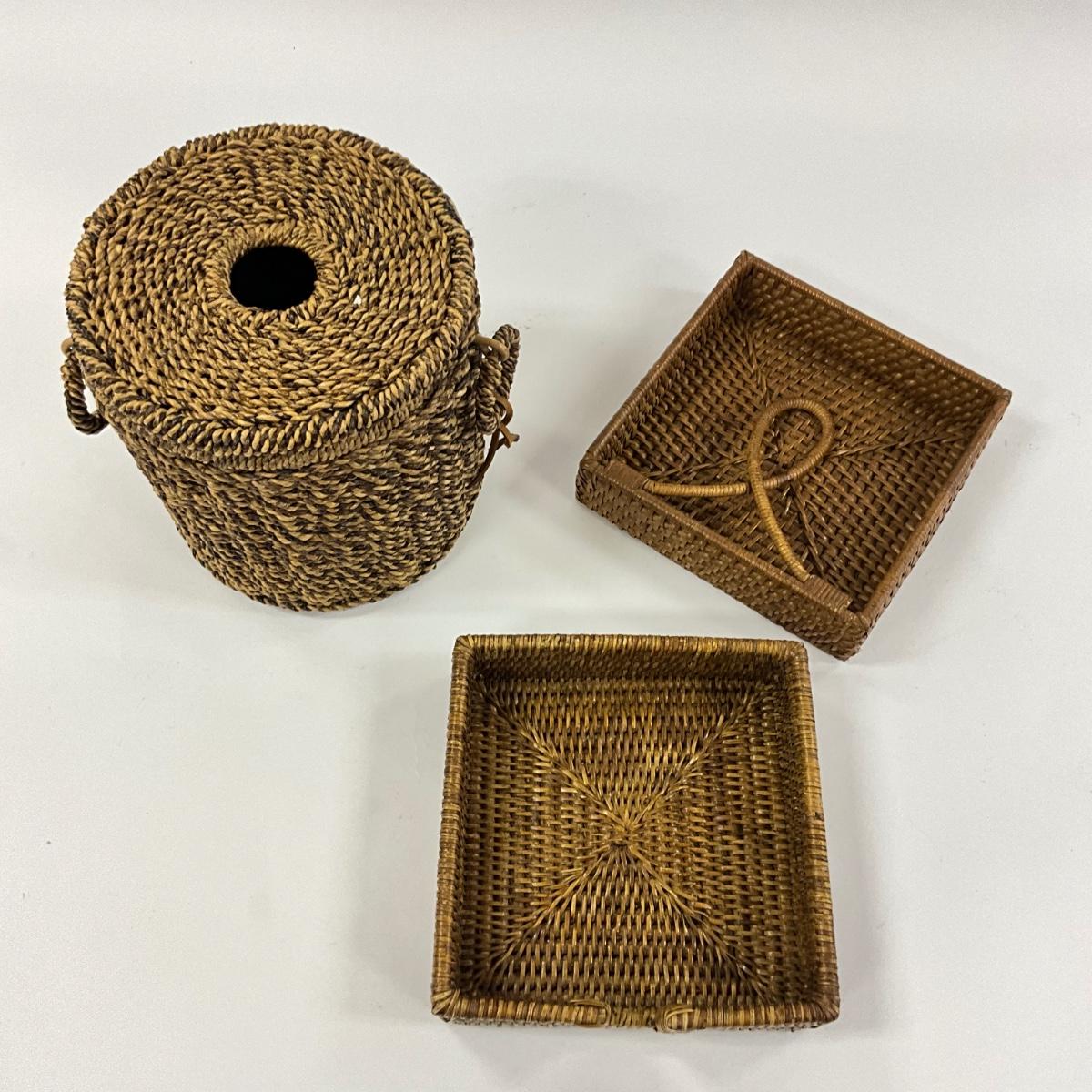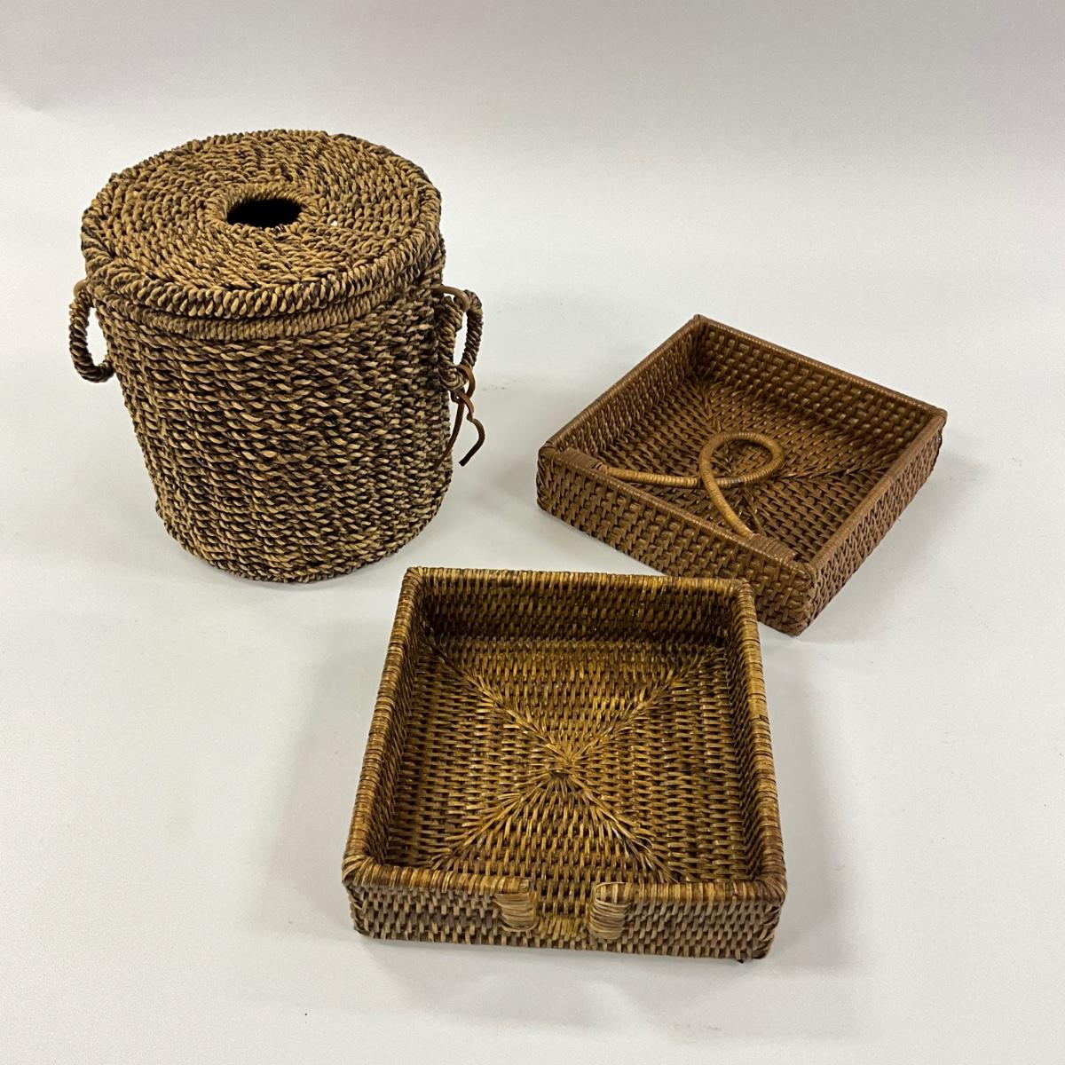 1035 Rattan Ice Bucket, Two Napkin Holders