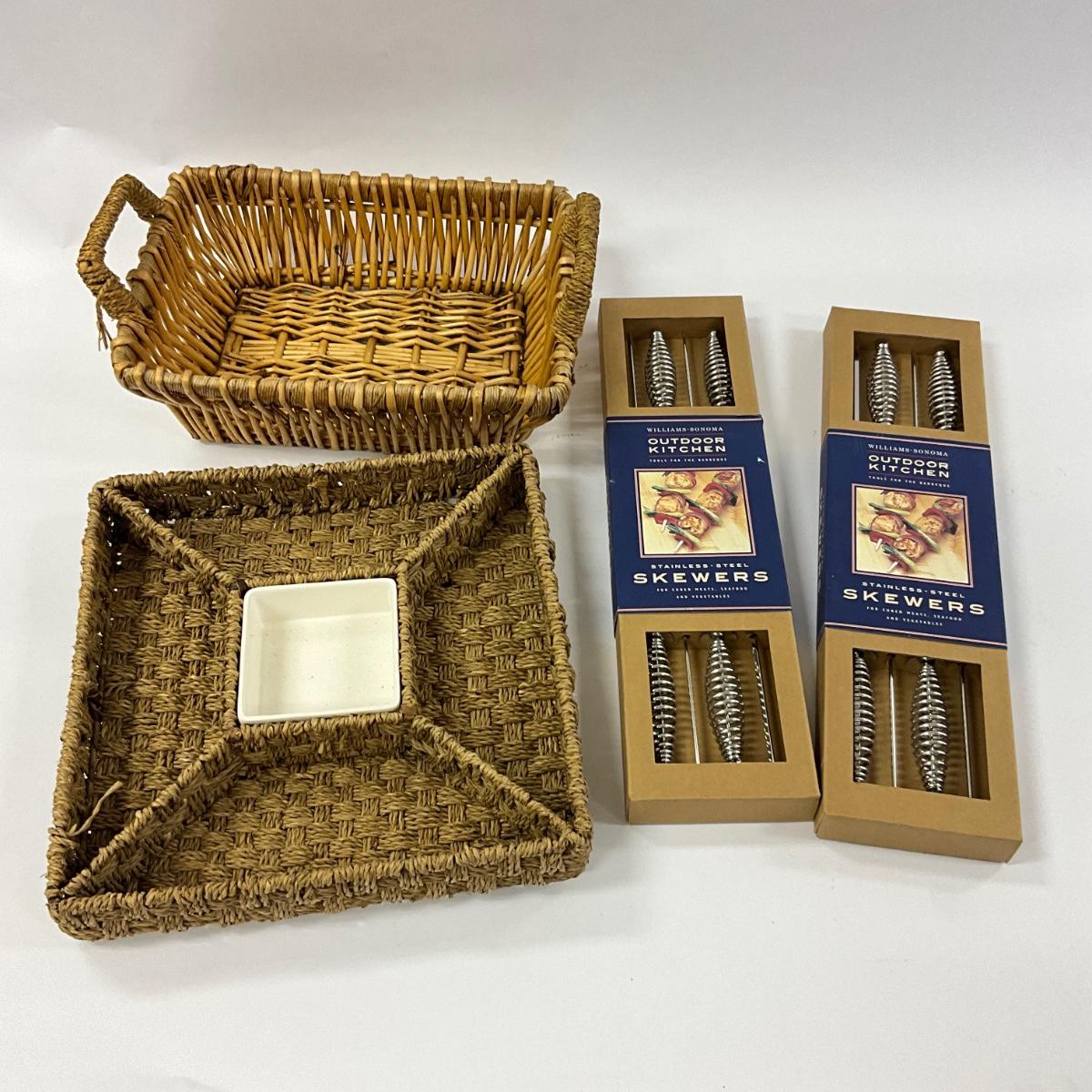 1036 Two Sets of 4 New Williams Sonoma Skewers with Chip and Dip Tray