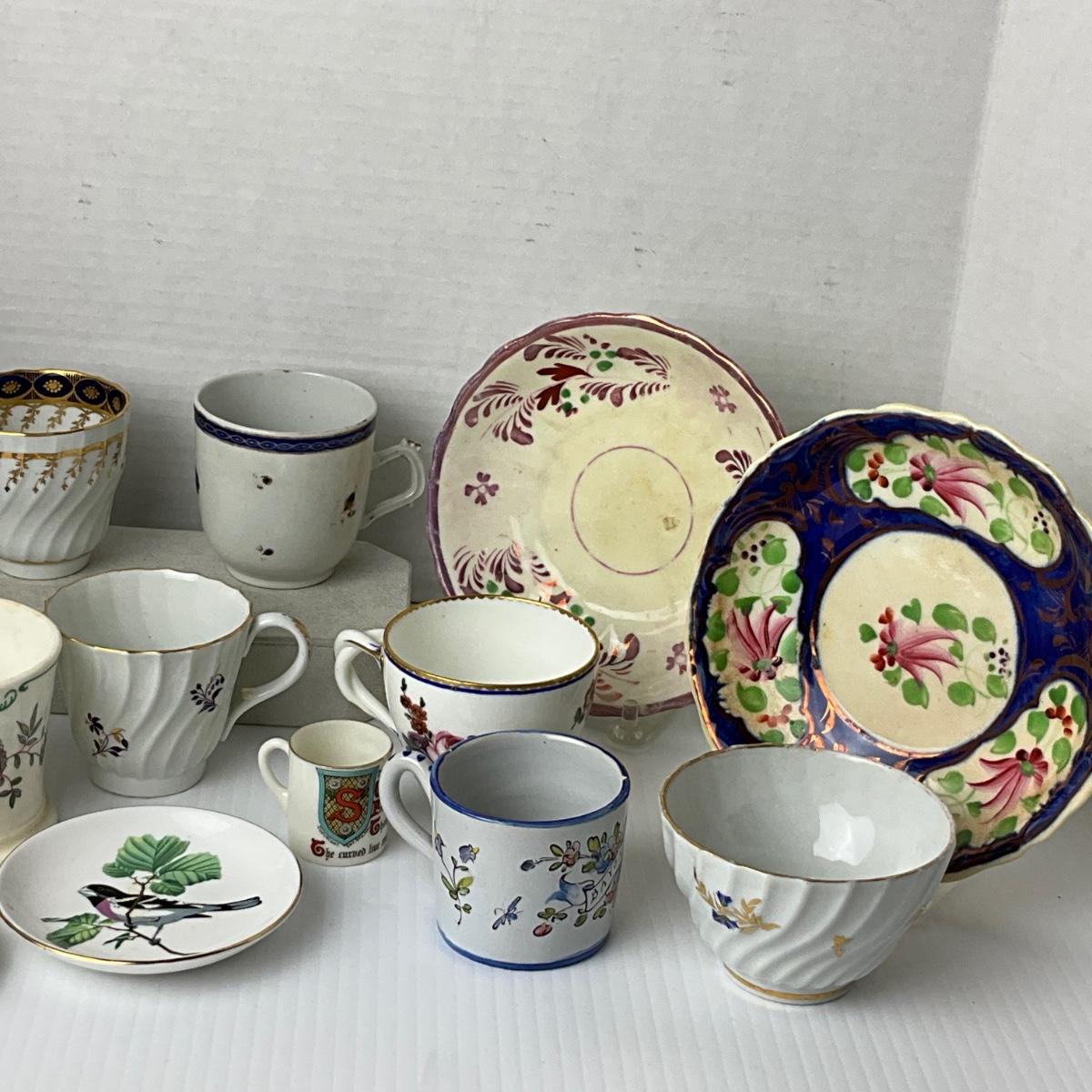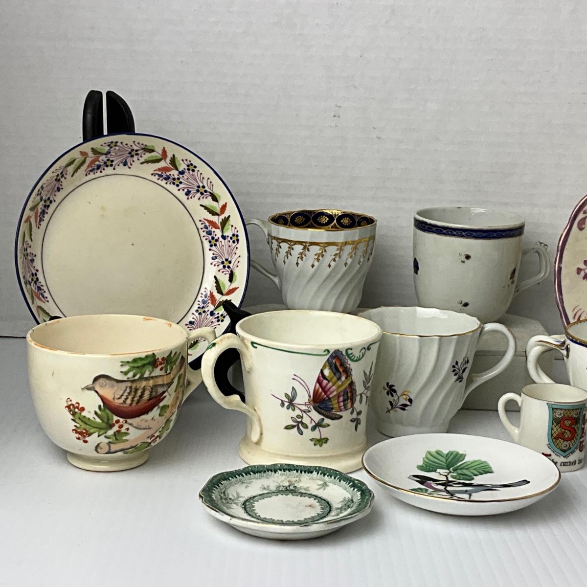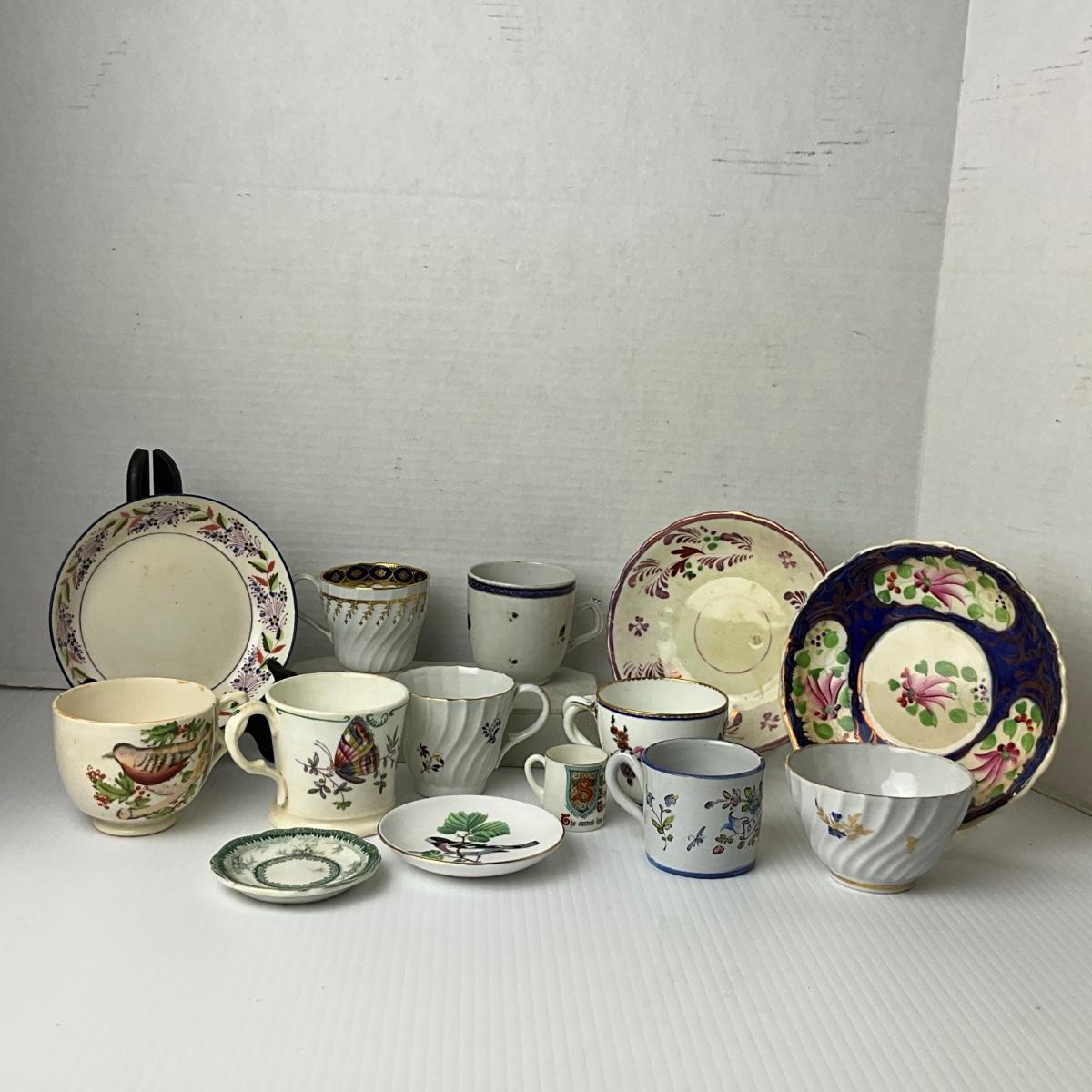 1037 Antique Transferware, Chelsea, Cups and Saucers, Bowls