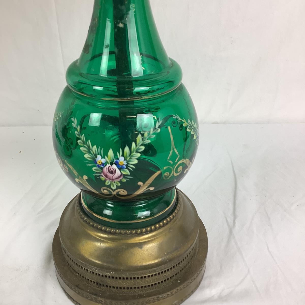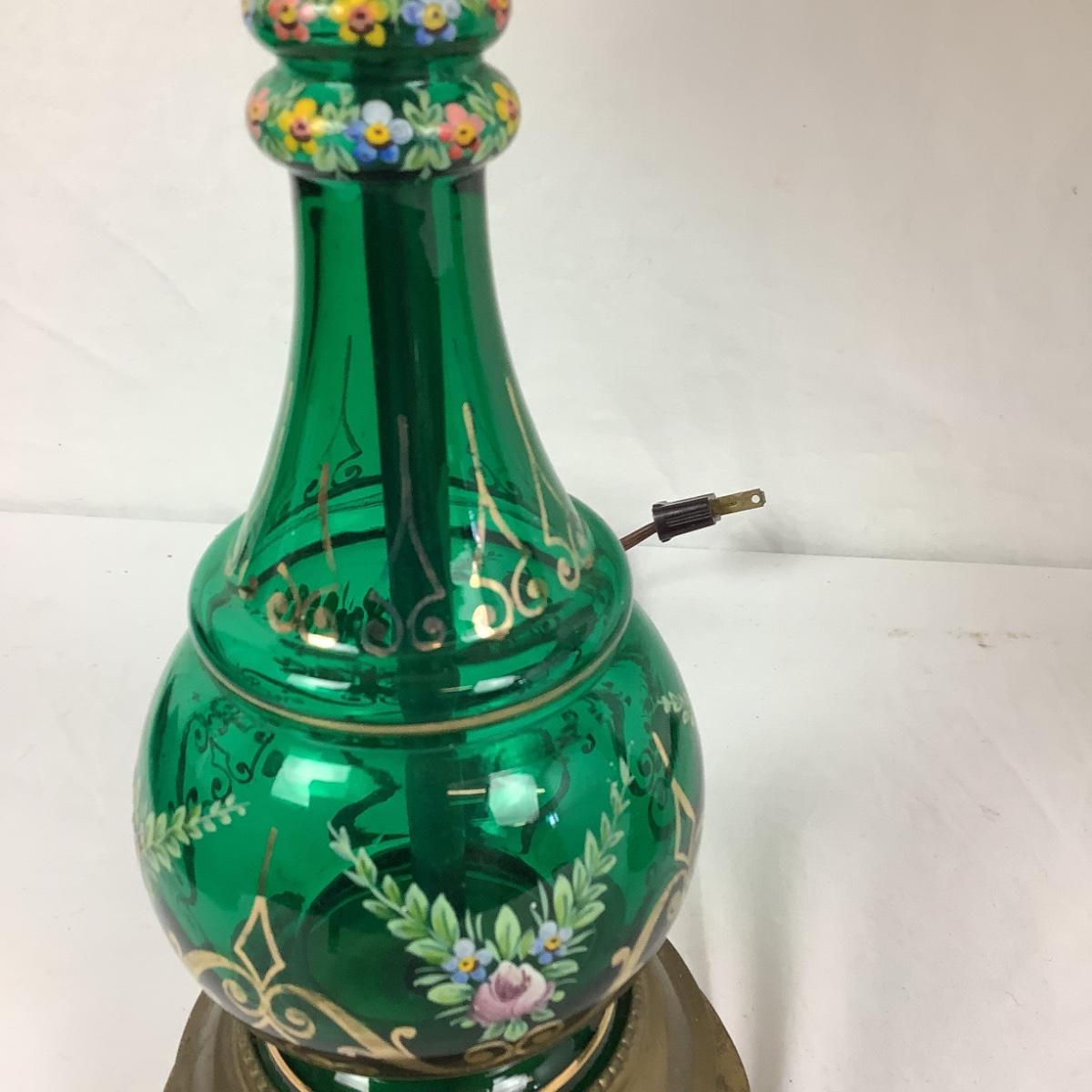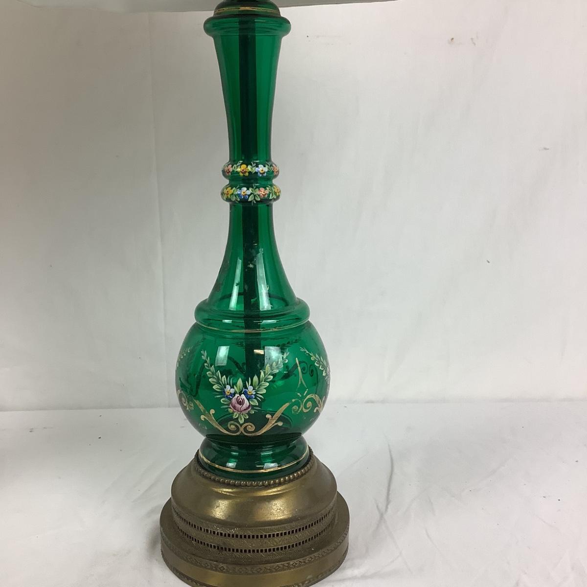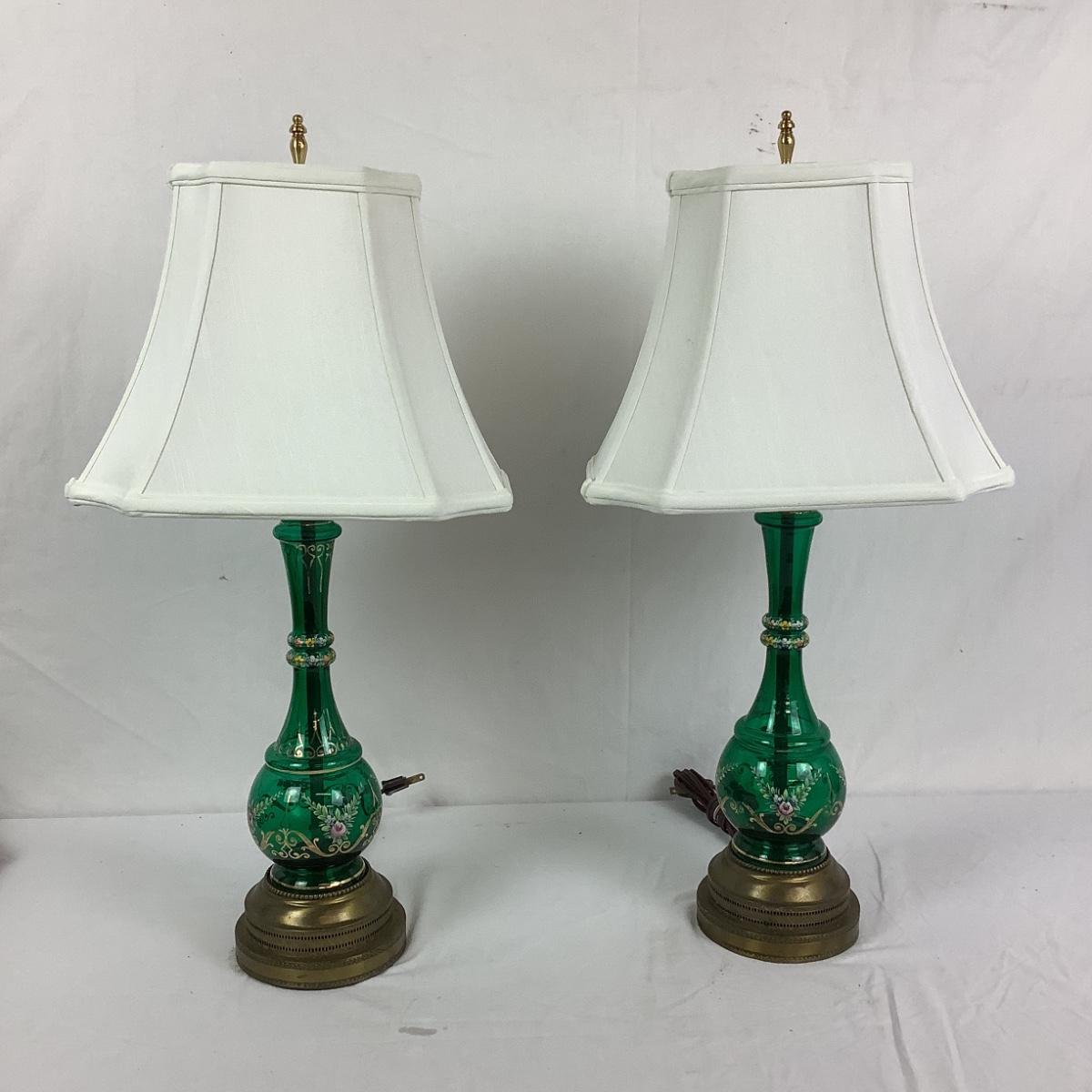 1038 Pair of Vintage Handpainted Bohemian Glass Lamps