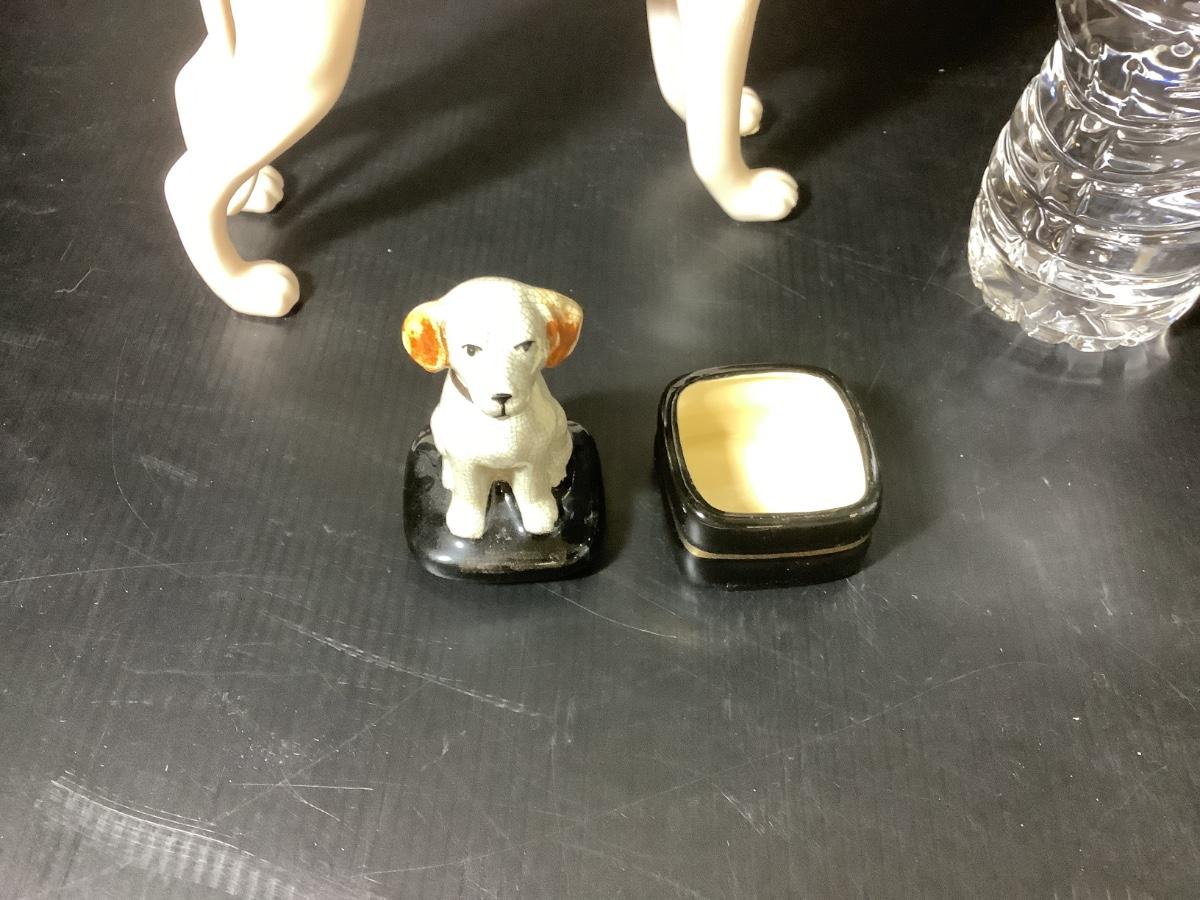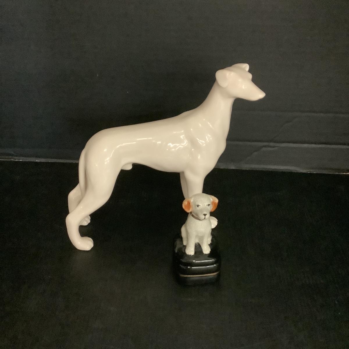 Lot contains-Greyhound dog figure that is 9" x 8", trinket box with dog that is 4" x 2".