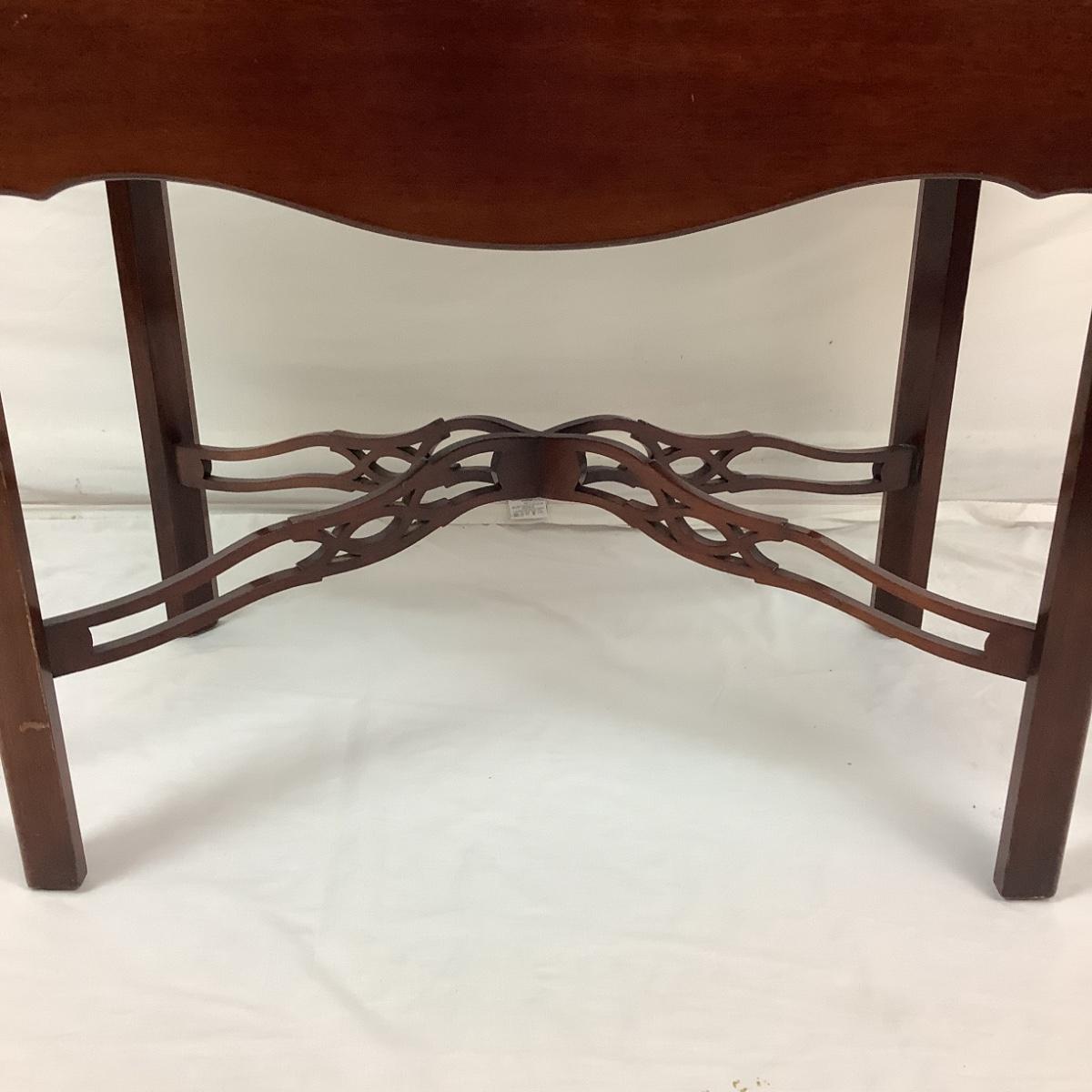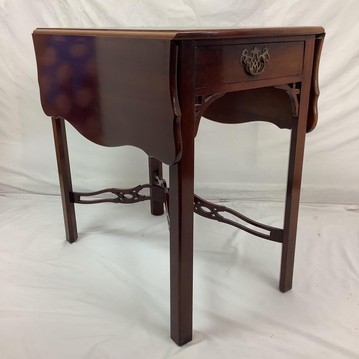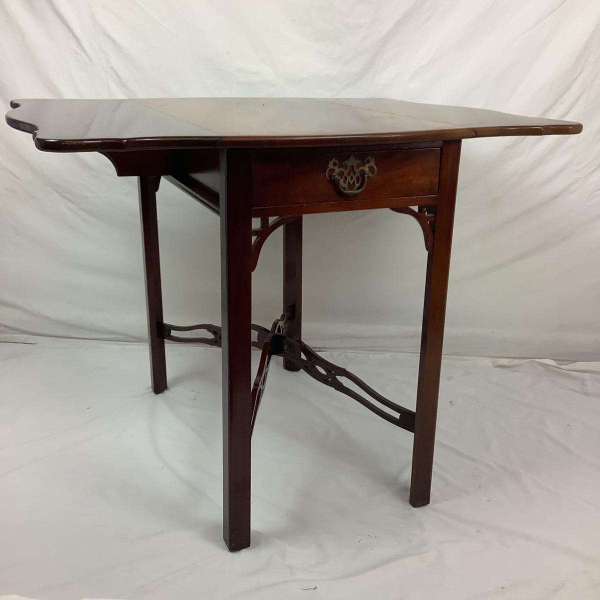 1039 The Williamsburg Galleries Antique Mahogany Double Drop-leaf Pembroke Table w/ Pierced Stretcher