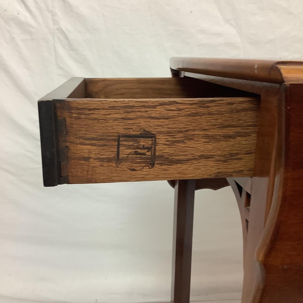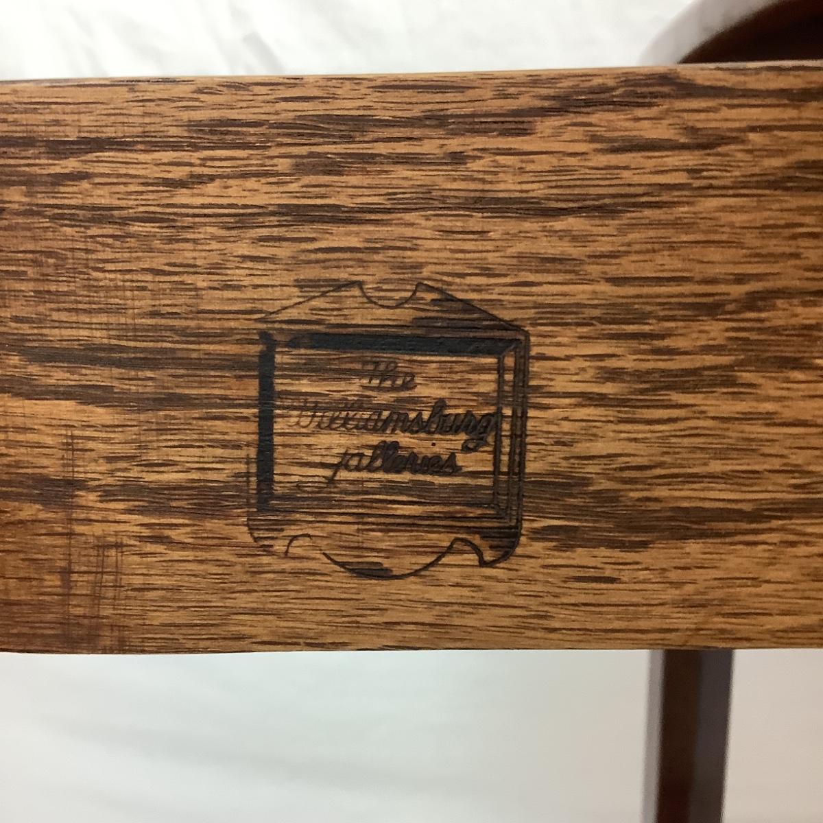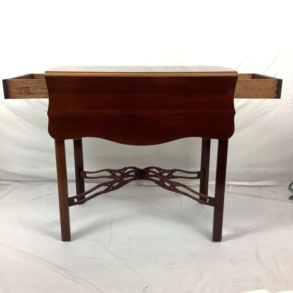 The Williamsburg Galleries Antique Mahogany Double Drop-leaf Pembroke Table w/ Pierced Stretcher & 2 Drawers on each side.
