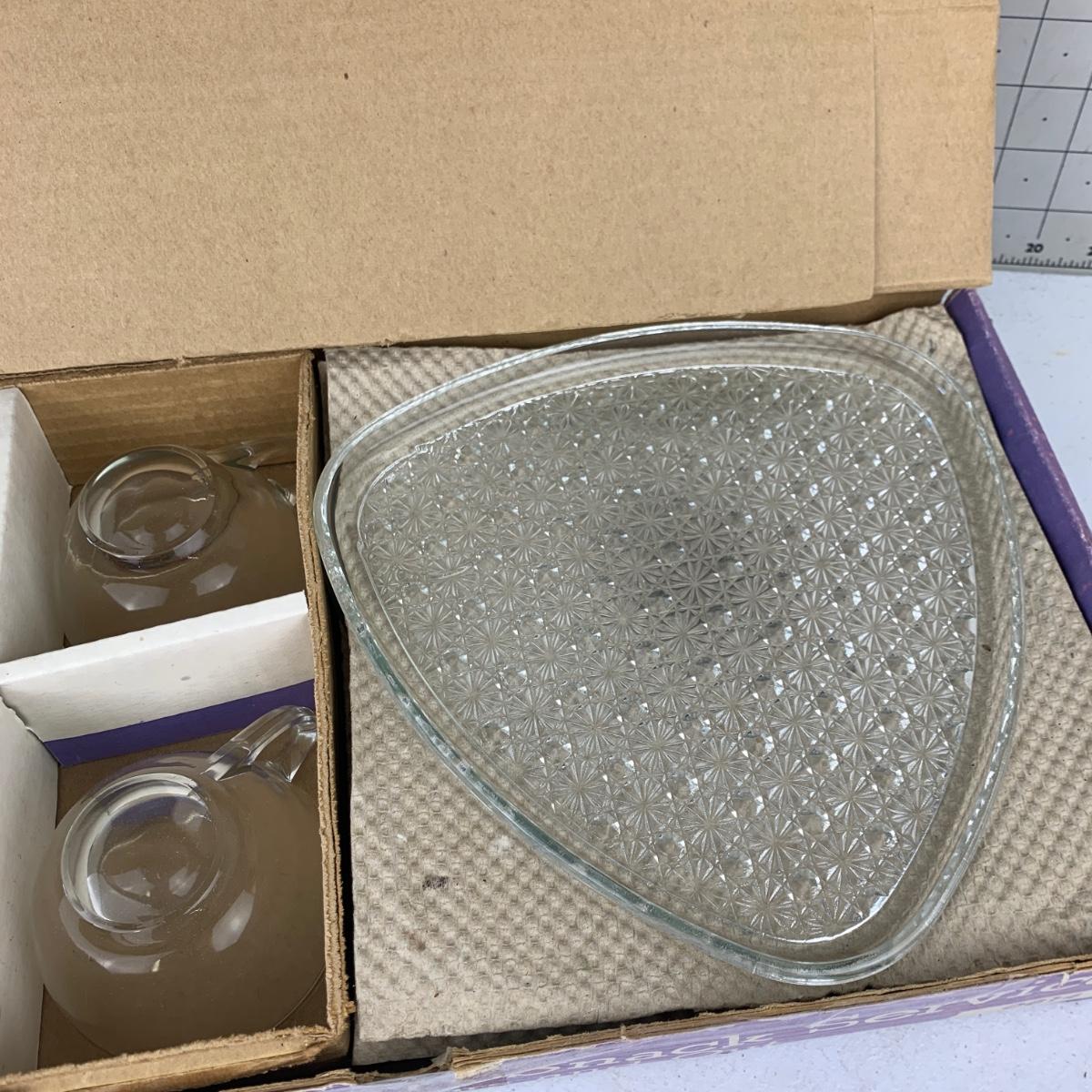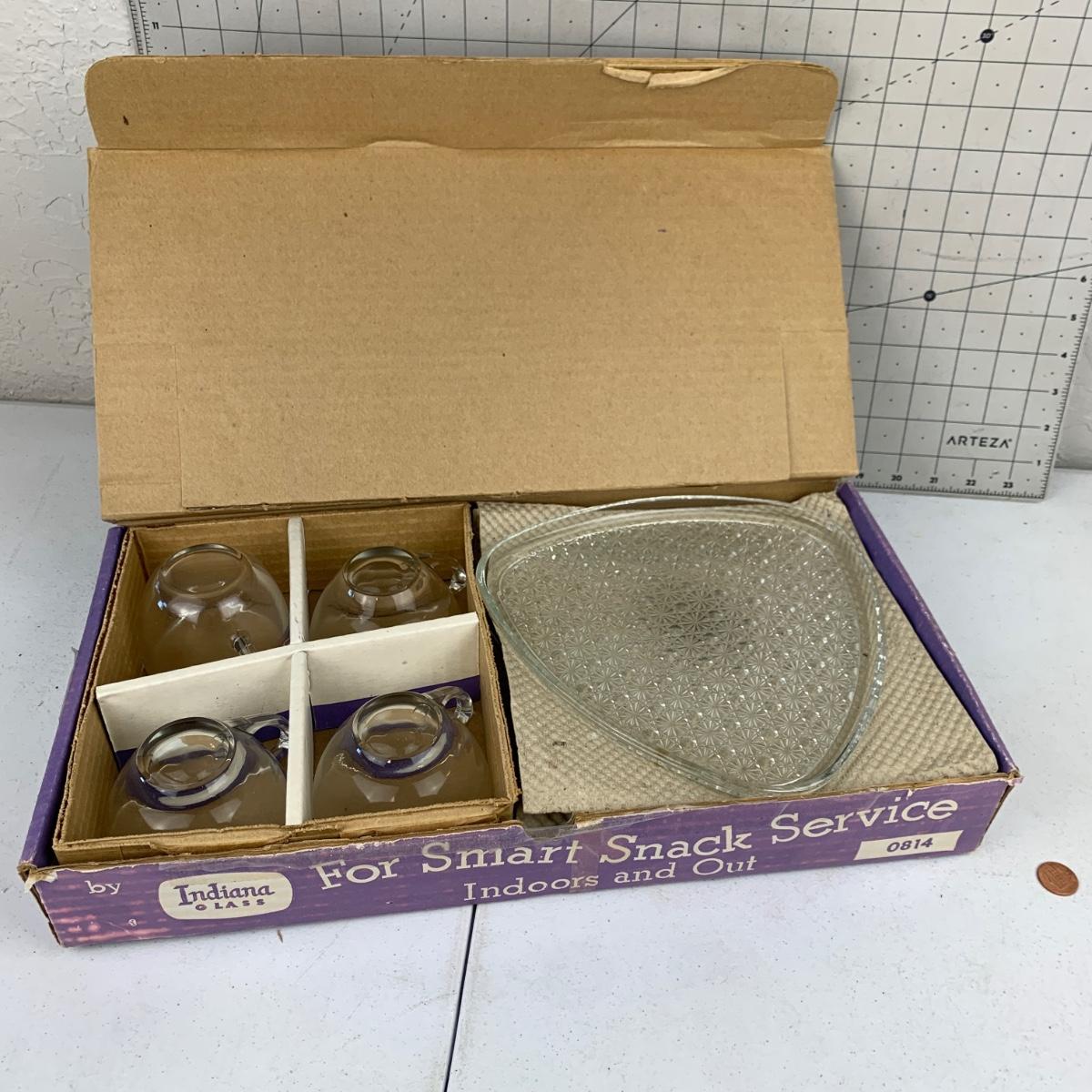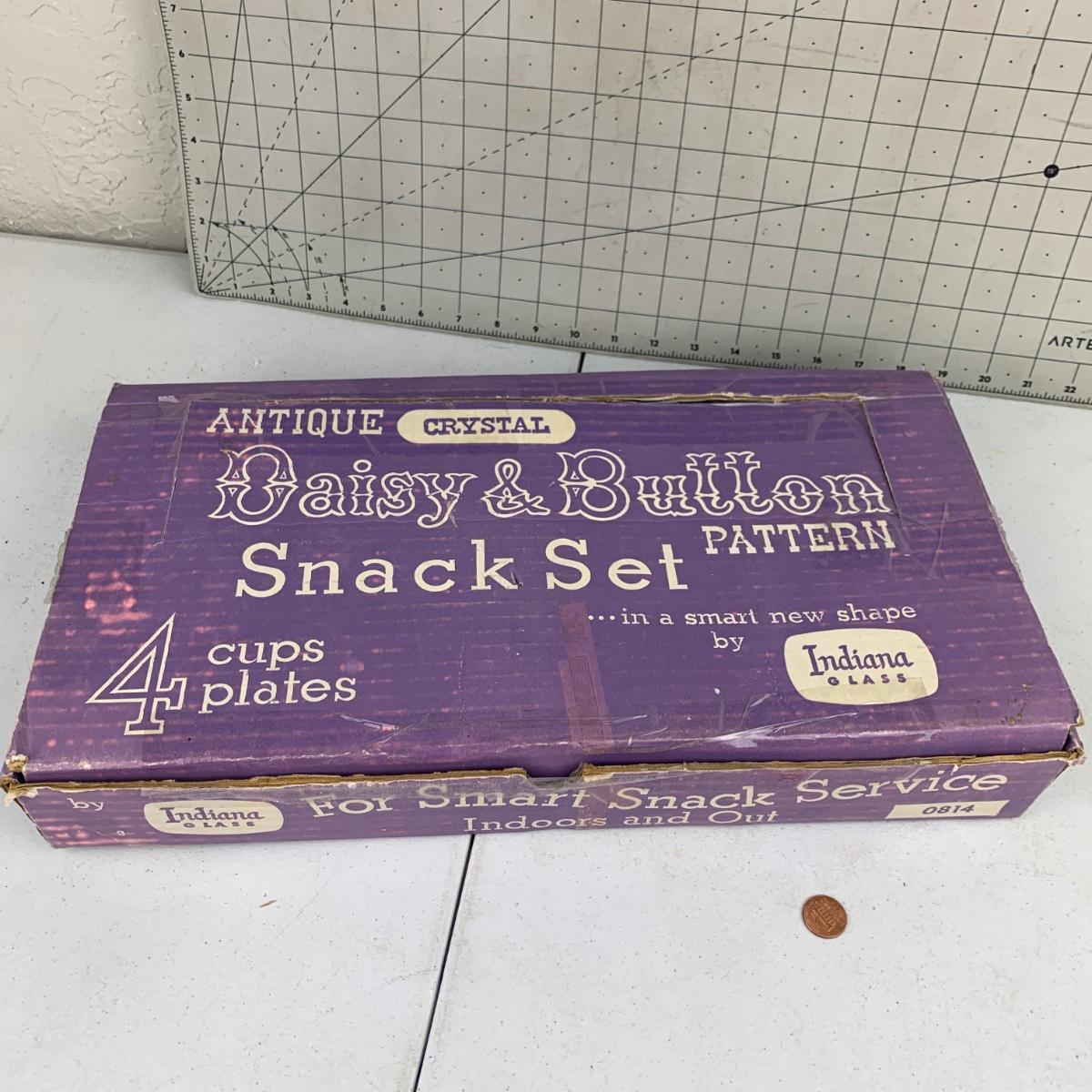 #104 Antique Crystal Daisy & Button Pattern Snack Set (4 Cups/Plates)