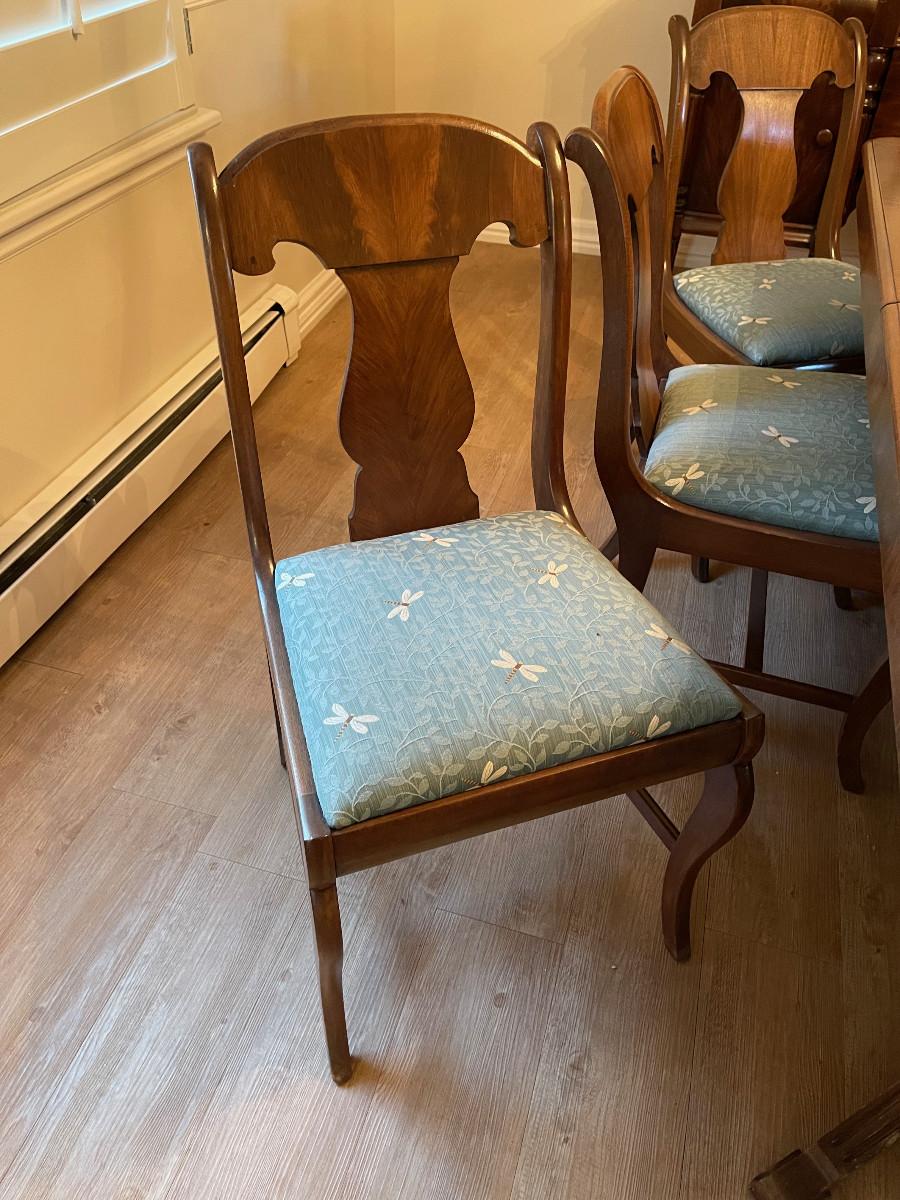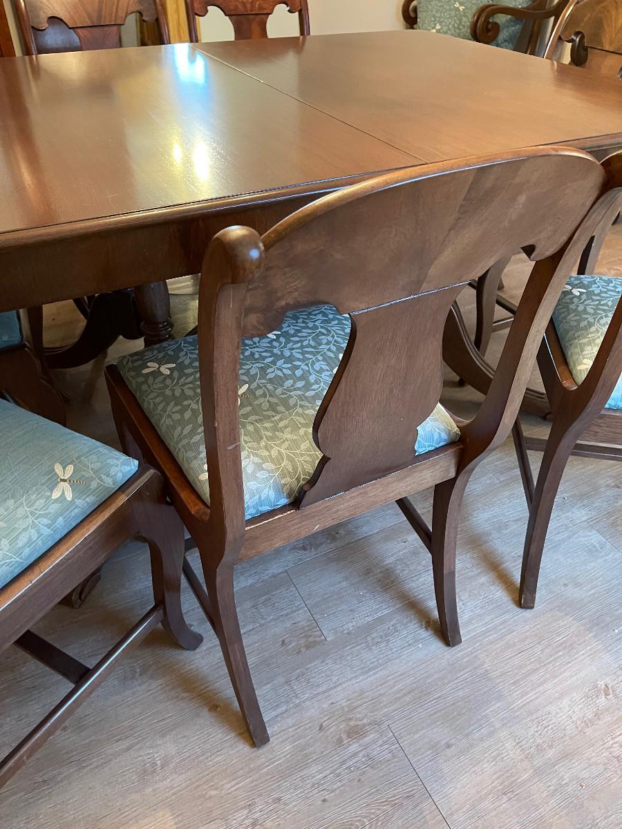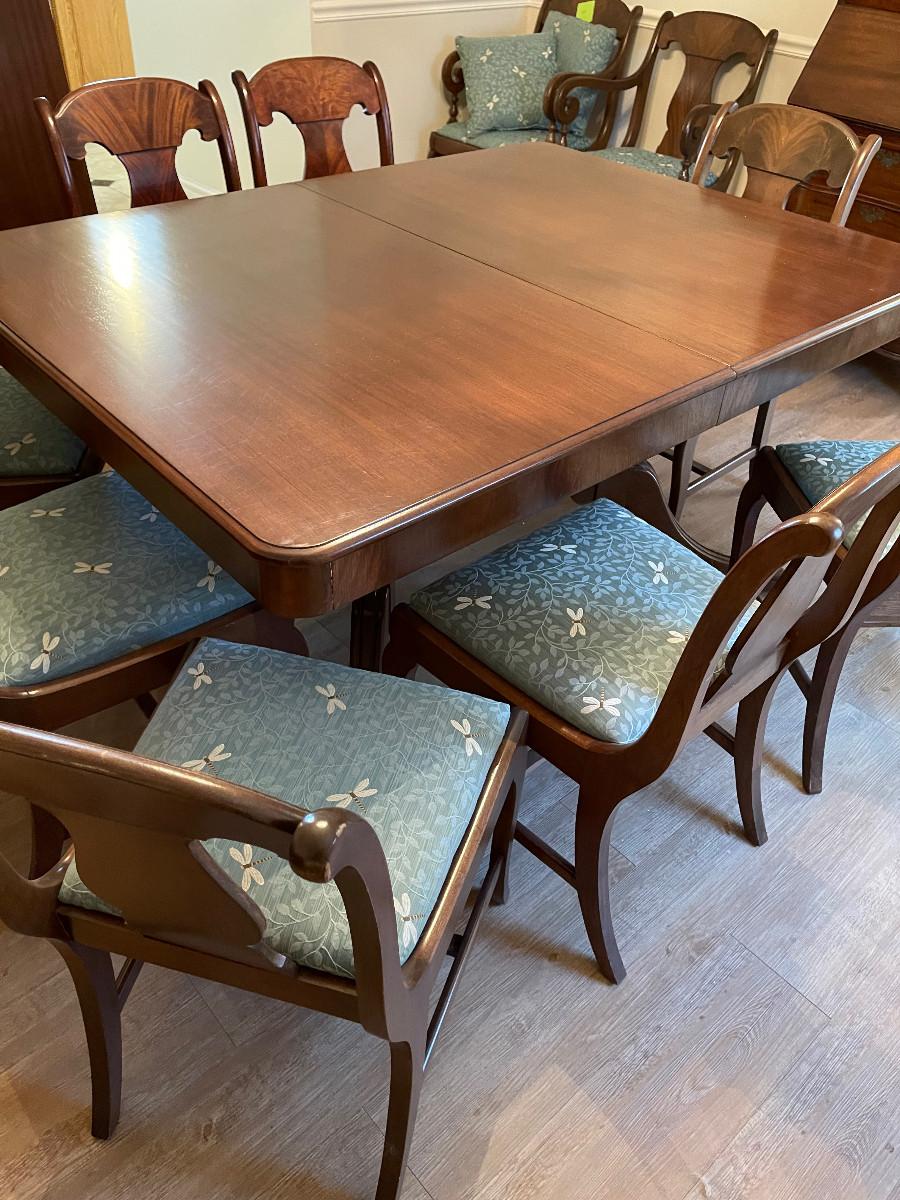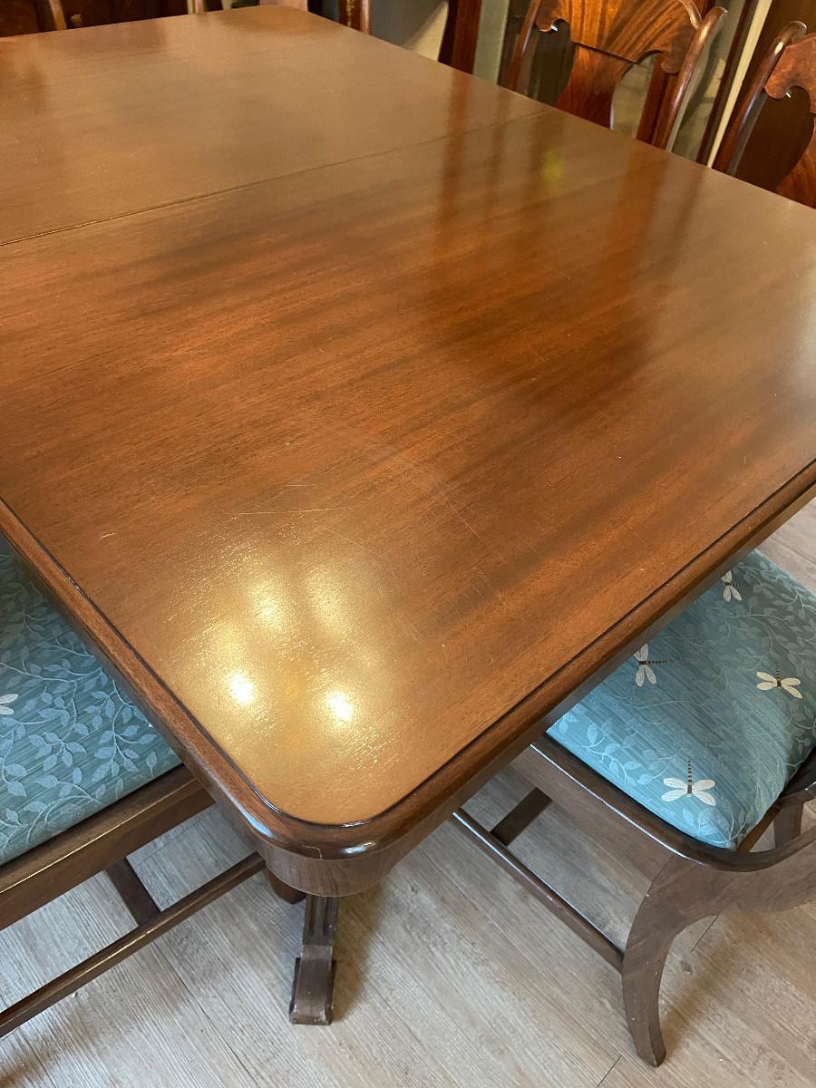 #104 Antique Mahogany Table. Refinished!  Plus 8 Matching Chair. Reupholstered