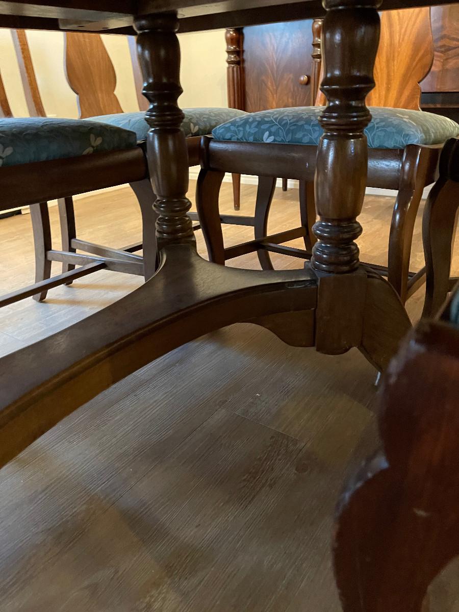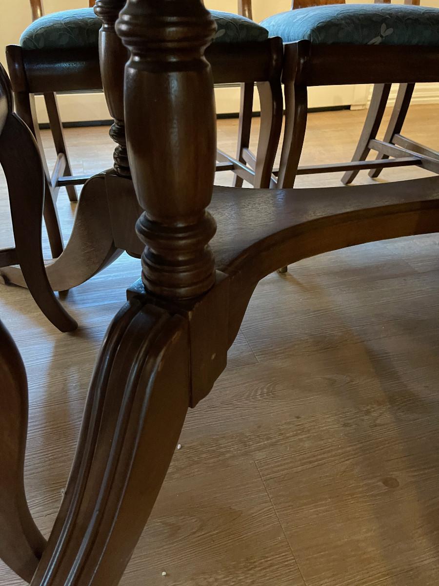 Excellent work on refinish 60 x 45 Plus 3 Leaves extending it to 96" Plus 8 Chairs