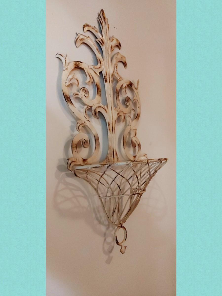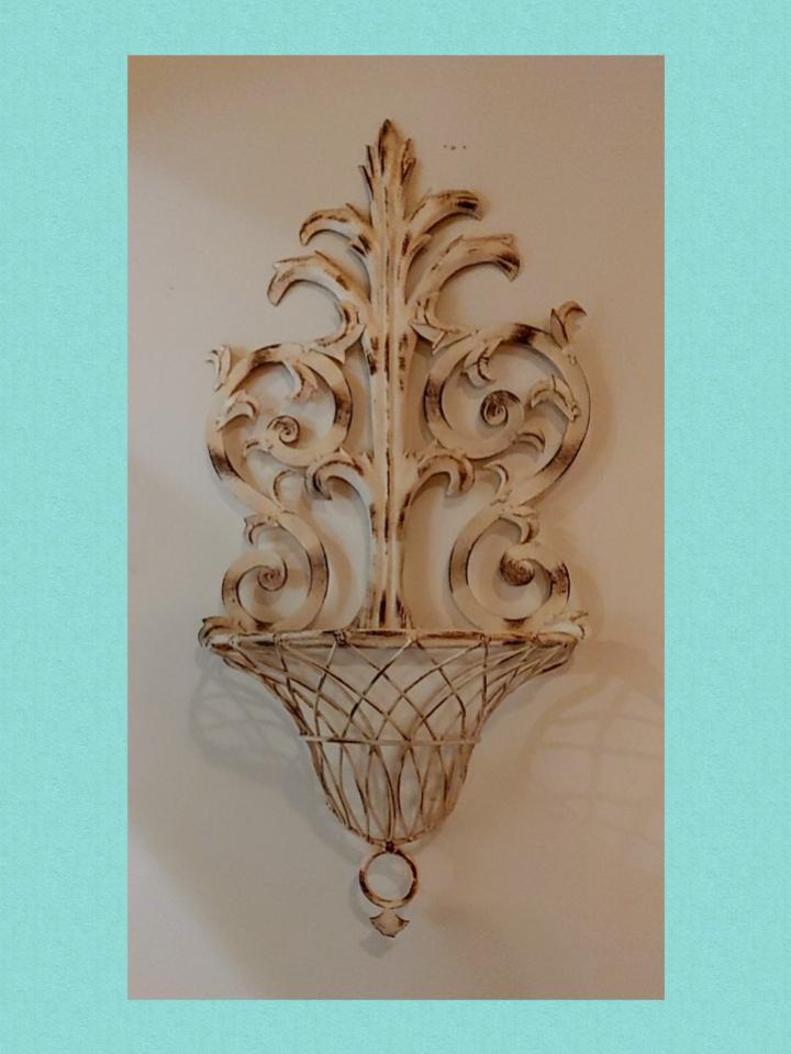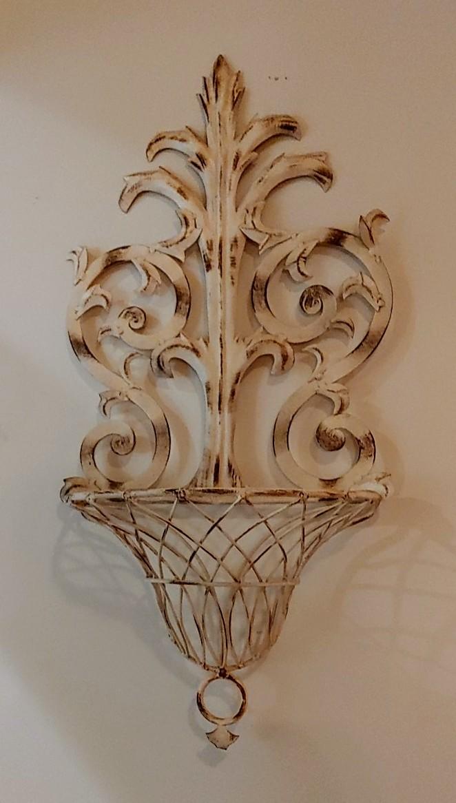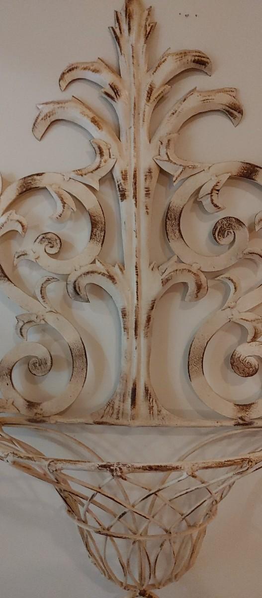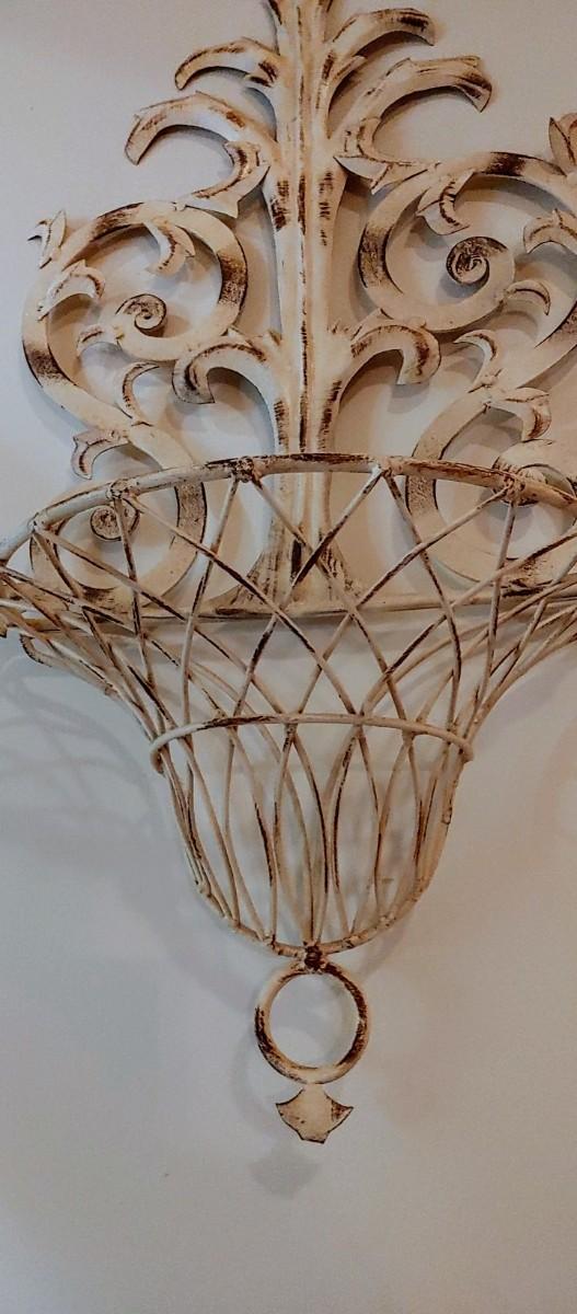 #104 Fleur De Lis Wrought Iron Wall Planter is so beautiful .would look great with Ivey on a Terrace or on a brick accent wall,