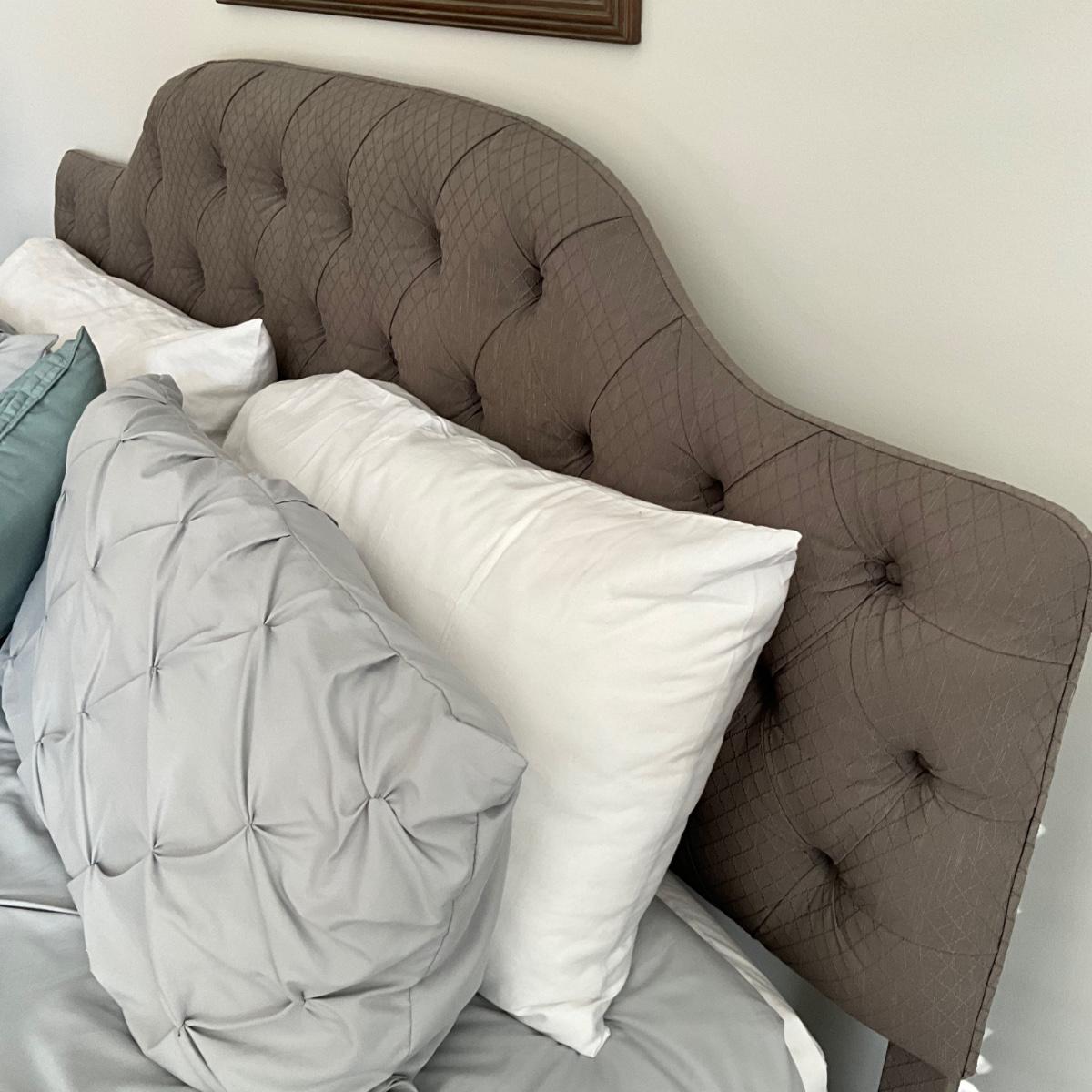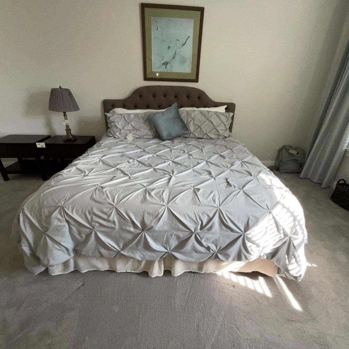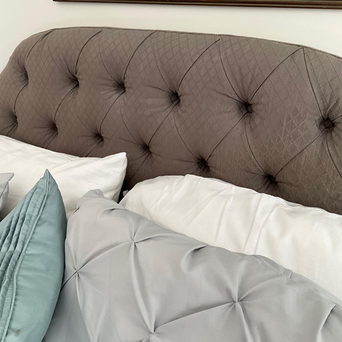 104 King Tufted Gray Headboard with Bedding