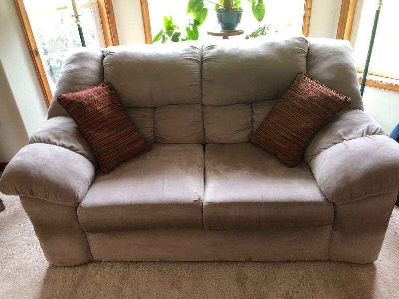 Pillows included, Non reversible cushions. Please note* homeowner had a dog.