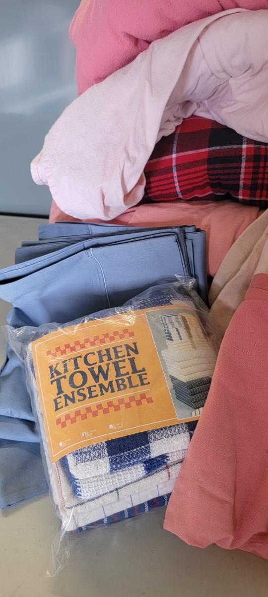 Five Queen fitted flannel sheets, flannel pillowcases and kitchen towel ensemble