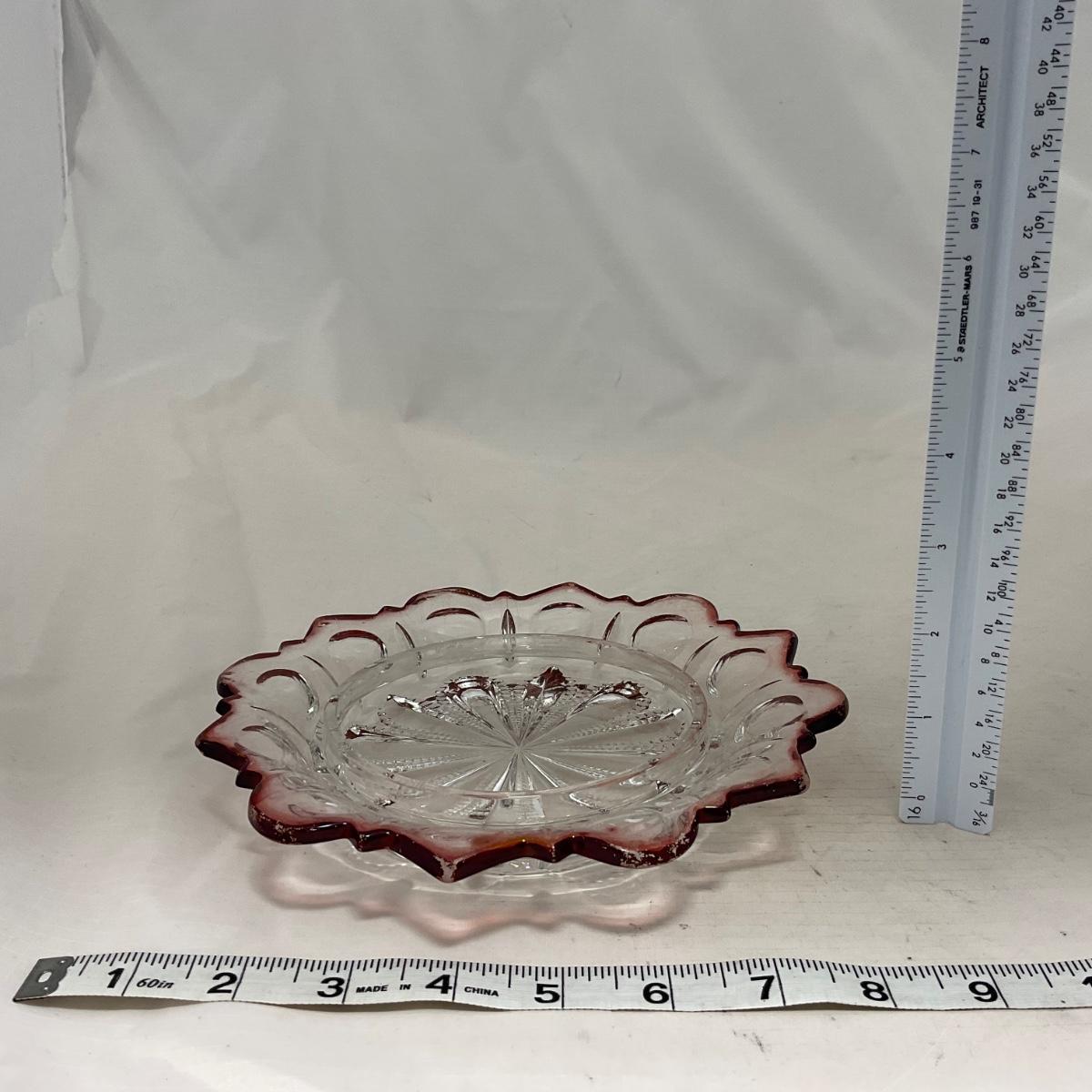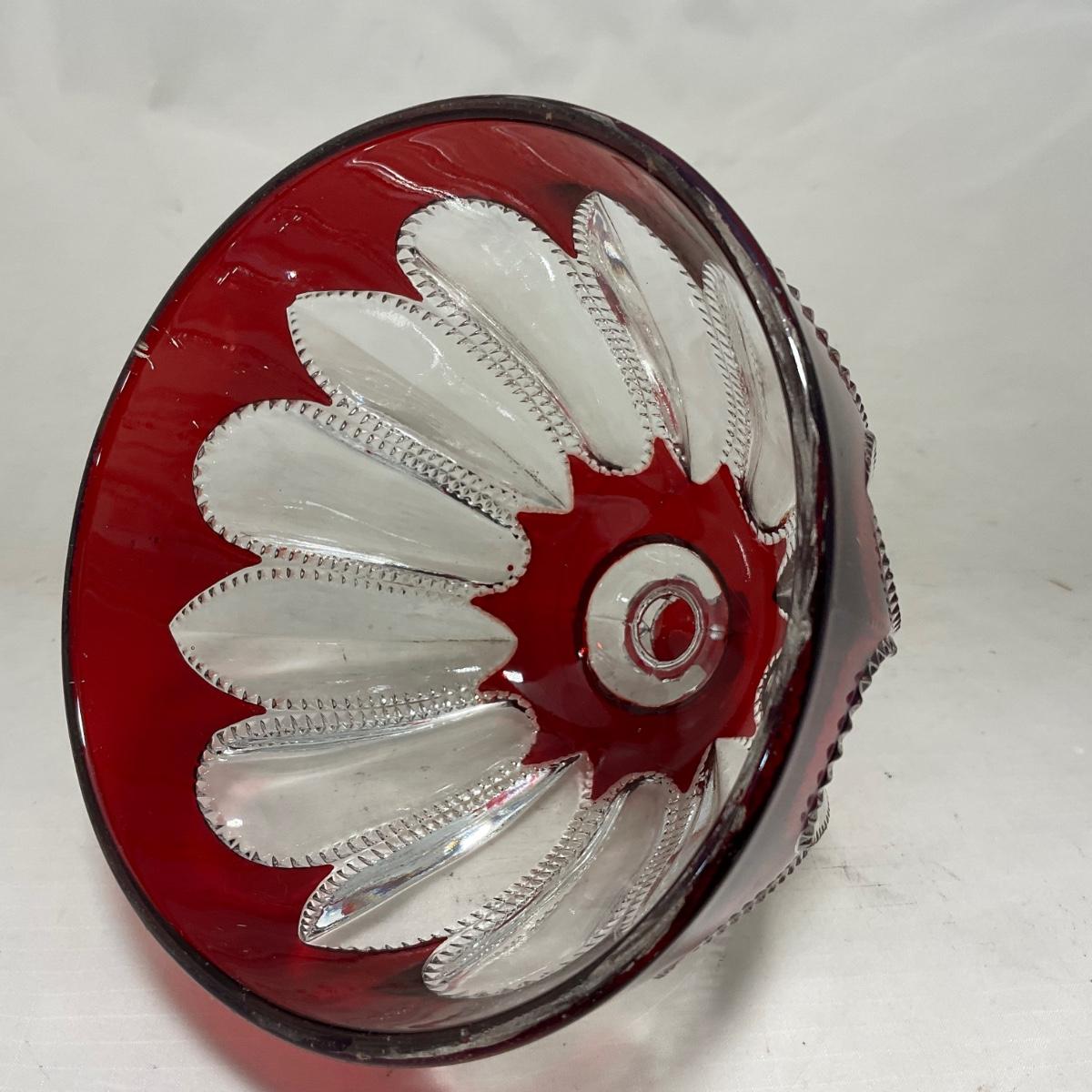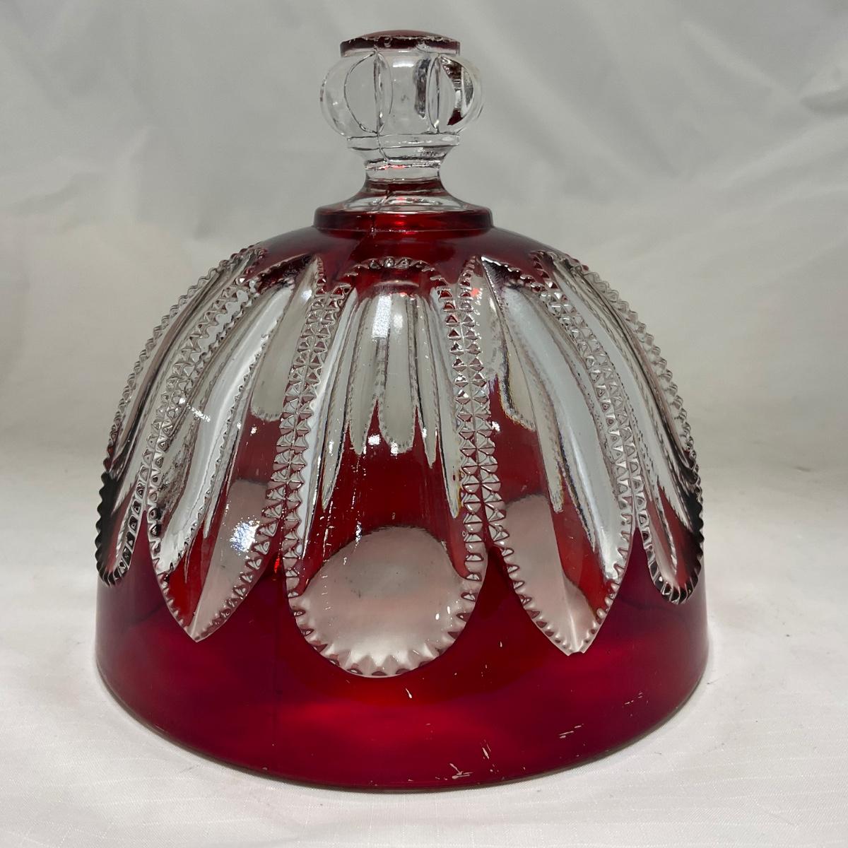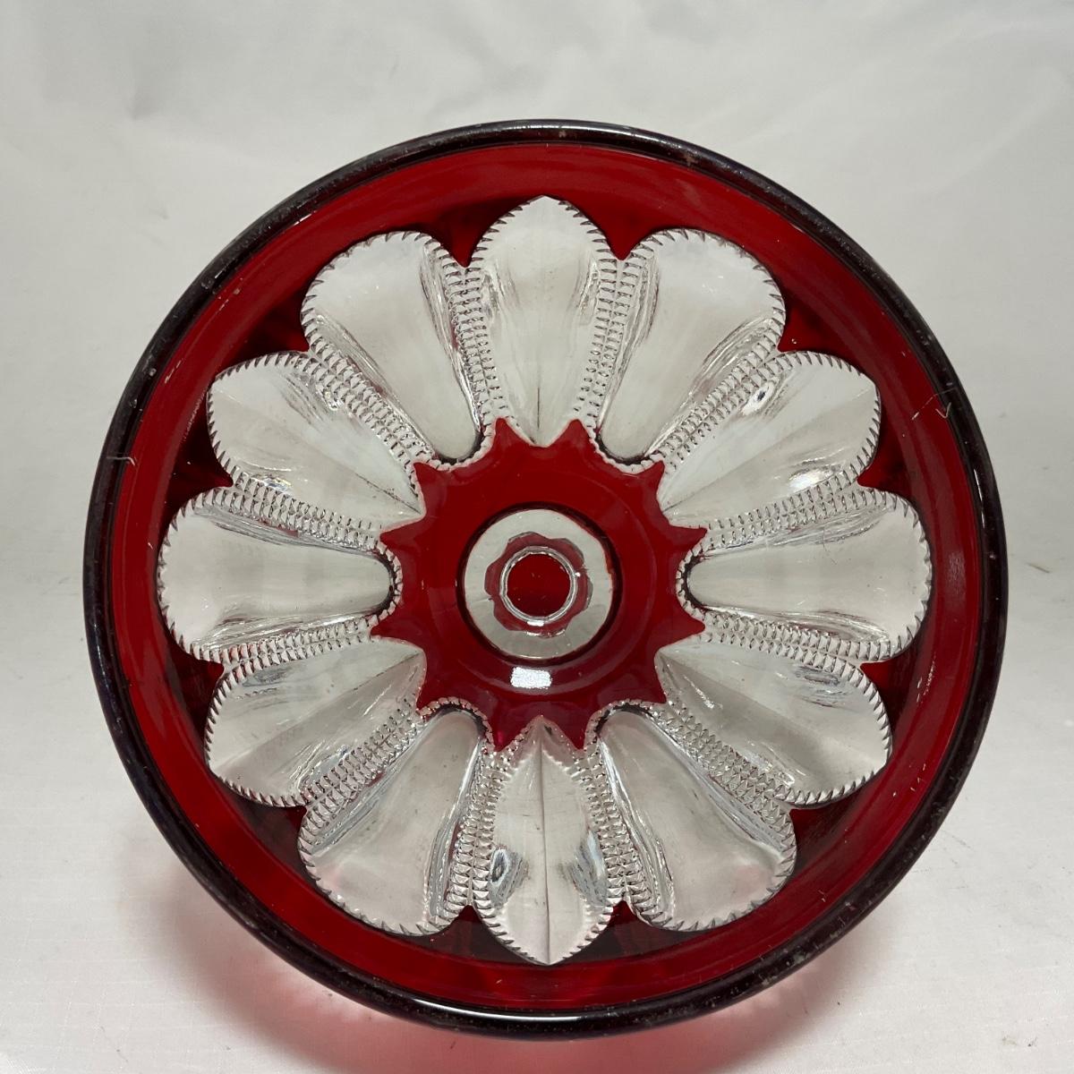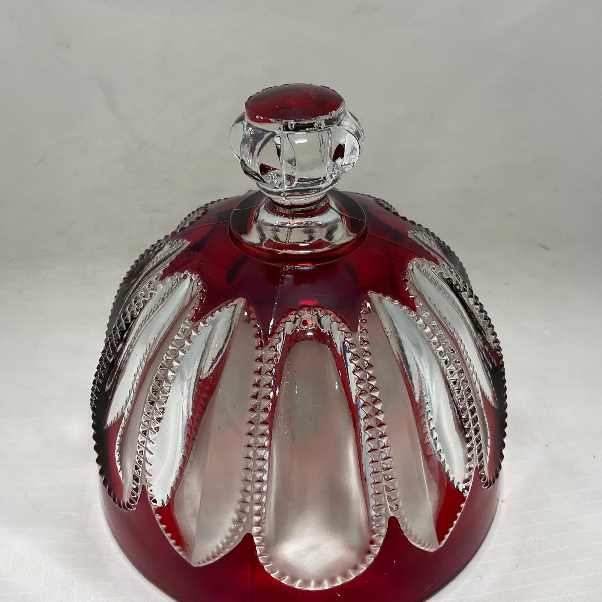 A classic ruby red and clear glass covered butter dish, with beautiful clear glass window to pear though your lid to the bottom dish. This piece is well loved so does have some wear on the ruby red coloring. Please see photos for details and condition. ::: Shipping is available on this lot. If you require shipping you must let us know at the close of the auction. We will coordinate with you after the item has been won. Shipping fees will include insurance up to or exceeding the value of all items being mailed. If you have any questions regarding this lot please contact the auctioneer either via this website, by direct email or by phone. PICK UP TIMES and other important information can be found in the TERMS and DESCRIPTION of the auction. Please take a look for pertinent information. Thanks!