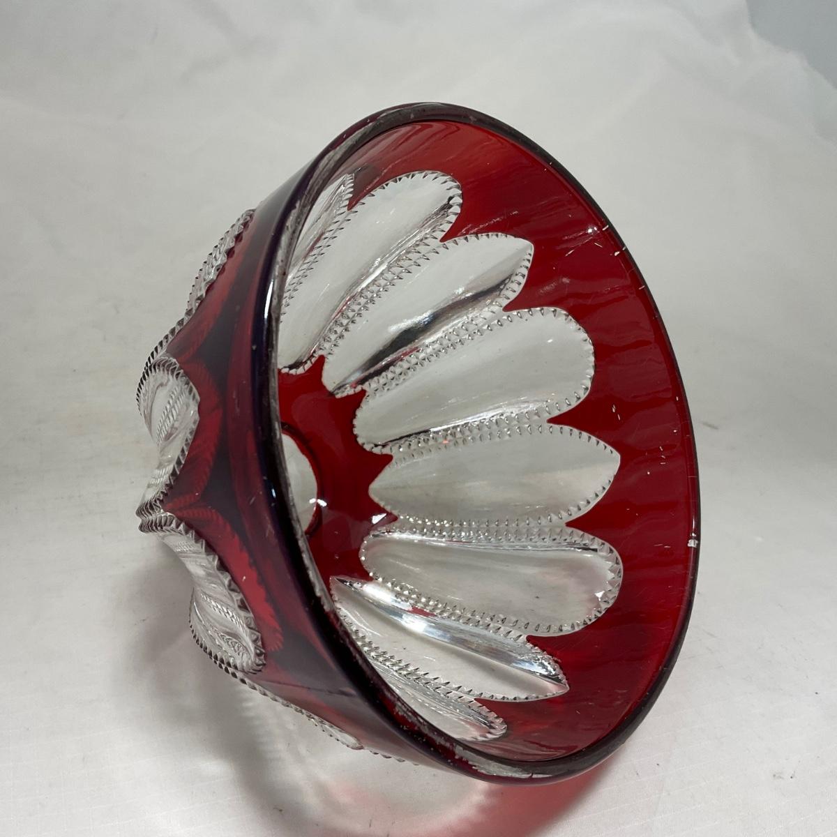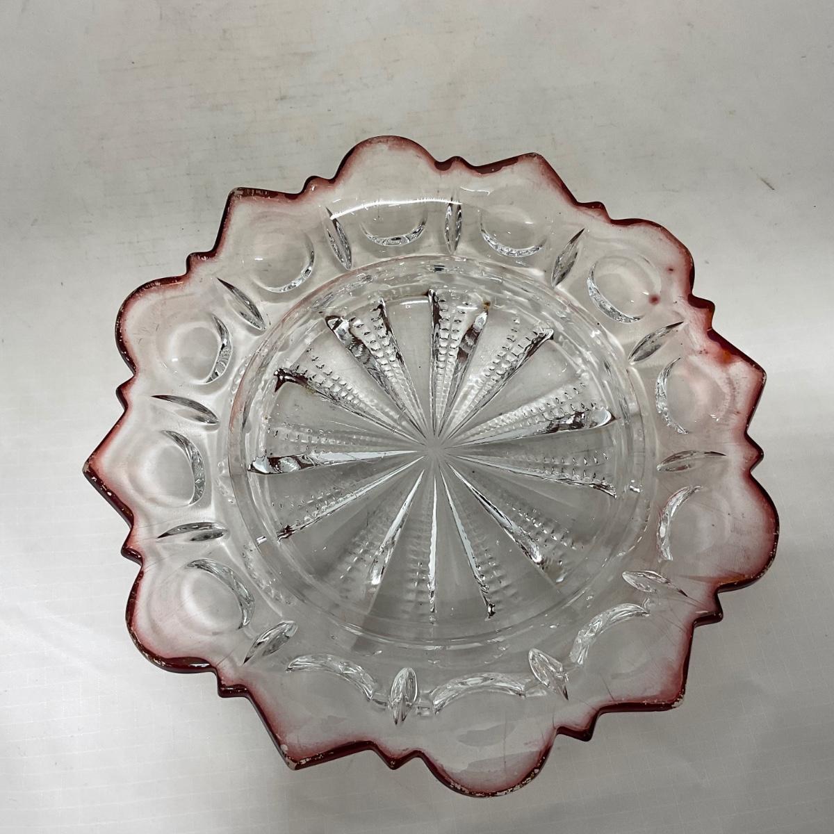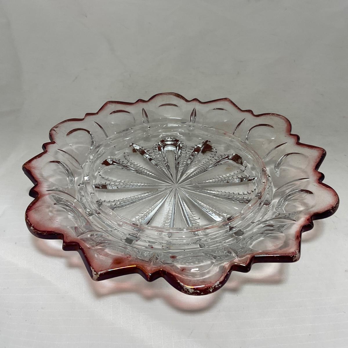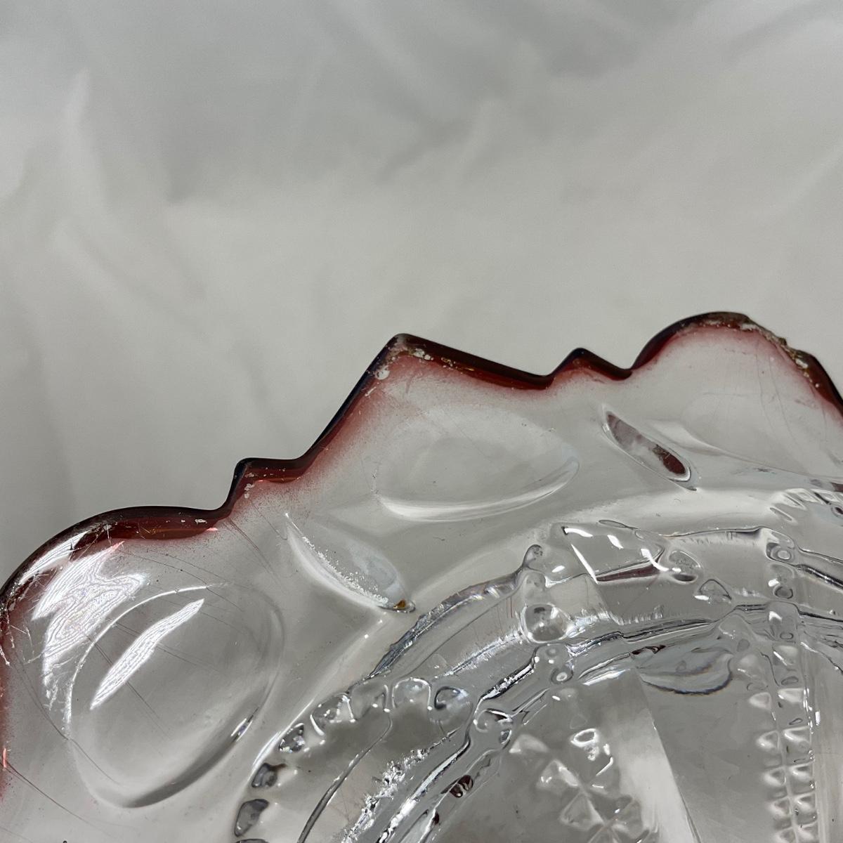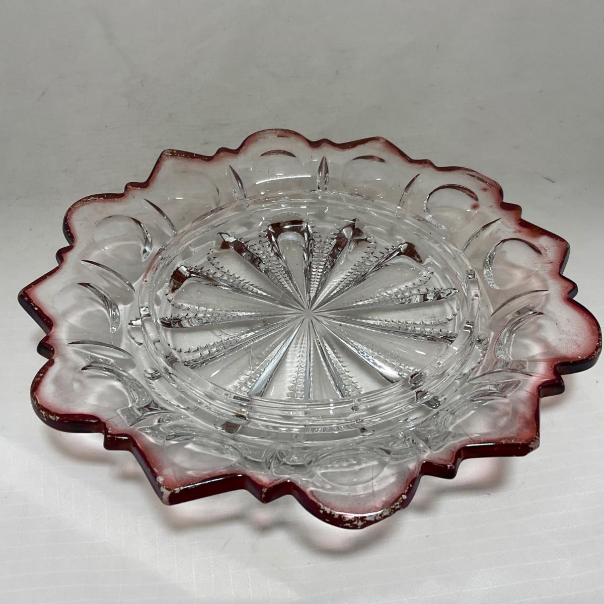 A classic ruby red and clear glass covered butter dish, with beautiful clear glass window to pear though your lid to the bottom dish. This piece is well loved so does have some wear on the ruby red coloring. Please see photos for details and condition. ::: Shipping is available on this lot. If you require shipping you must let us know at the close of the auction. We will coordinate with you after the item has been won. Shipping fees will include insurance up to or exceeding the value of all items being mailed. If you have any questions regarding this lot please contact the auctioneer either via this website, by direct email or by phone. PICK UP TIMES and other important information can be found in the TERMS and DESCRIPTION of the auction. Please take a look for pertinent information. Thanks!