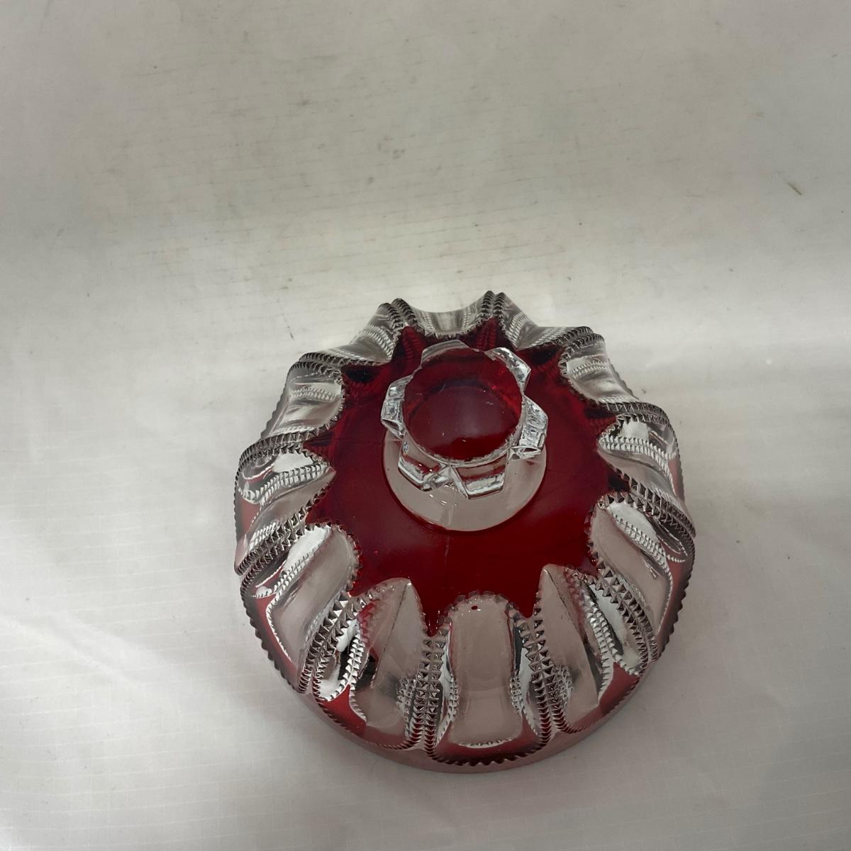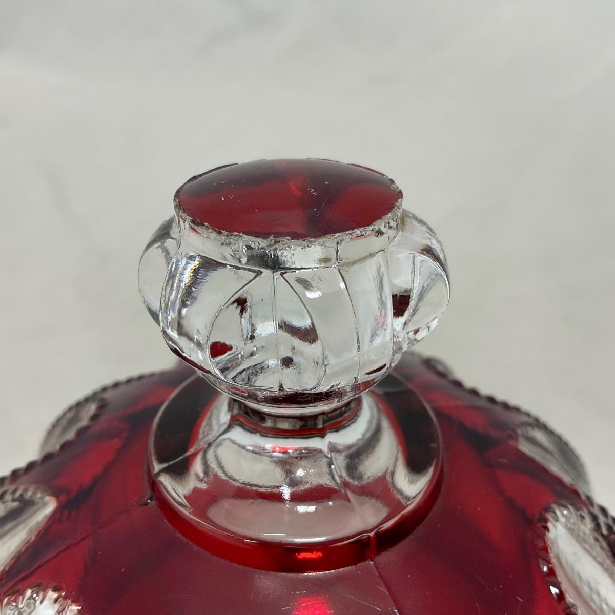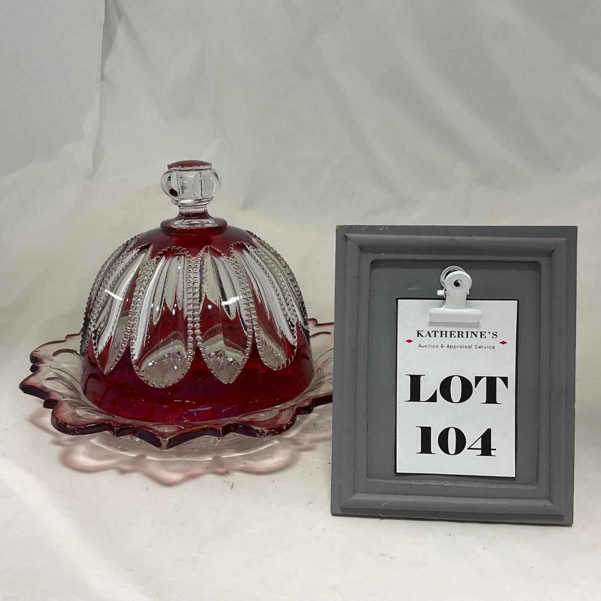 -104- Ruby Red and Clear Glass | Covered Butter Dish
