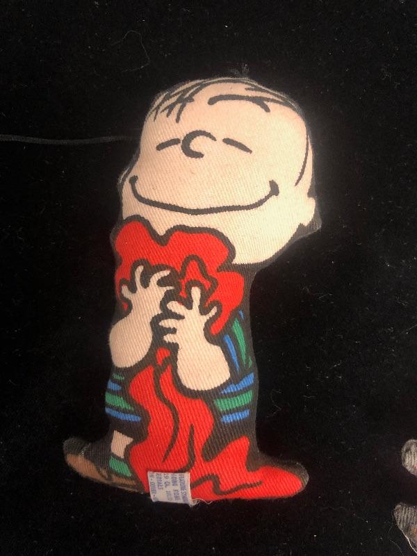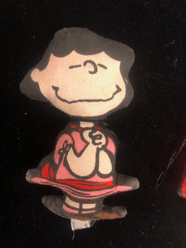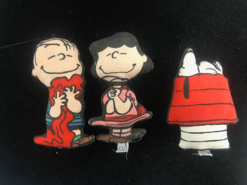 Bundle of 3 fabric ornaments - vintage used condition: Lucy, Linus and Snoopy.