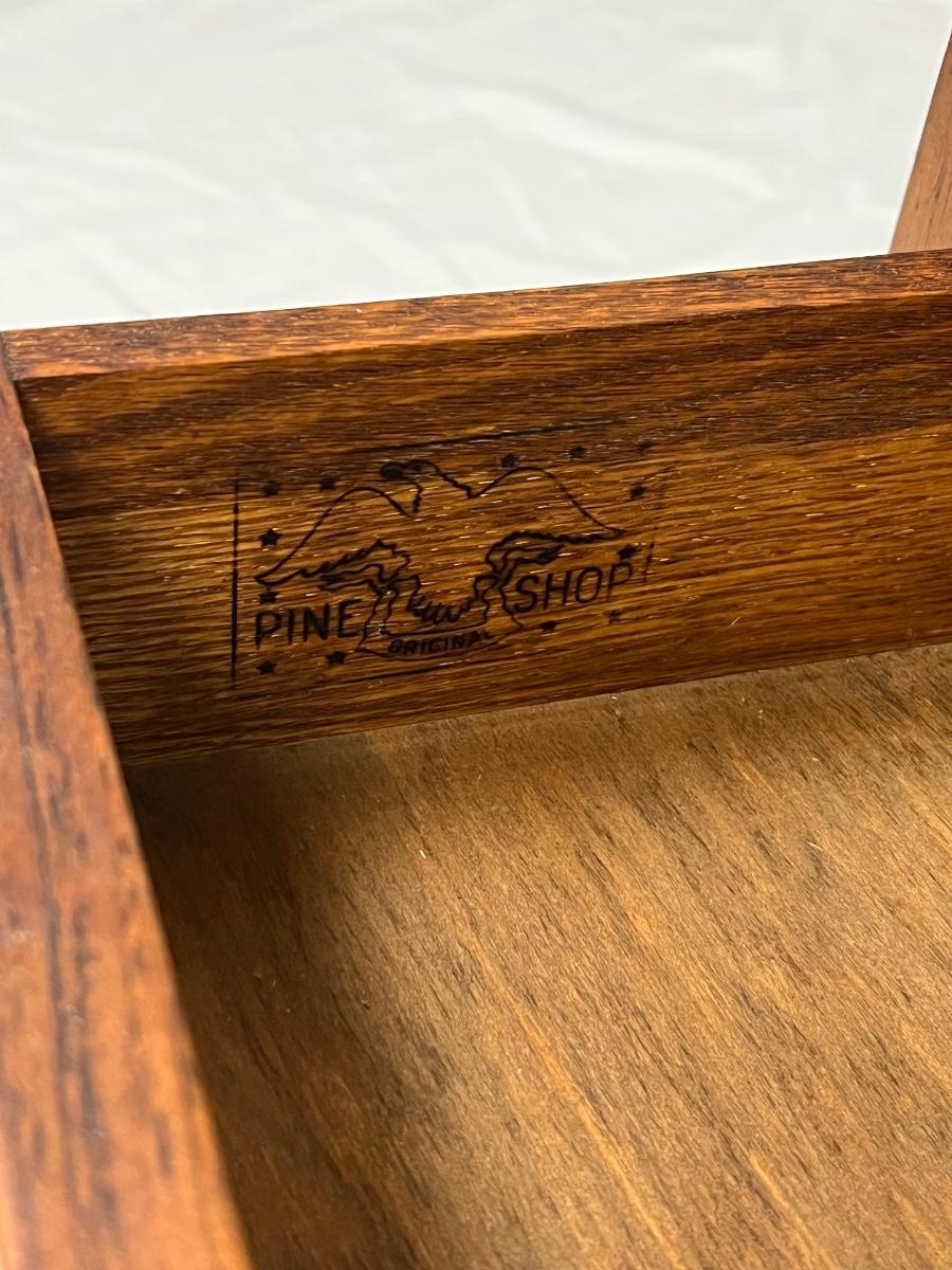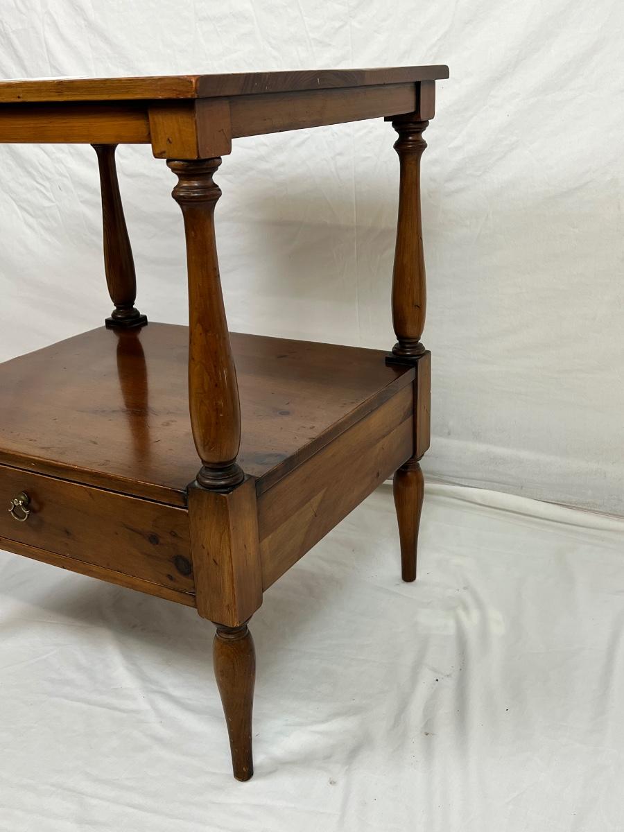 vintage pine one drawer end table made by Pine Shop with two shelves