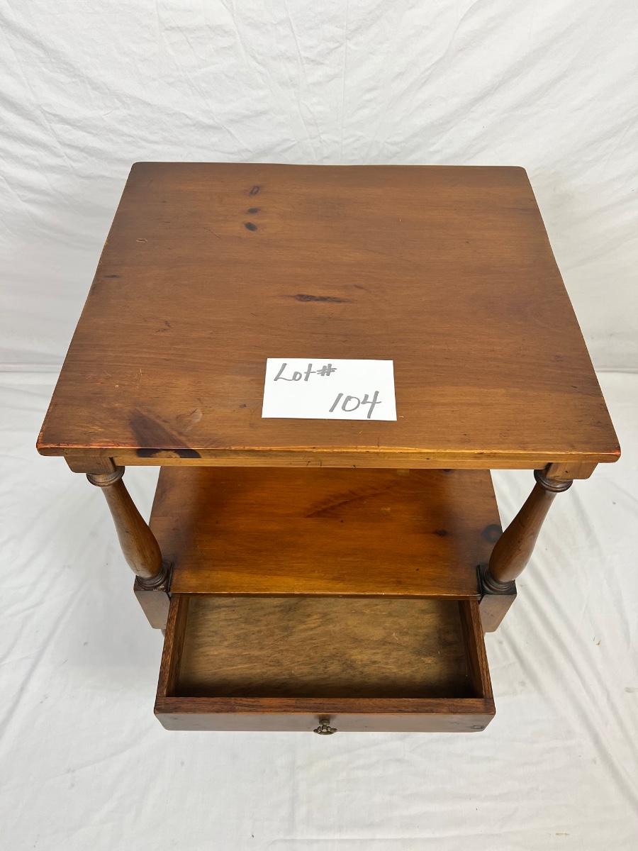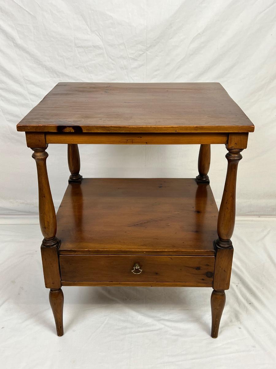 104 Vintage Pine Single Drawer End Table with Two Shelves