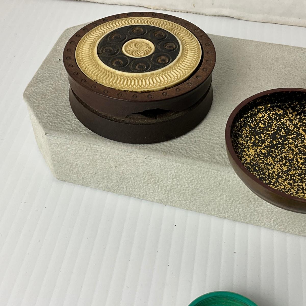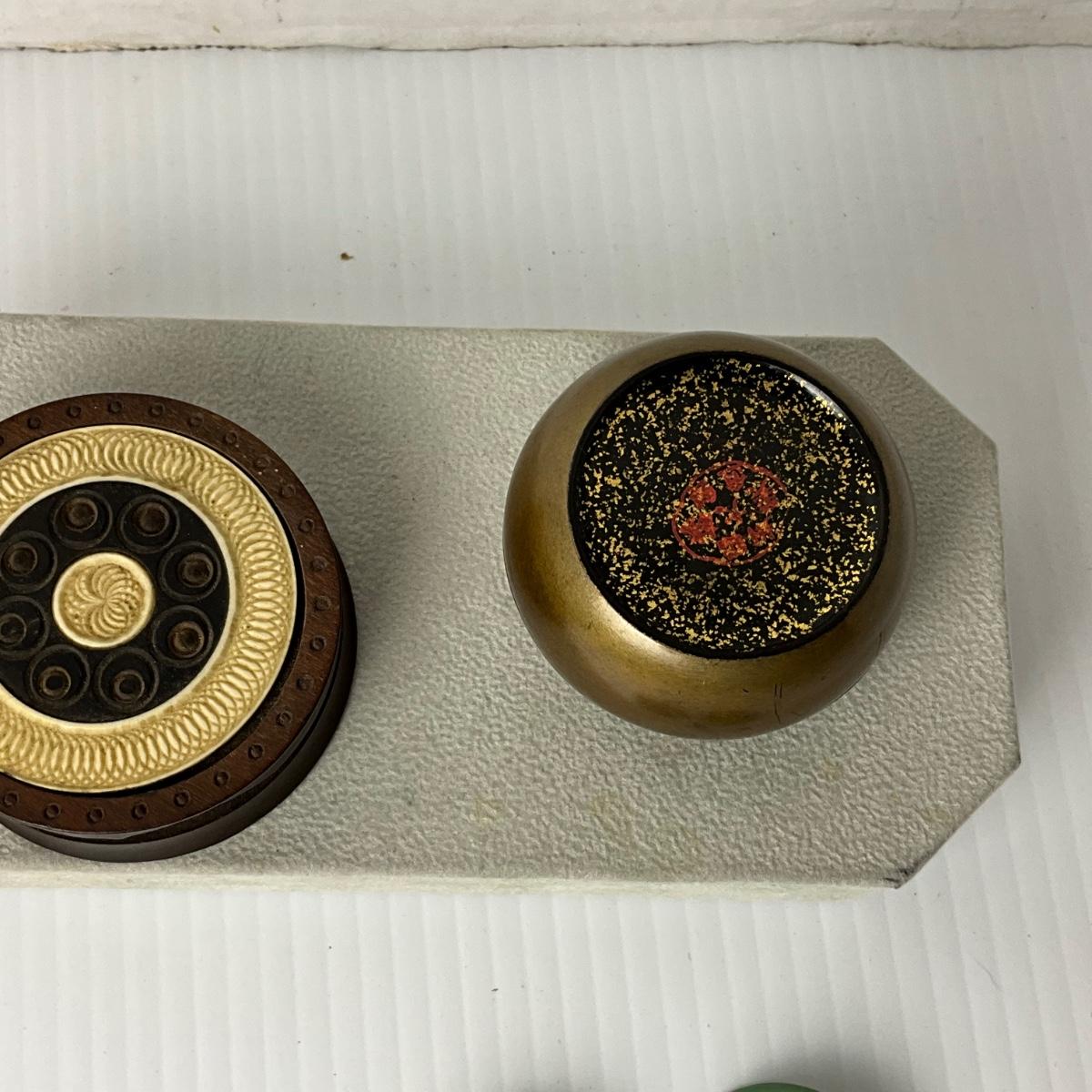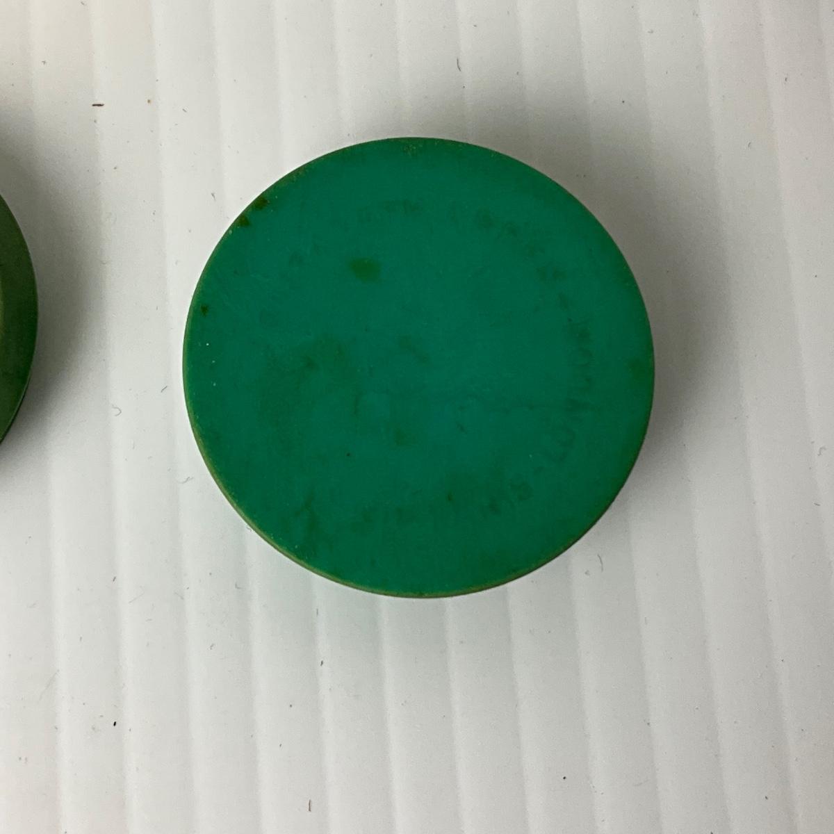 The plastic asian gold painted box measures 2.5" round and the green Elizabeth Arden box is a screw top and measures 1.5" round