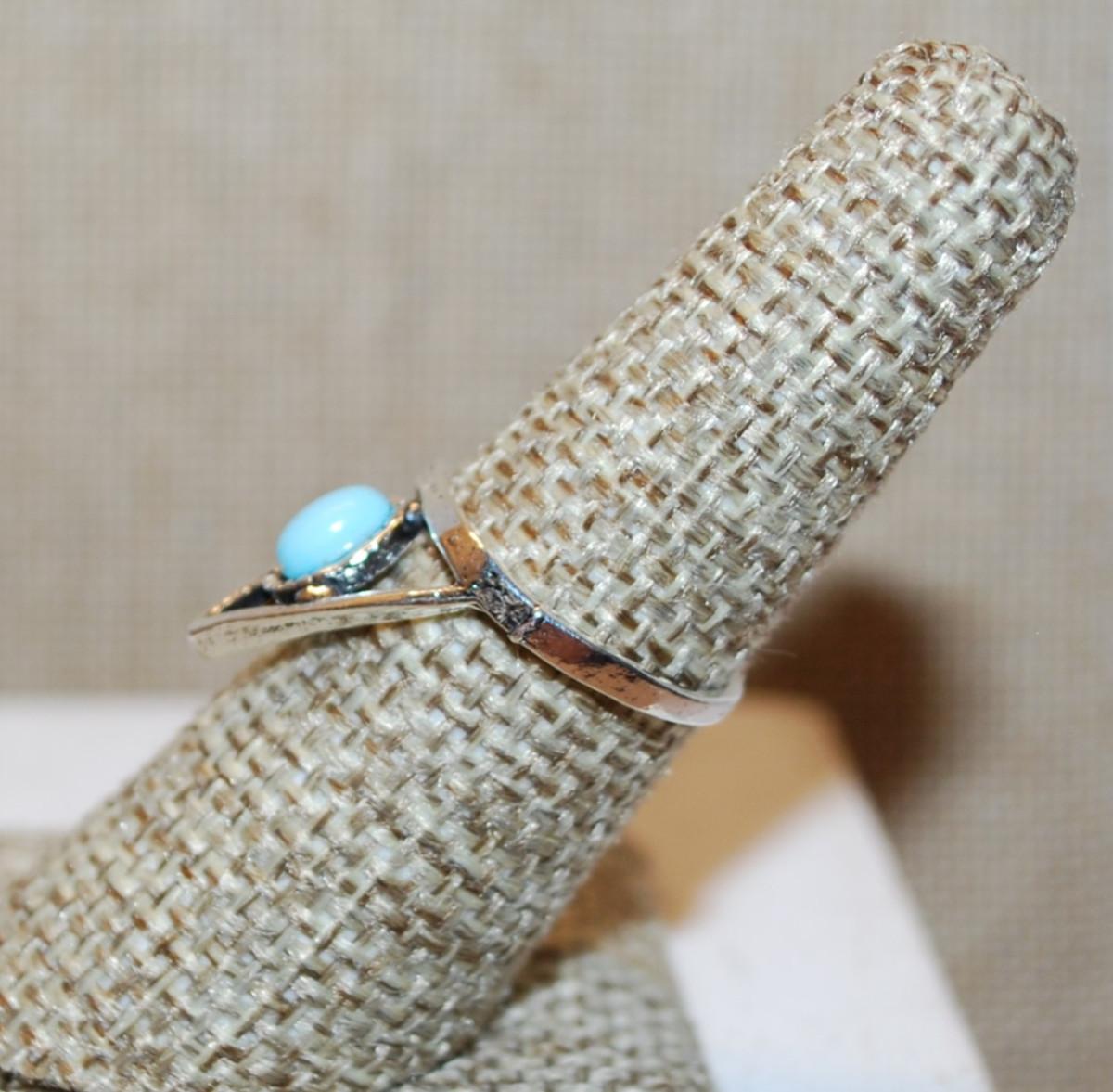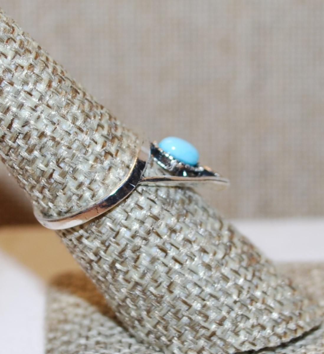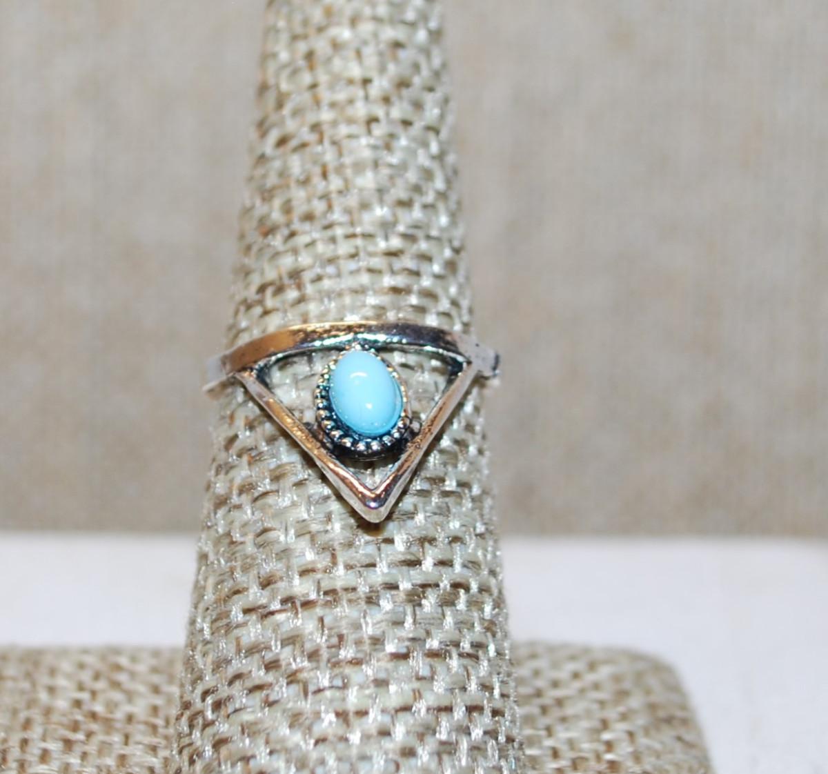 Size 6¾ Single Oval Turquoise Stone a Triangle Silver Tone Band (1.6g)