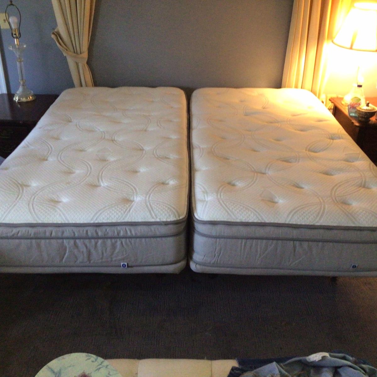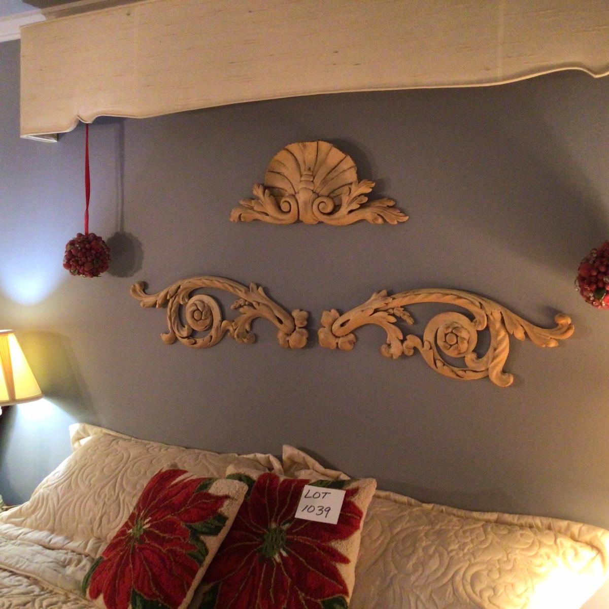There are 3 pieces of wall decor, there are some repairs on one of the pieces, used as a floating headboard for the sleep number king sized bed. Bed is 2 separate Twin beds together to form the king. Metal base, controllers and power cords are all included.