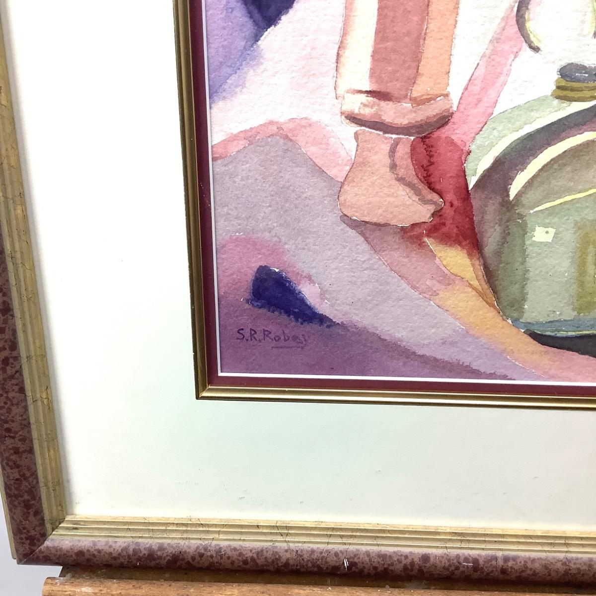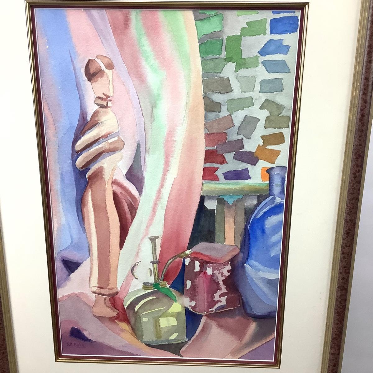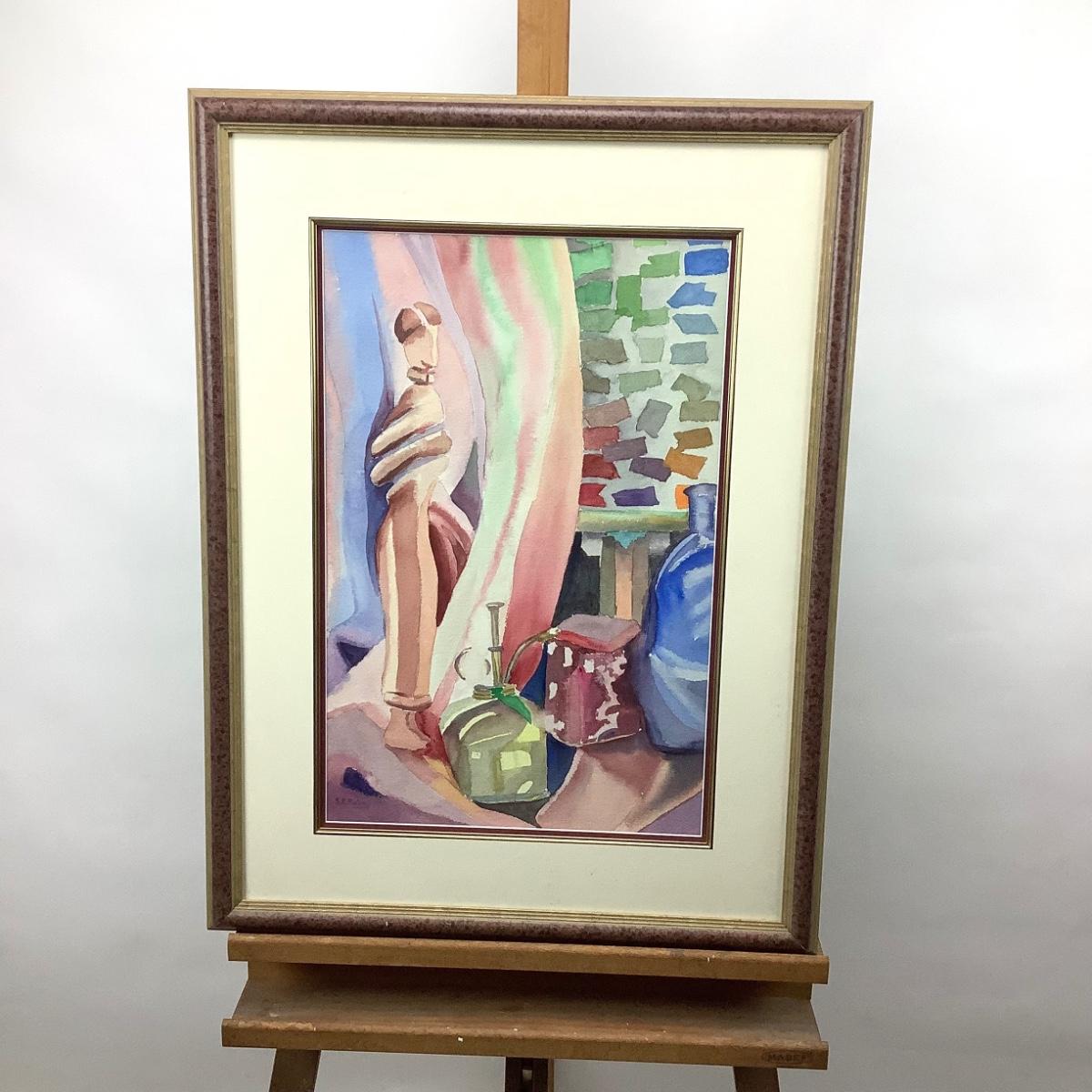 It is matted and framed, measures 30" high x 23" wide. Watercolor on paper.
