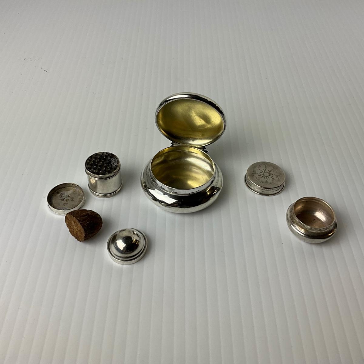 1043 Antique Sterling Silver Pill Boxes, Nutmeg Grinder