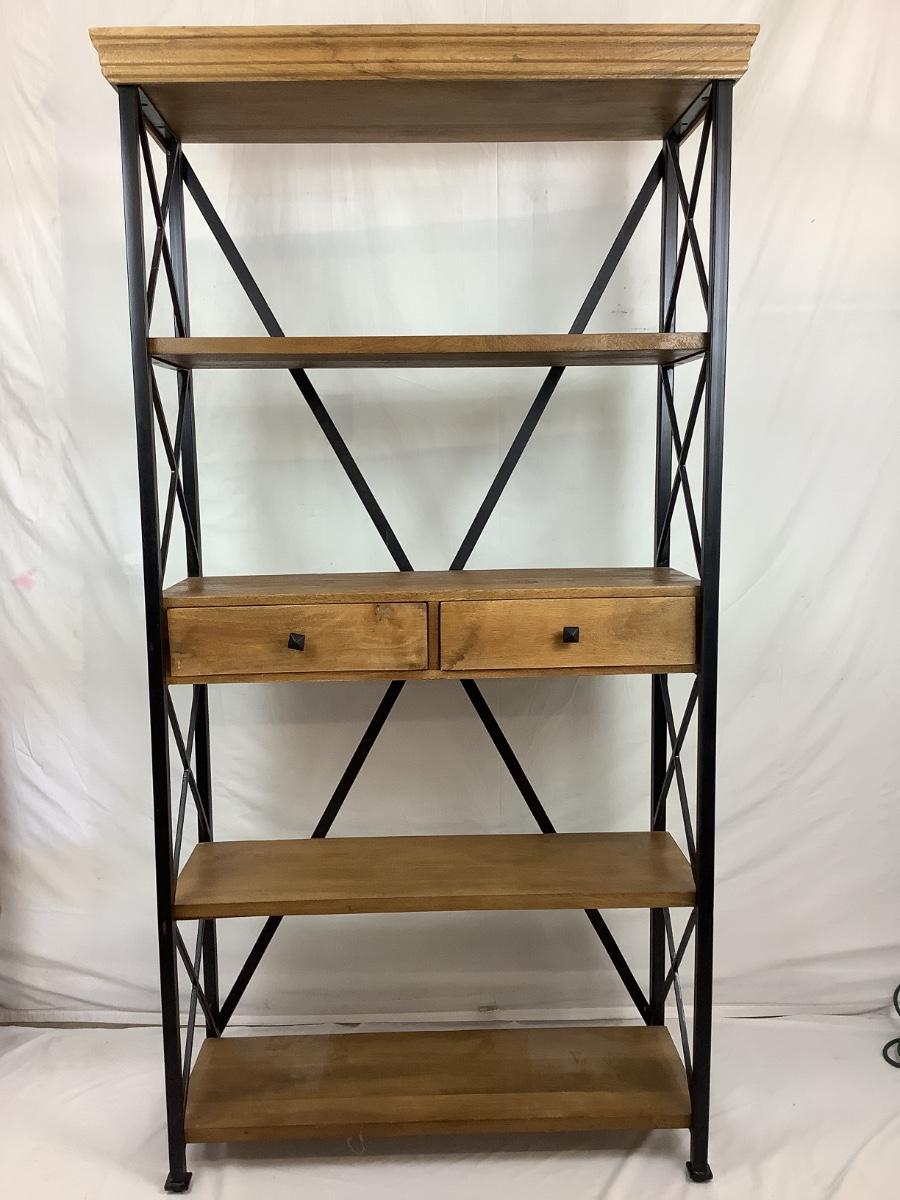Pier 1 Wood & Iron Weathered Metro Bookcase w/ 2 Drawers.