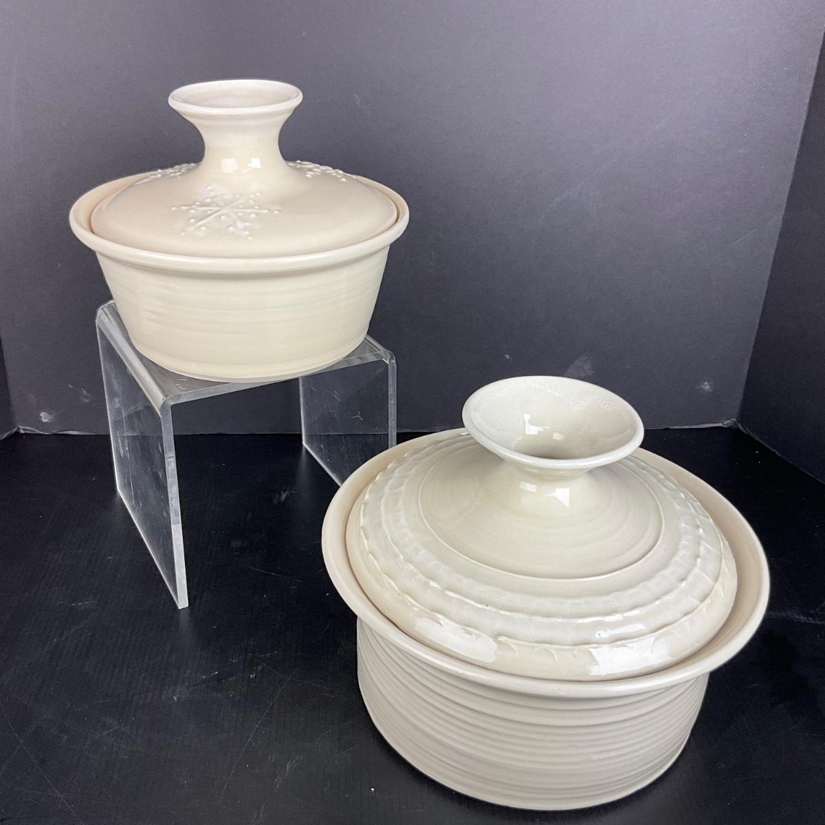 1044 Two Large Lidded Handmade Pottery Bowls by Virginia Perram
