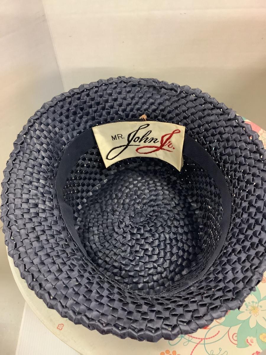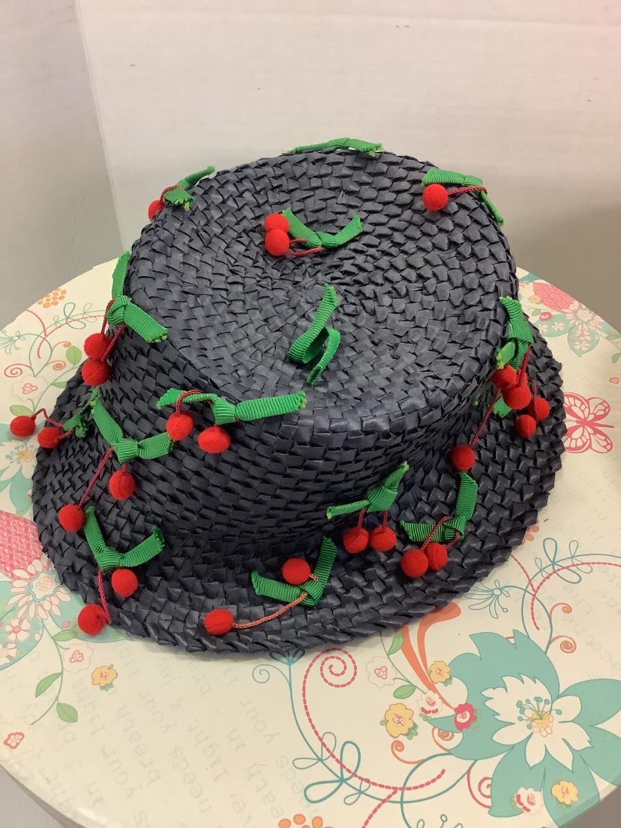 Dark blue woven woman's cherry hat by Mr. John Jr.