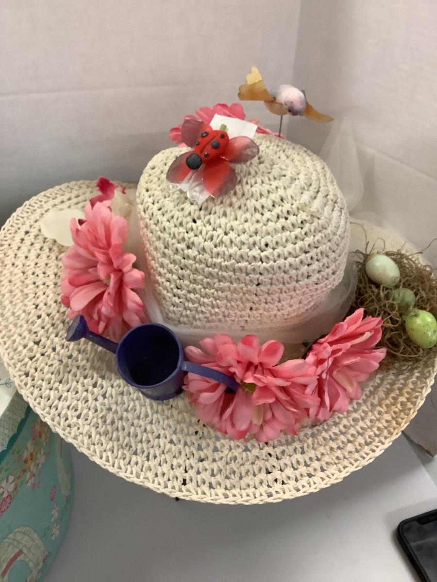 Easter Bonnet with birds, flowers & water pitcher by San N Sand