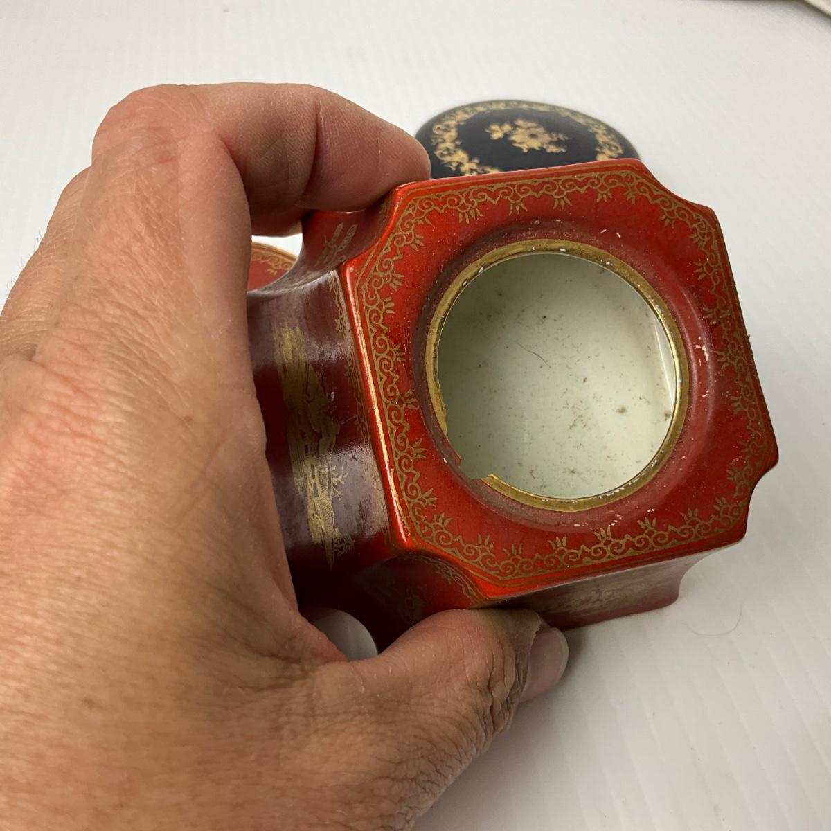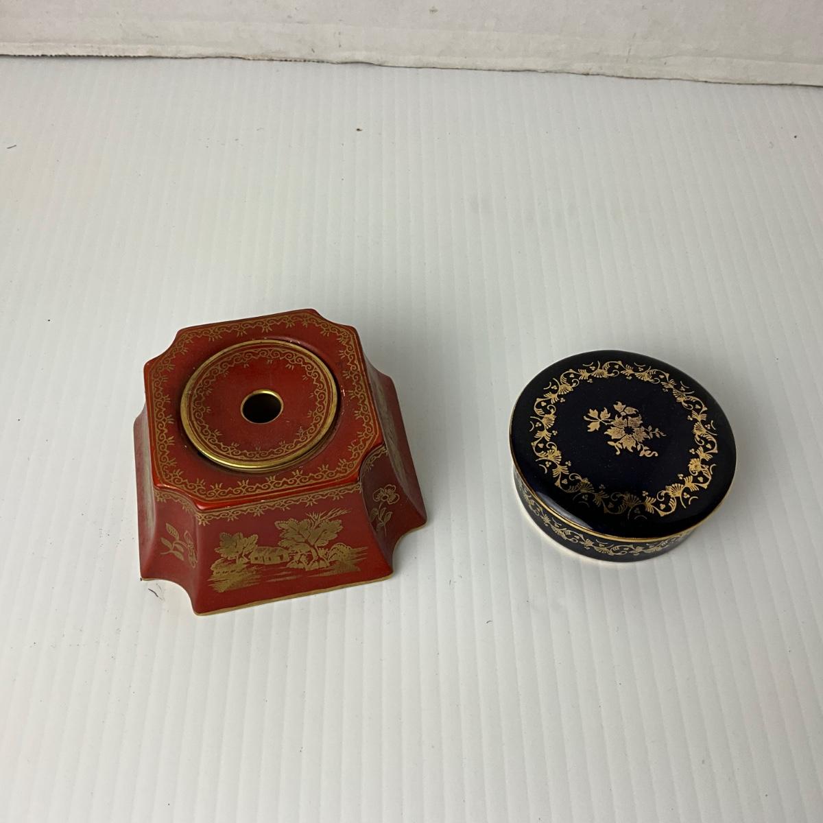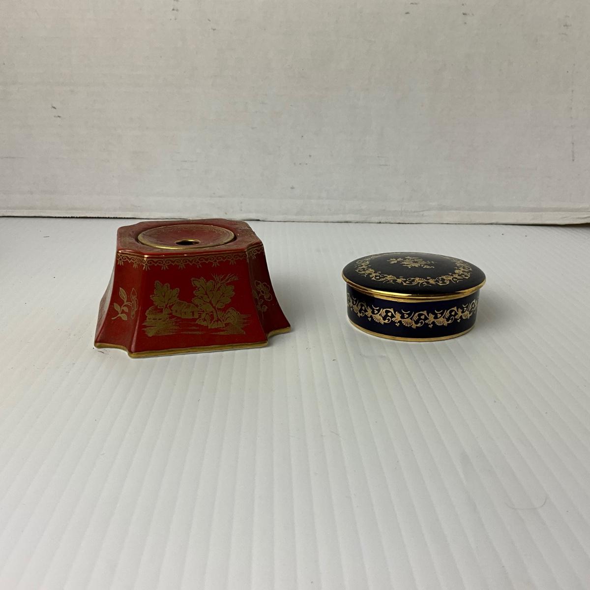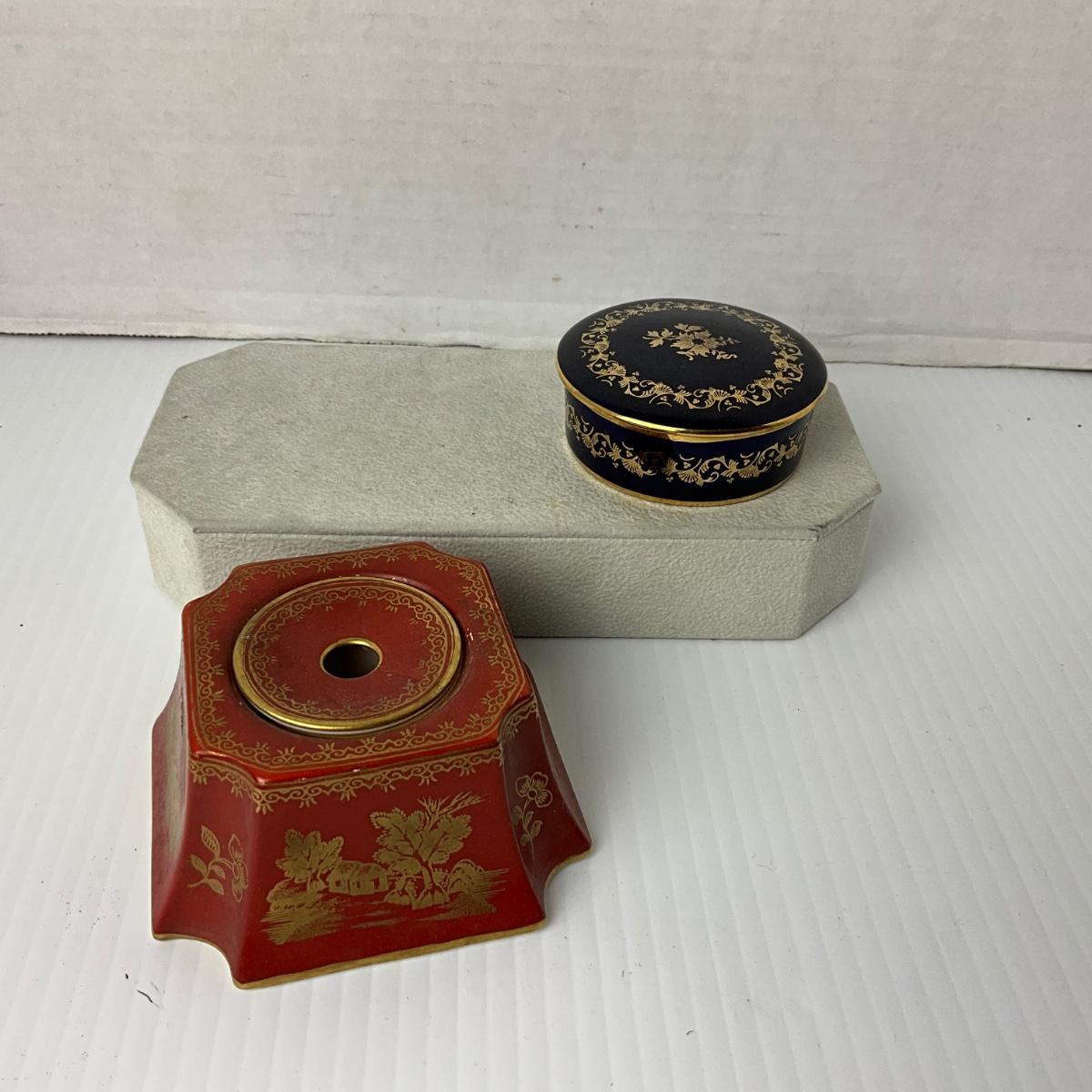 1049 Booth's Silicone China Ink Well & F.M. Limoge France Covered Box