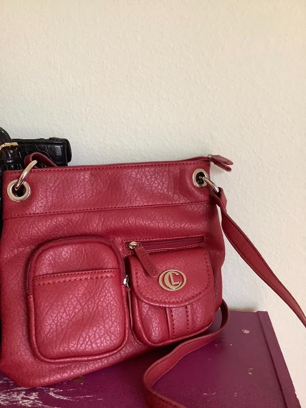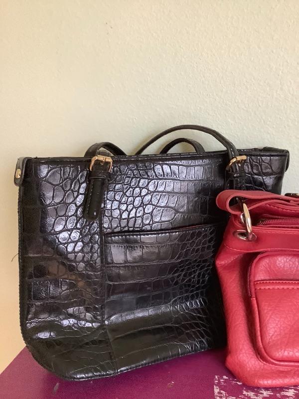 15 medium size purses. Name brands include Adela, Steve Madden, Rosetta, Lug, Minicci, Christian Louboutin.