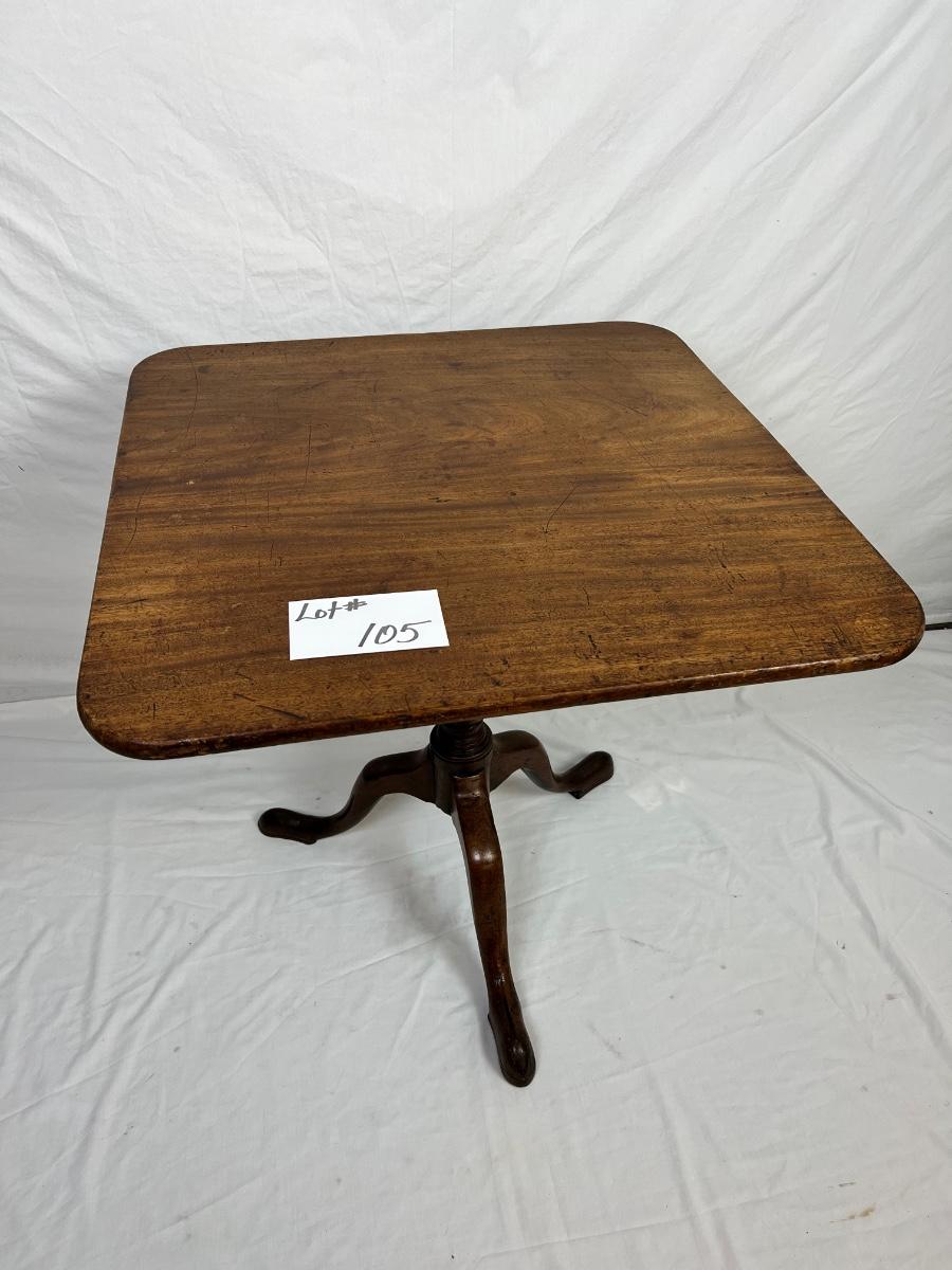 105 Antique 18th Century Mahogany Tilt Top Table with Snakehead Feet