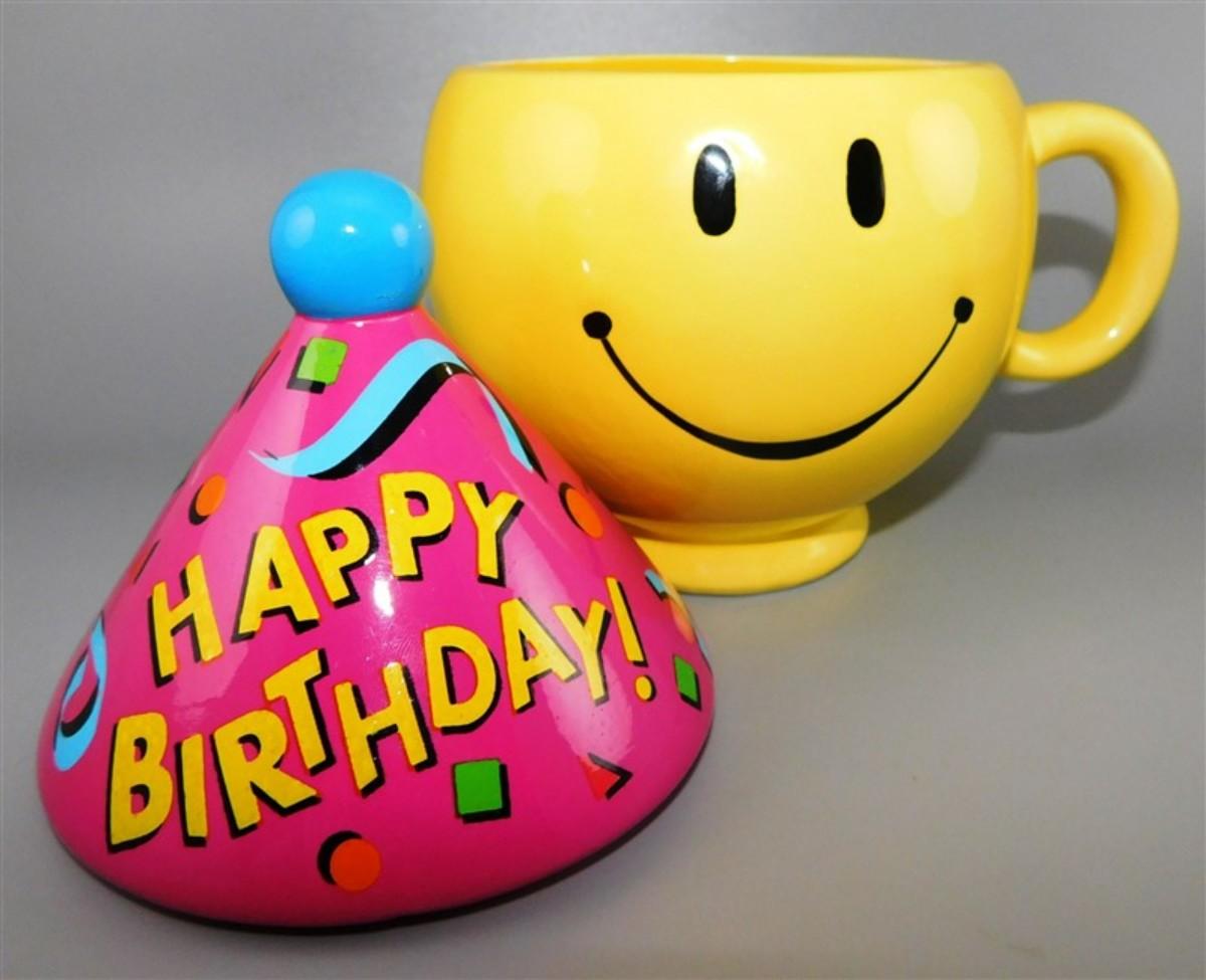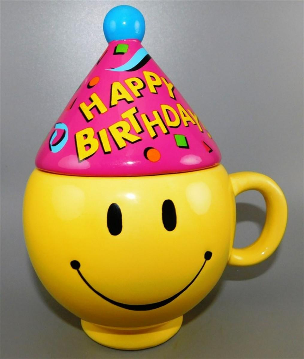 105 Happy Birthday Smiley Face Mug with Lid 8 in