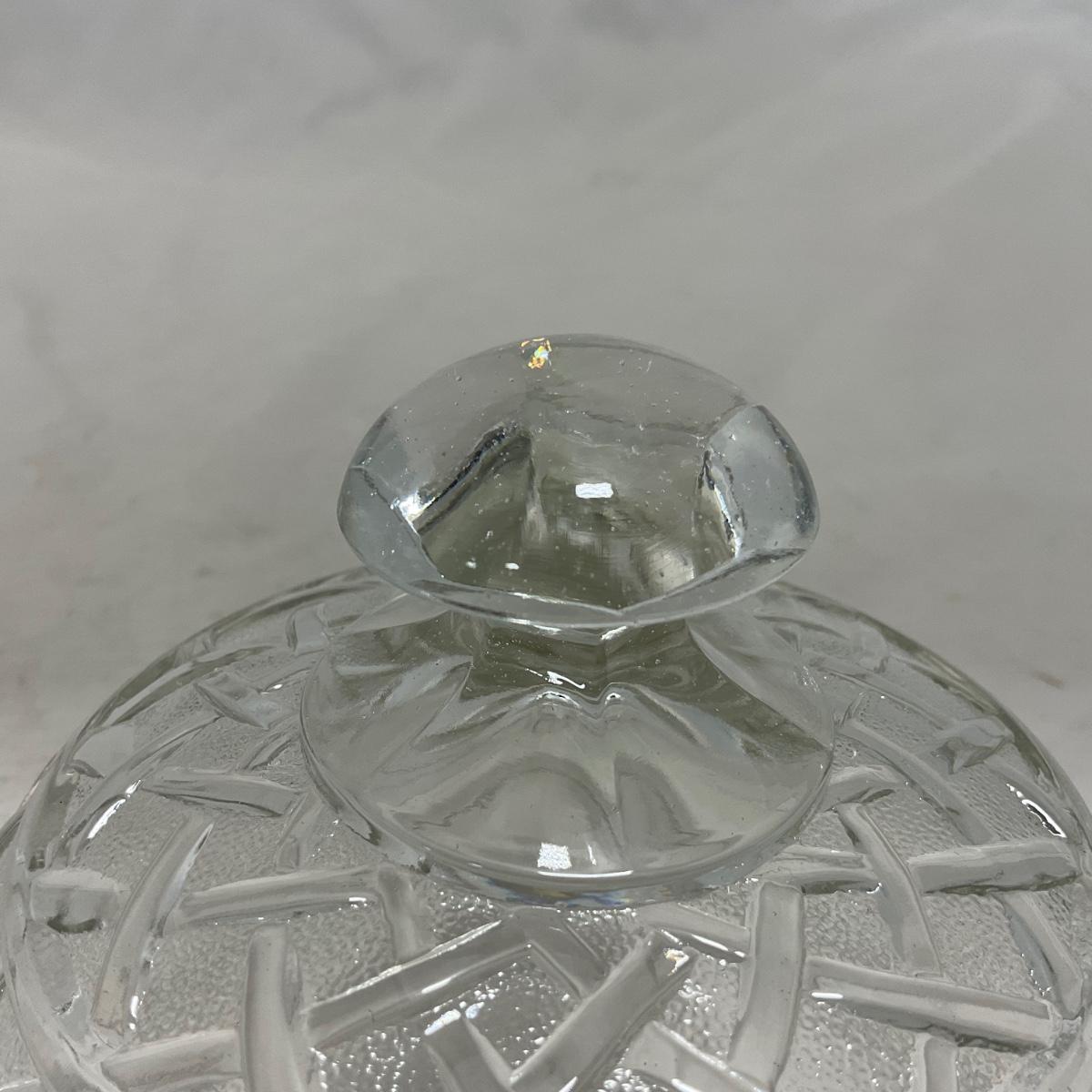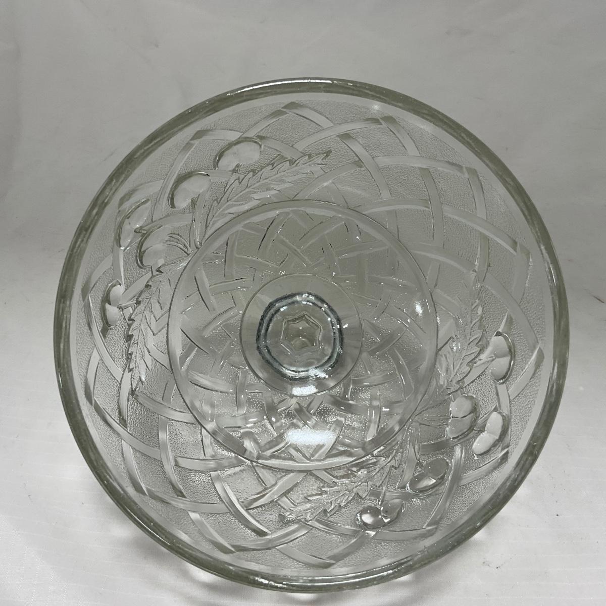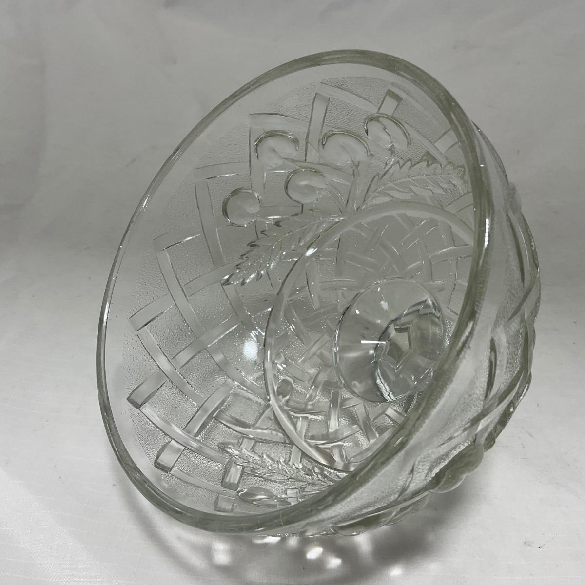 One heavy clear glass with cherries pattern covered butter dish. This heavy butter dish is well loves and does have a few marks and chips on the inside where the lid meets the base. Please see photos for details and condition. ::: Shipping is available on this lot. If you require shipping you must let us know at the close of the auction. We will coordinate with you after the item has been won. Shipping fees will include insurance up to or exceeding the value of all items being mailed. If you have any questions regarding this lot please contact the auctioneer either via this website, by direct email or by phone. PICK UP TIMES and other important information can be found in the TERMS and DESCRIPTION of the auction. Please take a look for pertinent information. Thanks!
