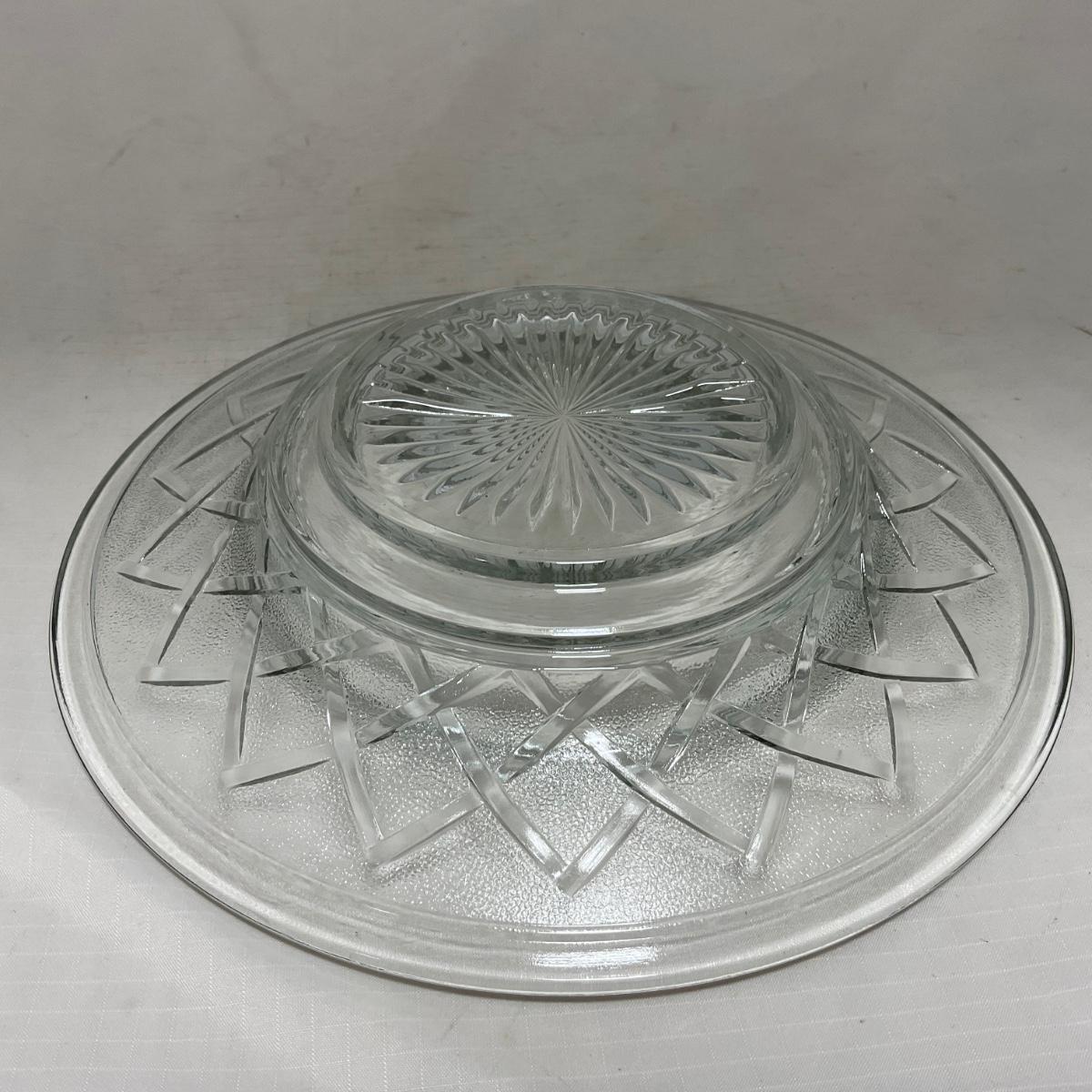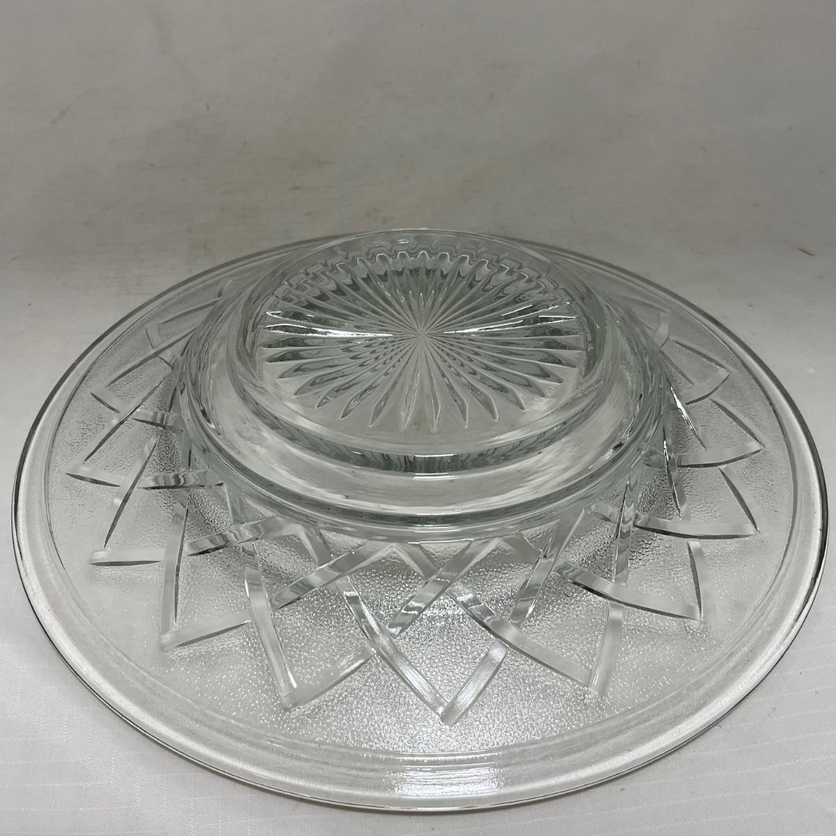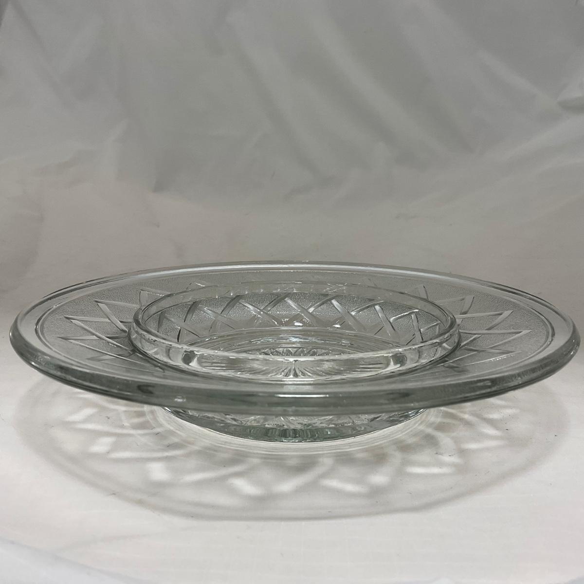 One heavy clear glass with cherries pattern covered butter dish. This heavy butter dish is well loves and does have a few marks and chips on the inside where the lid meets the base. Please see photos for details and condition. ::: Shipping is available on this lot. If you require shipping you must let us know at the close of the auction. We will coordinate with you after the item has been won. Shipping fees will include insurance up to or exceeding the value of all items being mailed. If you have any questions regarding this lot please contact the auctioneer either via this website, by direct email or by phone. PICK UP TIMES and other important information can be found in the TERMS and DESCRIPTION of the auction. Please take a look for pertinent information. Thanks!