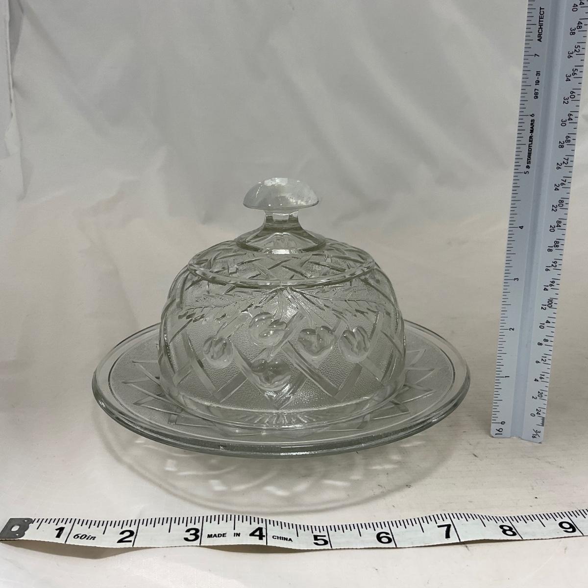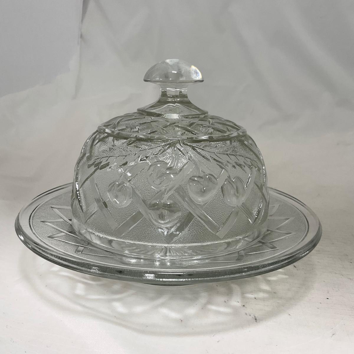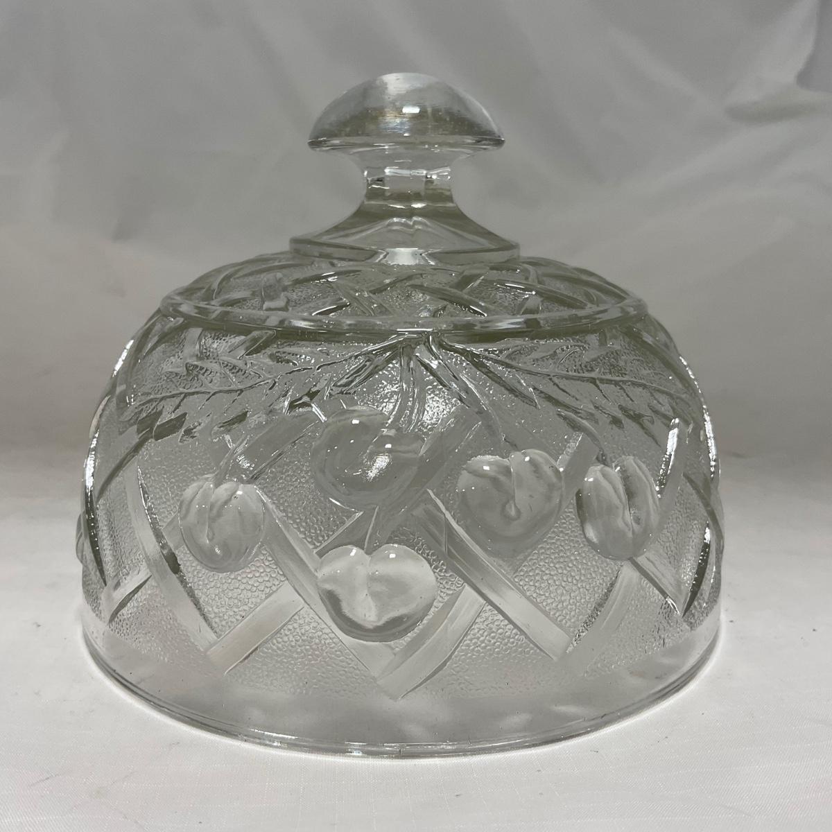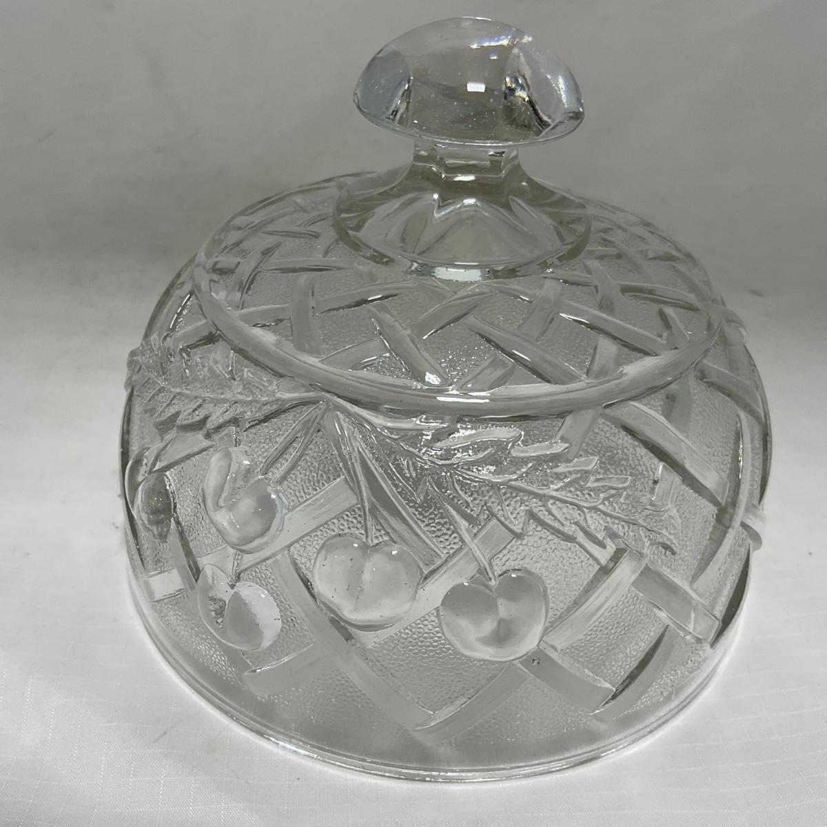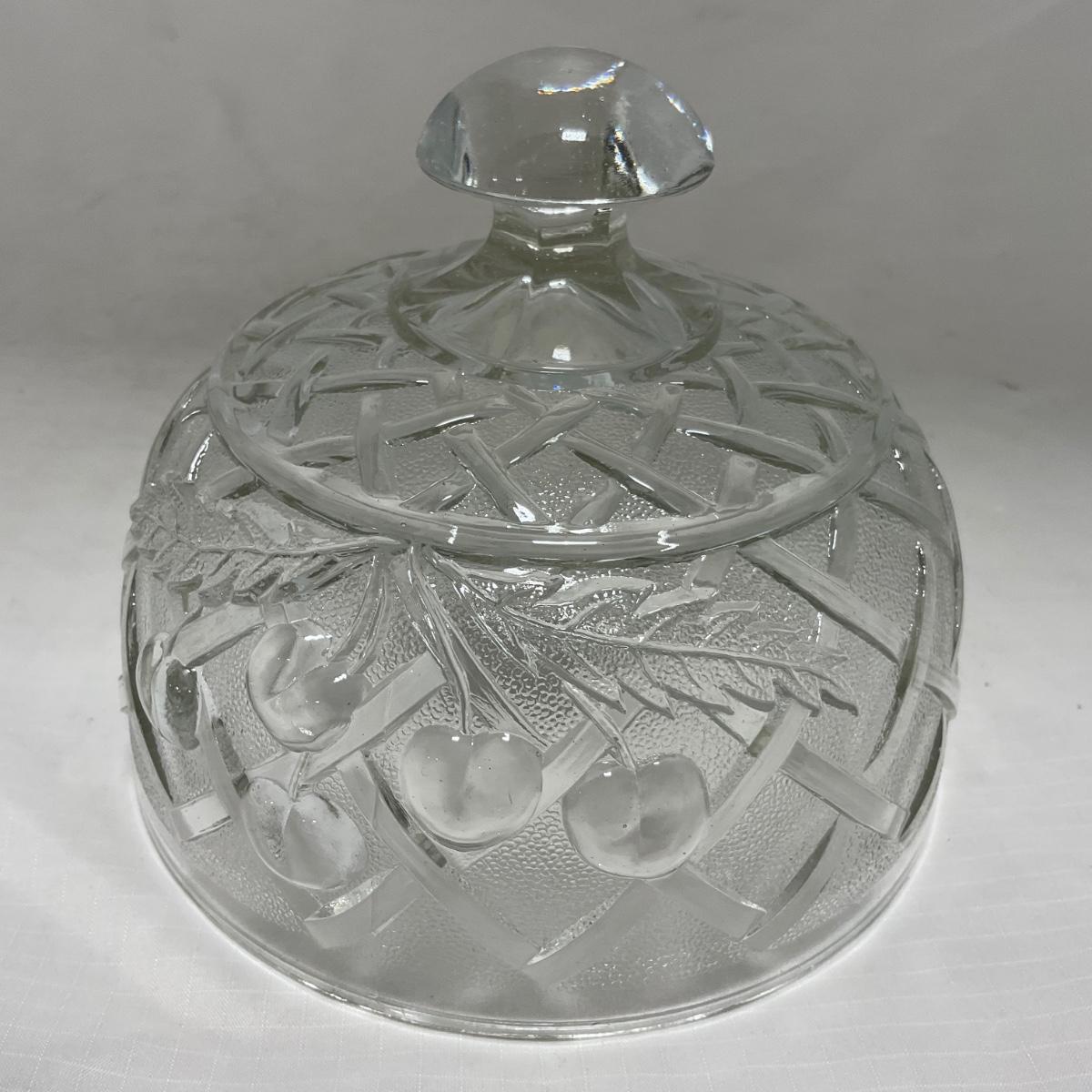 -105- Heavy Clear Glass | Cherries Pattern | Covered Butter Dish