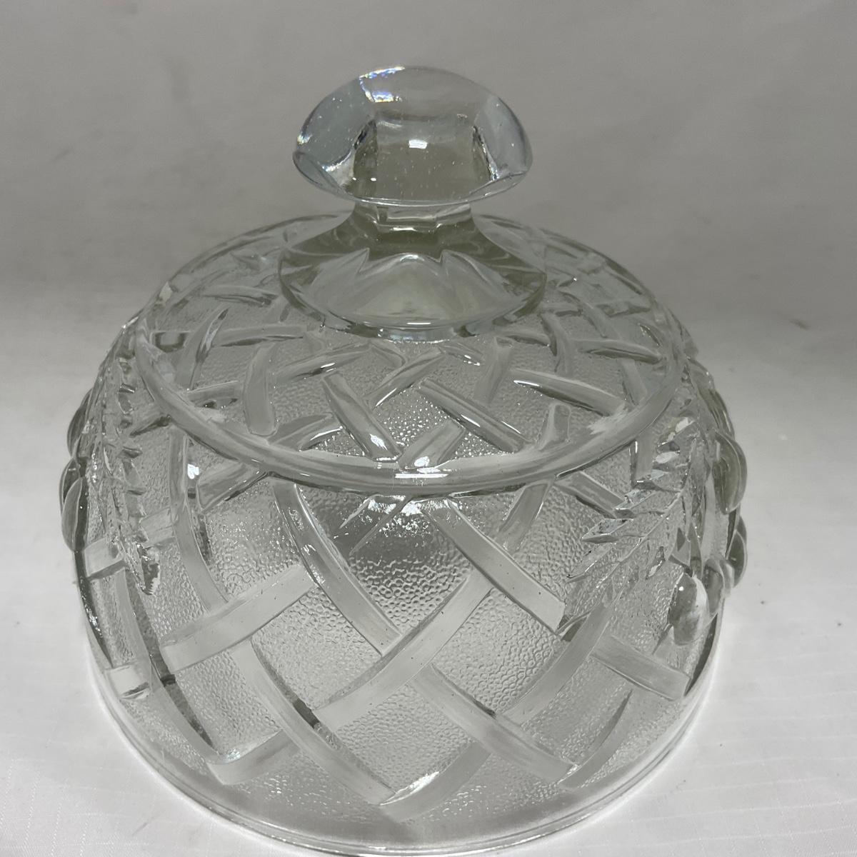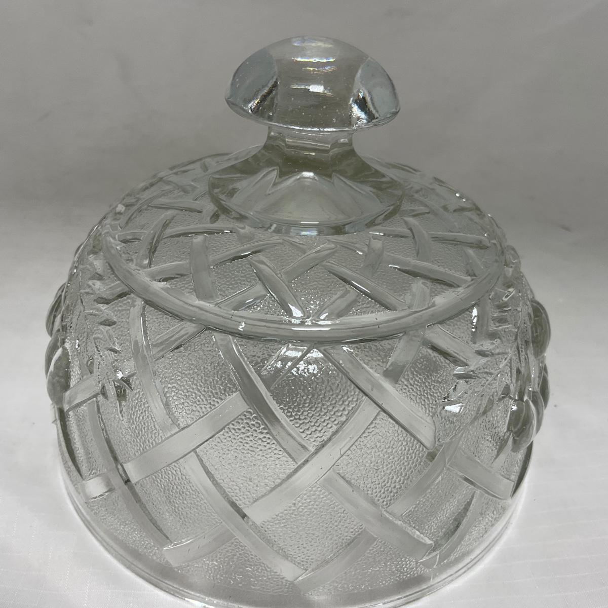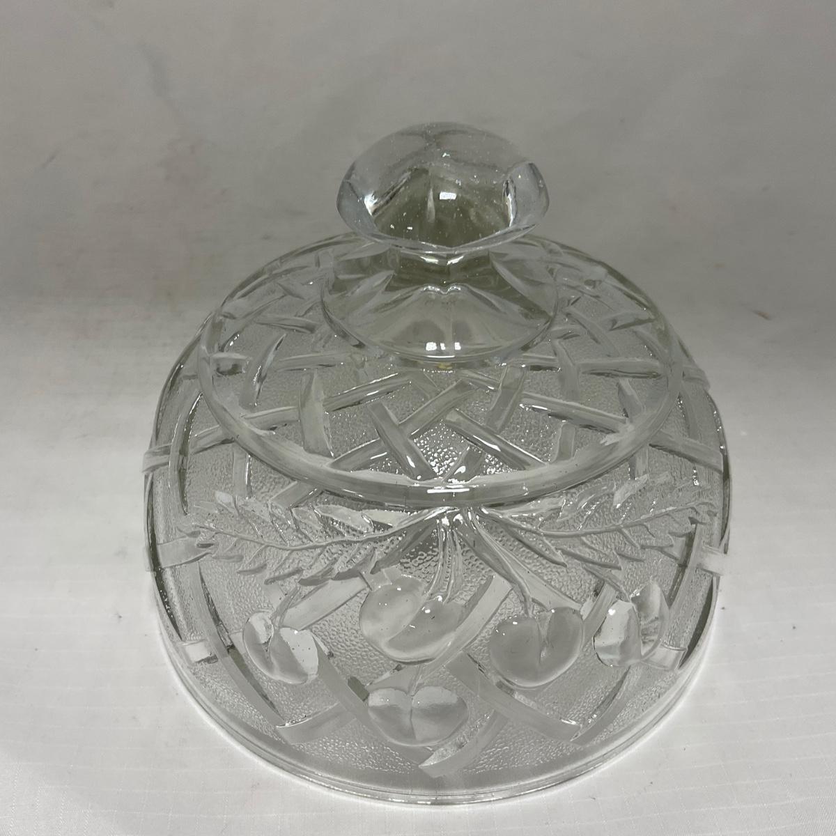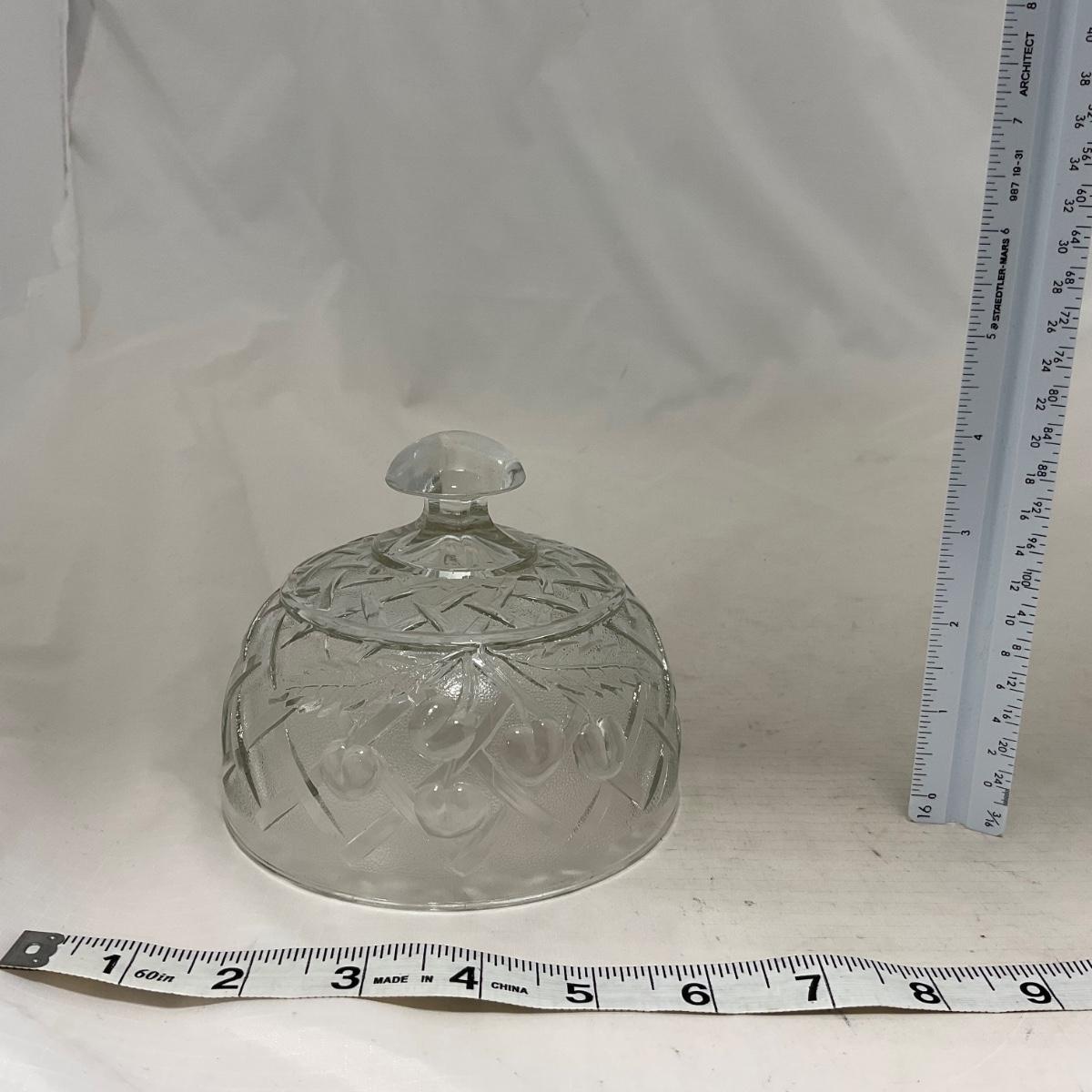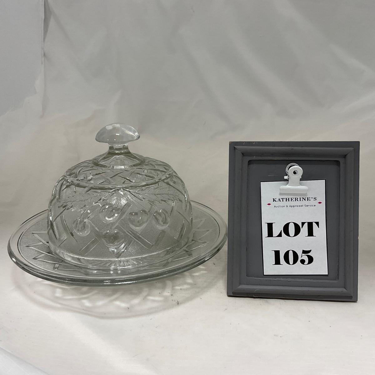 -105- Heavy Clear Glass | Cherries Pattern | Covered Butter Dish