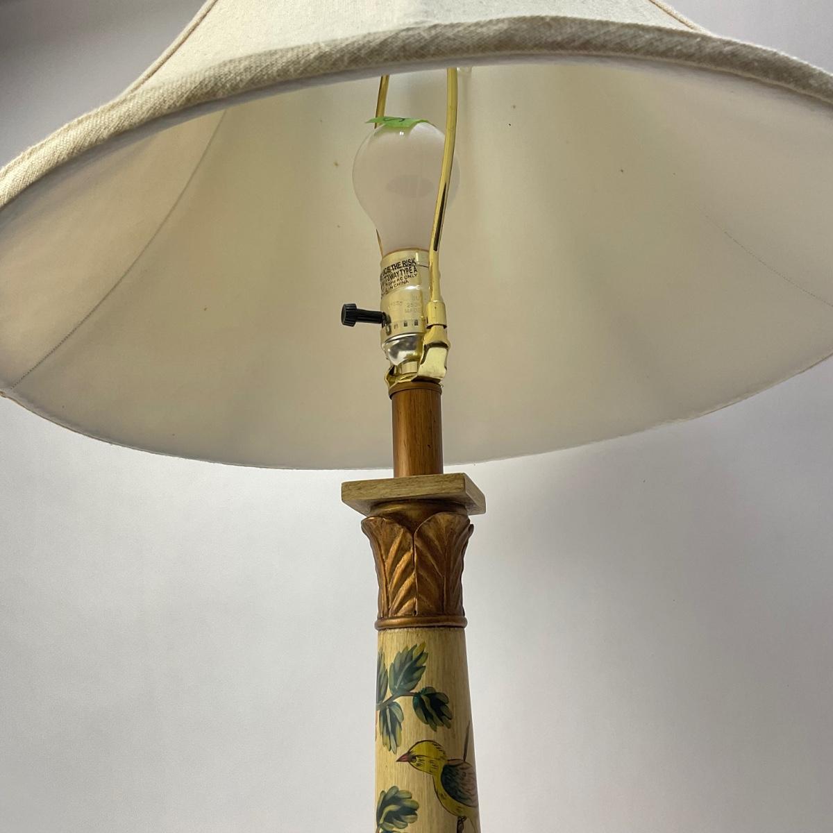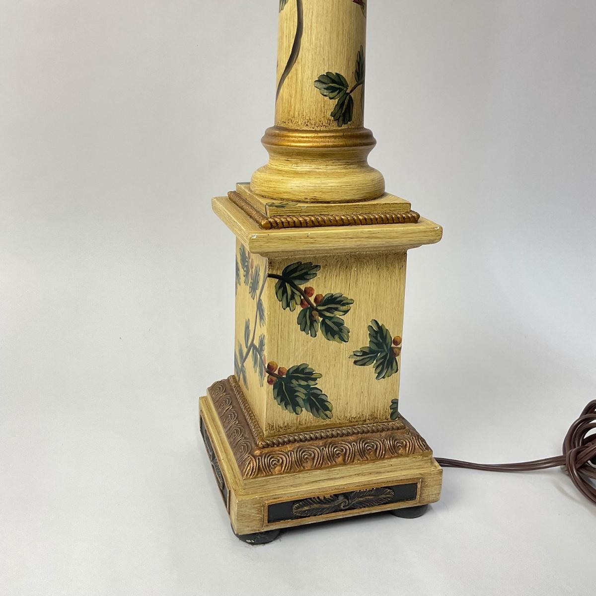 006 Ivory-Painted Wooden Lamp With A Green Vine Design
