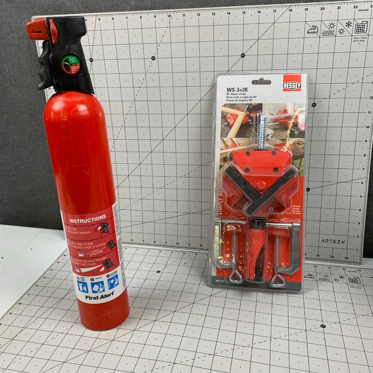 #105 New 90 Degree Angle Clamp & Fire Extinguisher