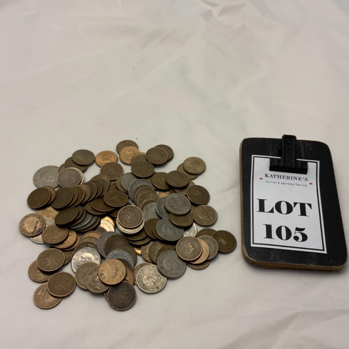 Over One Pound of Taiwanese and Chinese Coins from the 70s and 80s. Various circulated conditions. Please see photos for details and condition. ::: Shipping is available on this lot. If you require shipping you must let us know at the close of the auction. We will coordinate with you after the item has been won. Shipping fees will include insurance up to or exceeding the value of all items being mailed. If you have any questions regarding this lot please contact the auctioneer either via this website, by direct email or by phone. PICK UP TIMES and other important information can be found in the TERMS and DESCRIPTION of the auction. Please take a look for pertinent information. Thanks!