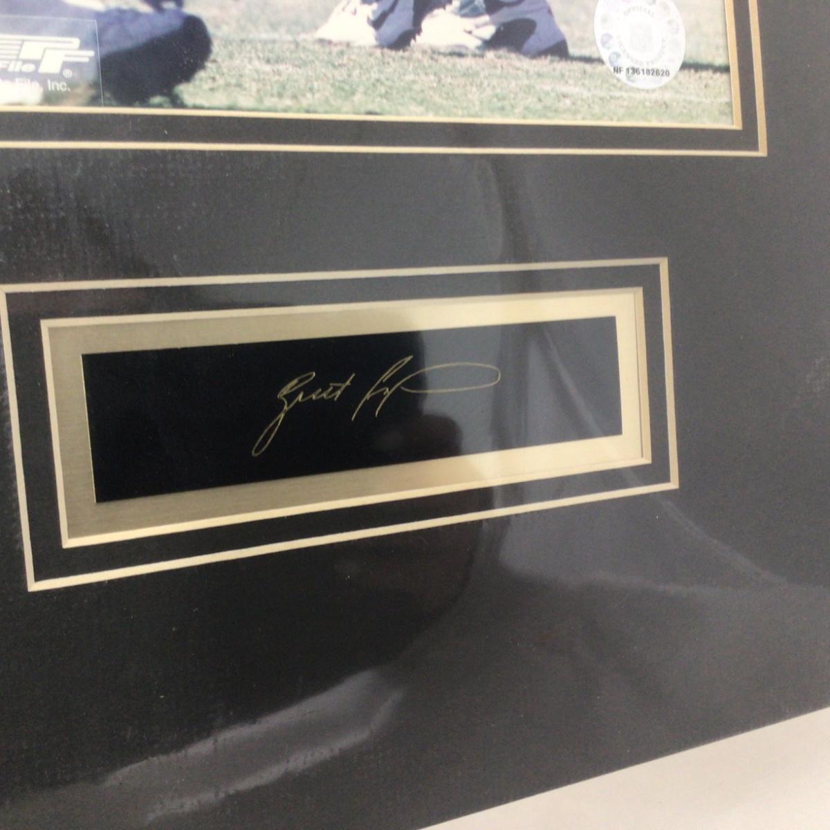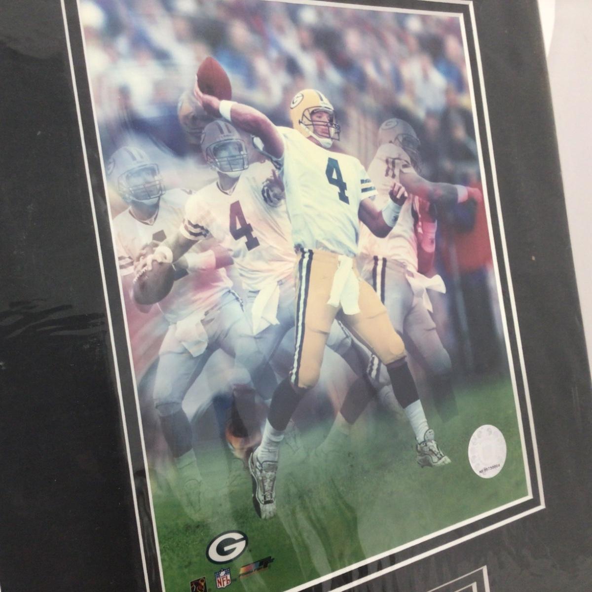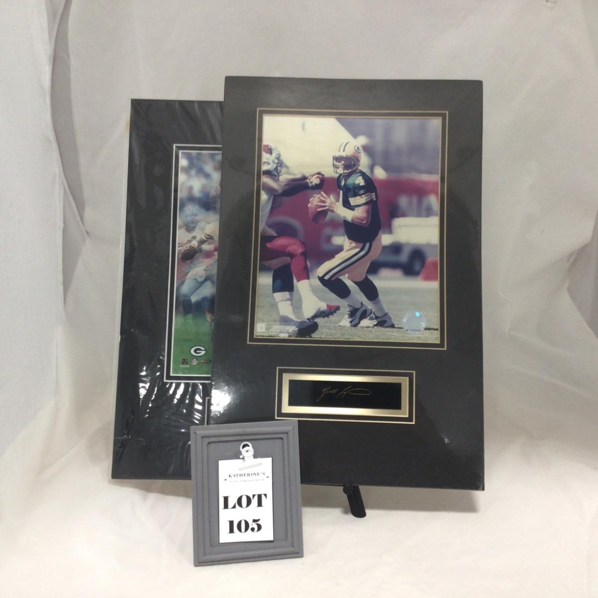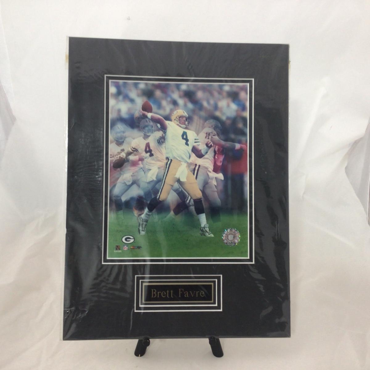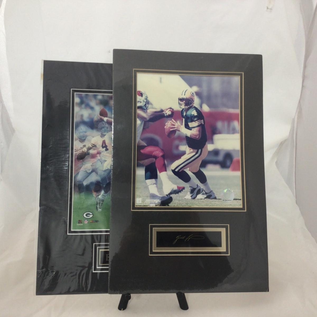 Two matted Brett Favre prints with engraved nameplates. One 11 inches by 17 inches. One 12 inches by 16 inches. Please see photos for details and condition. ::: Shipping is available on this lot. If you require shipping you must let us know at the close of the auction. We will coordinate with you after the item has been won. Shipping fees will include insurance up to or exceeding the value of all items being mailed. If you have any questions regarding this lot please contact the auctioneer either via this website, by direct email or by phone. PICK UP TIMES and other important information can be found in the TERMS and DESCRIPTION of the auction. Please take a look for pertinent information. Thanks!