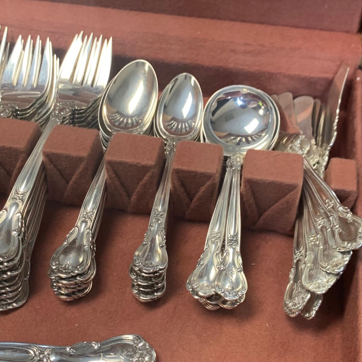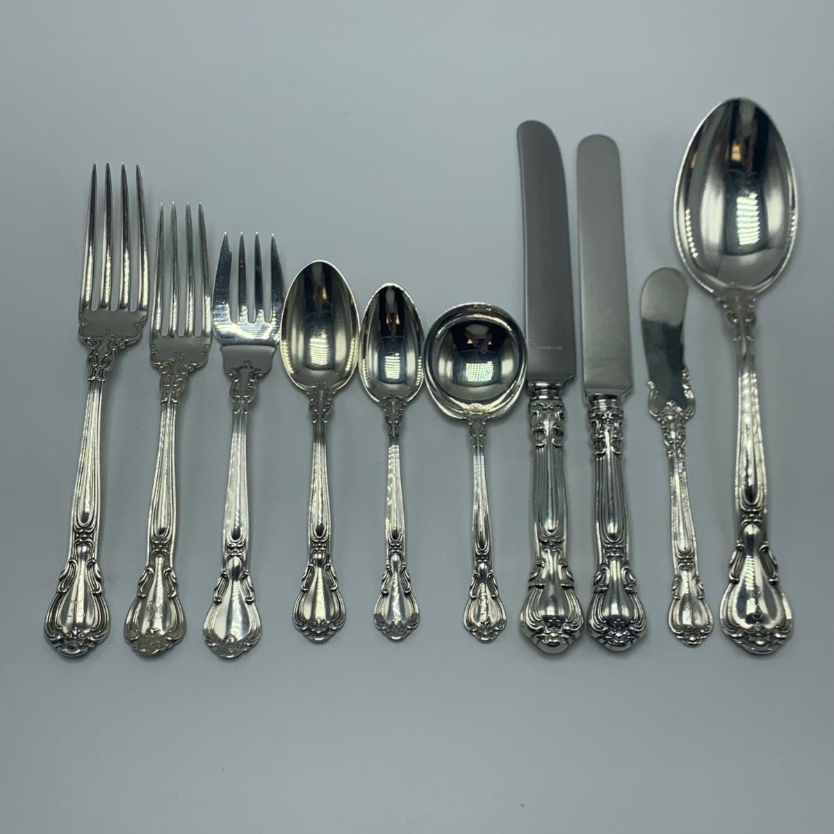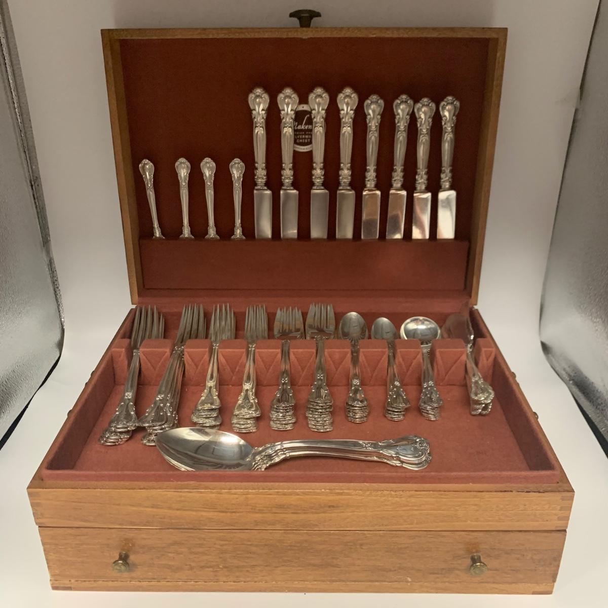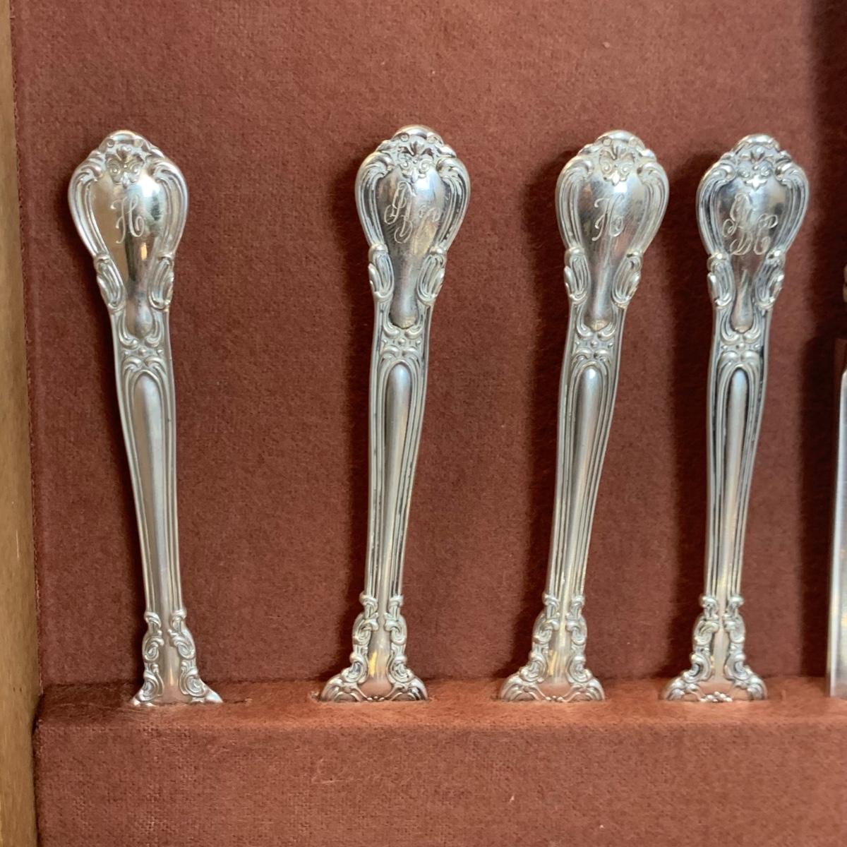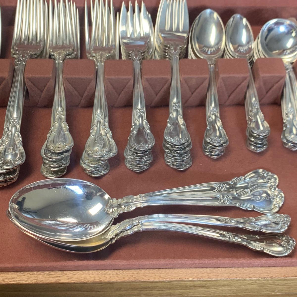 105 Piece Gorham Chantilly Sterling Silver Flatware Set in Naken’s Silverware Chest (SS-HS)