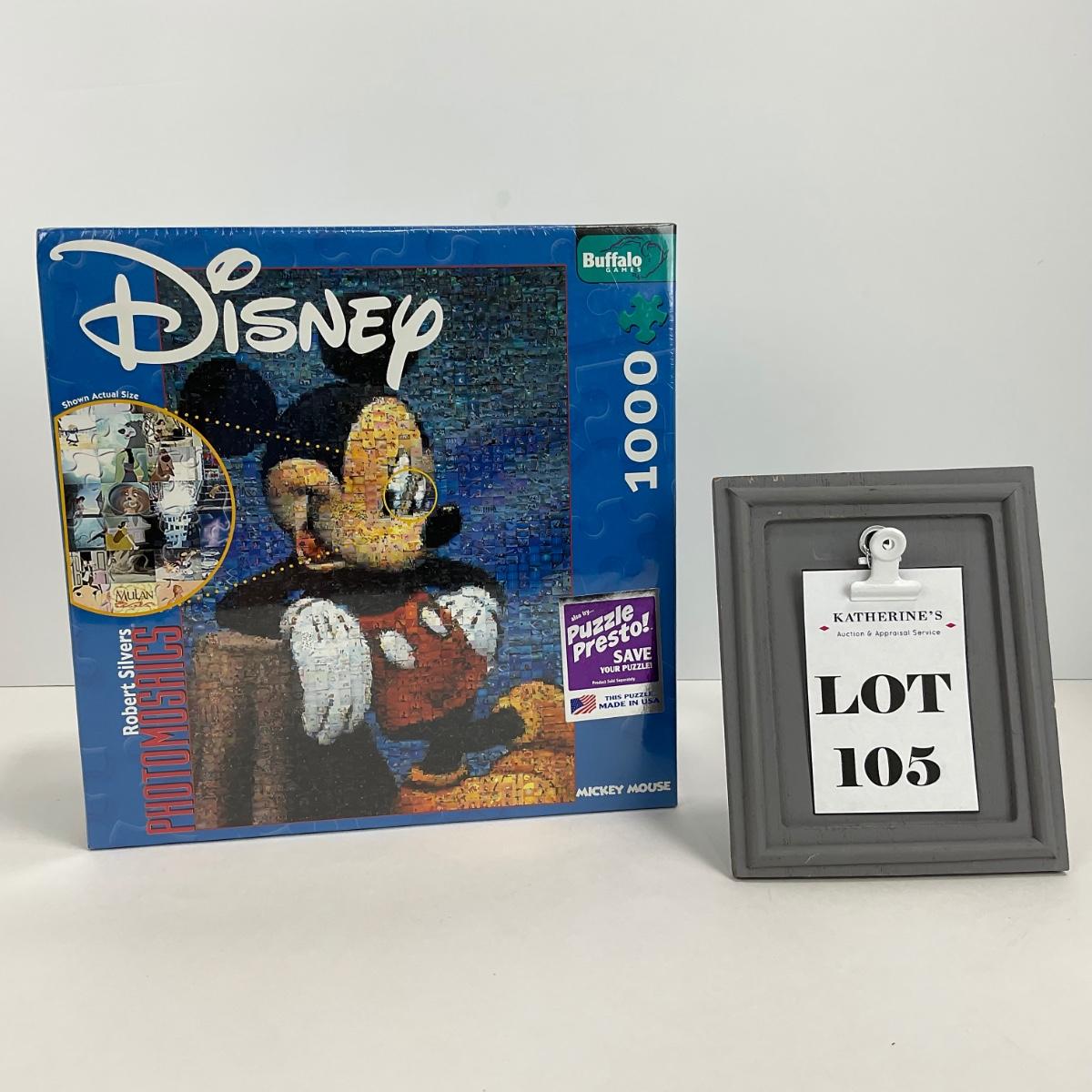 One 1000 piece Disney Mickey Mouse sealed puzzle. Please see photos for details and condition. Any condition statement is given as a courtesy to a client, is an opinion, and should not be treated as a statement of fact. Reference to condition written, oral or within a condition report shall not be regarded as a full account of condition and may not include all defects, alterations, or restorations. Absence of a condition report does not imply a lot is flawless or lacking imperfections or damage. Katherine’s Auction & Appraisal Service shall have no responsibility for any error or omission. Returns shall not be accepted on the basis of condition. ::: Shipping is available on this lot. If you require shipping you must let us know at the close of the auction. We will coordinate with you after the item has been won. Shipping fees will include insurance up to or exceeding the value of all items being mailed. If you have any questions regarding this lot please contact the auctioneer either via this website, by direct email or by phone. PICK UP TIMES and other important information can be found in the TERMS and DESCRIPTION of the auction. Please take a look for pertinent information. Thanks!