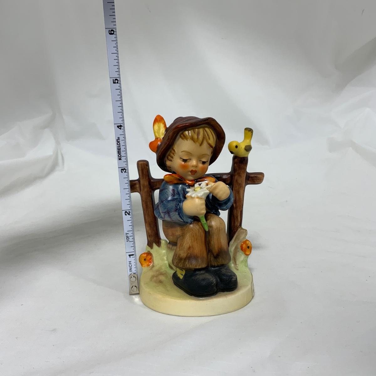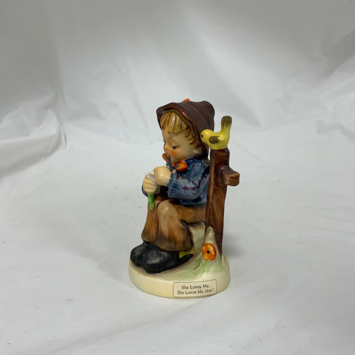Who couldn’t love this sweet little boy? She Loves Me, She Loves Me Not! Hum 174. TMK-4. Please see photos for details and condition. Crazing noted. ::: Shipping is available on this lot. If you require shipping you must let us know at the close of the auction. We will coordinate with you after the item has been won. Shipping fees will include insurance up to or exceeding the value of all items being mailed. If you have any questions regarding this lot please contact the auctioneer either via this website, by direct email or by phone. PICK UP TIMES and other important information can be found in the TERMS and DESCRIPTION of the auction. Please take a look for pertinent information. Thanks!