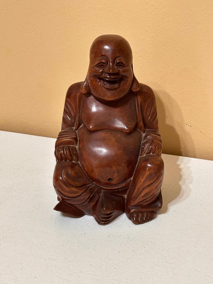 10.5” Solid Wood Laughing Buddha