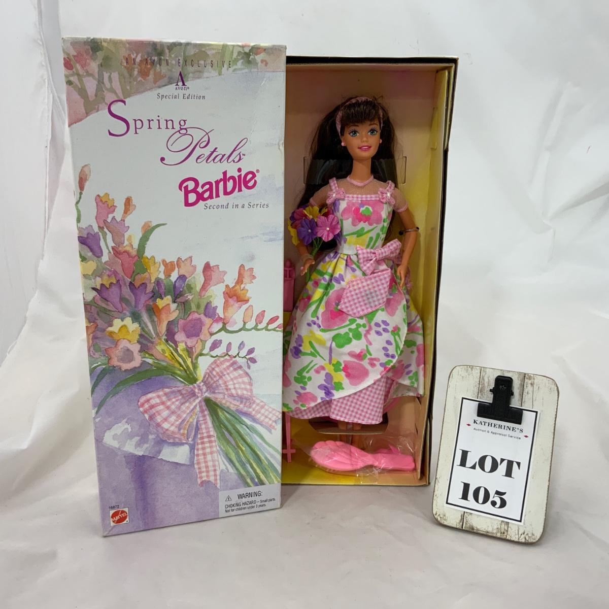 Spring Petals Barbie, produced in 1996 by Mattel for Avon. She’s a cutie! Please see photos for details and condition. !!! Proceeds from this auction will be donated to the NEW COMMUNITY SHELTER in Green Bay, Wisconsin. Please see Sale Description to the Left for more information. !!! ::: Shipping is available on this lot. If you require shipping you must let us know at the close of the auction. We will coordinate with you after the item has been won. Shipping fees will include insurance up to or exceeding the value of all items being mailed. If you have any questions regarding this lot please contact the auctioneer either via this website, by direct email or by phone. PICK UP TIMES and other important information can be found in the TERMS and DESCRIPTION of the auction. Please take a look for pertinent information. Thanks!