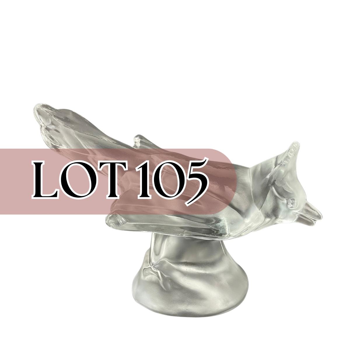 One Virgina B. Evans satin Cathay art glass bird figure. This piece does appear to have a large chip in the wing of the bird. Please see photos for details and condition. Any condition statement is given as a courtesy to a client, is an opinion, and should not be treated as a statement of fact. Reference to condition written, oral or within a condition report shall not be regarded as a full account of condition and may not include all defects, alterations, or restorations. Absence of a condition report does not imply a lot is flawless or lacking imperfections or damage. Katherine’s Auction & Appraisal Service shall have no responsibility for any error or omission. Returns shall not be accepted on the basis of condition. ::: Shipping is available on this lot. If you require shipping you must let us know at the close of the auction. We will coordinate with you after the item has been won. Shipping fees will include insurance up to or exceeding the value of all items being mailed. If you have any questions regarding this lot please contact the auctioneer either via this website, by direct email or by phone. PICK UP TIMES and other important information can be found in the TERMS and DESCRIPTION of the auction. Please take a look for pertinent information. Thanks!