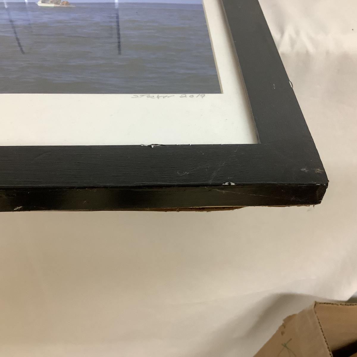 The photo is framed, signed Stocker and dated 2019. The frame has some slight wear, measures 22"w x 18"h.