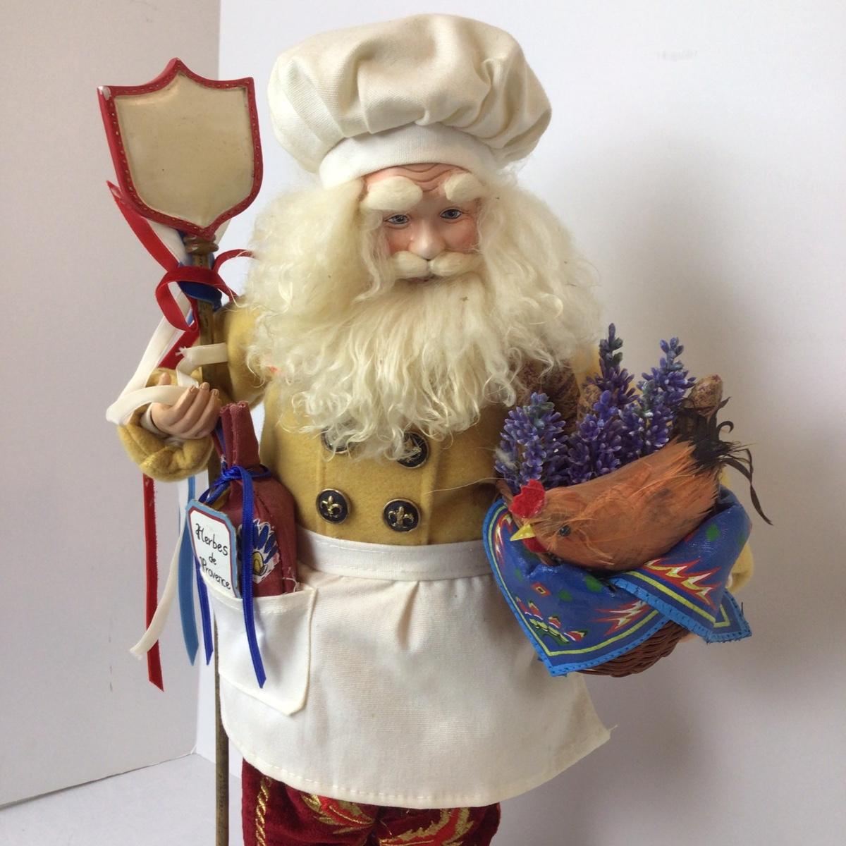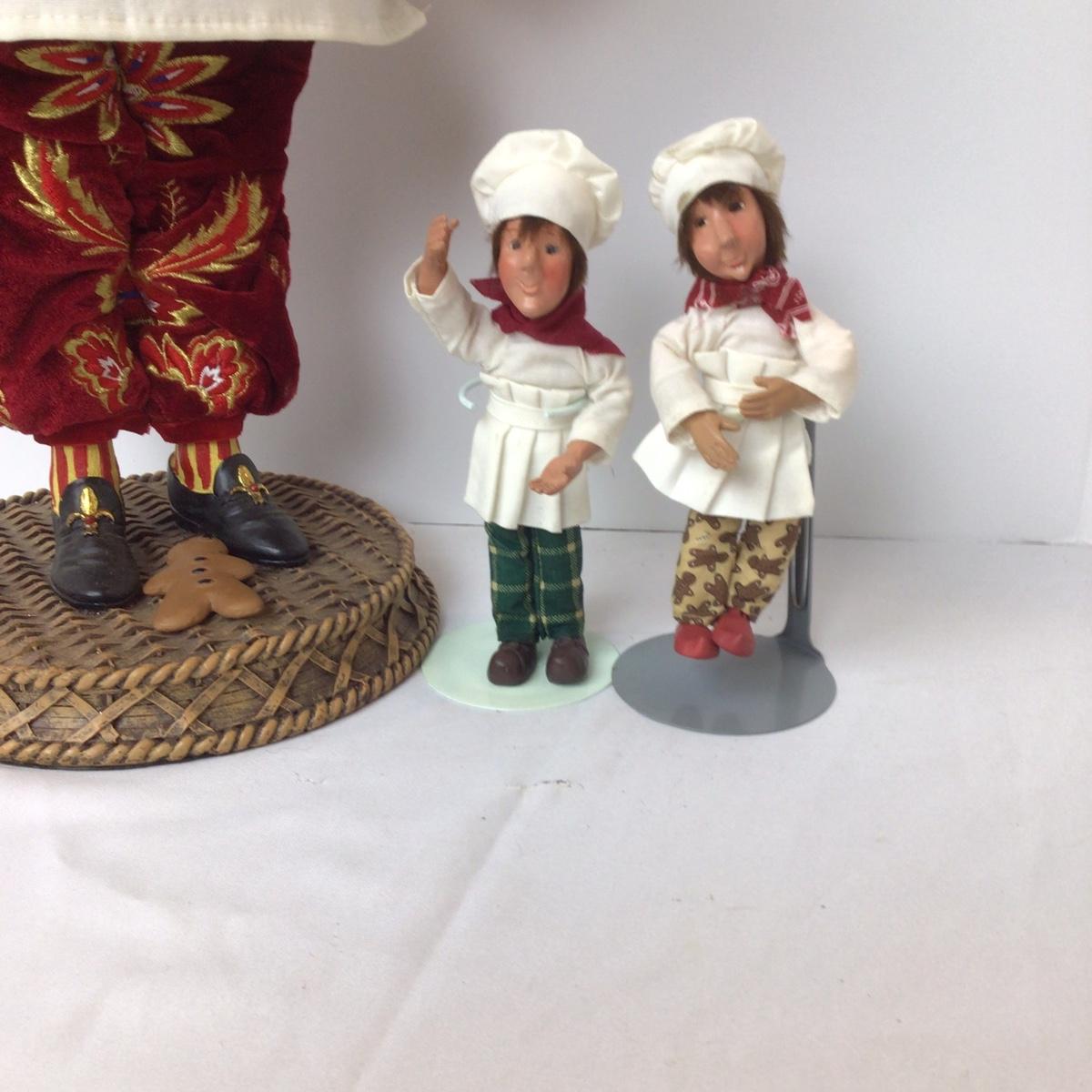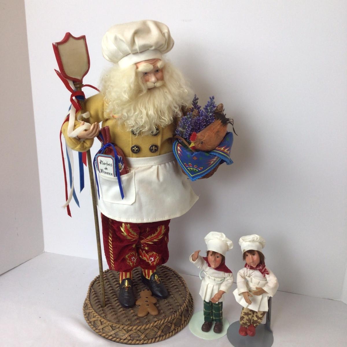 The large chef santa is 20” tall and the Byers choice pastry chef’s are 7” tall.